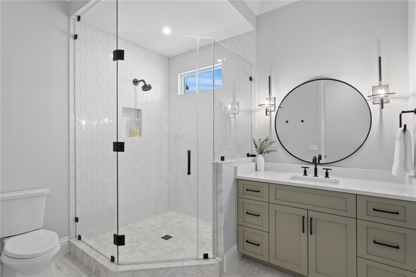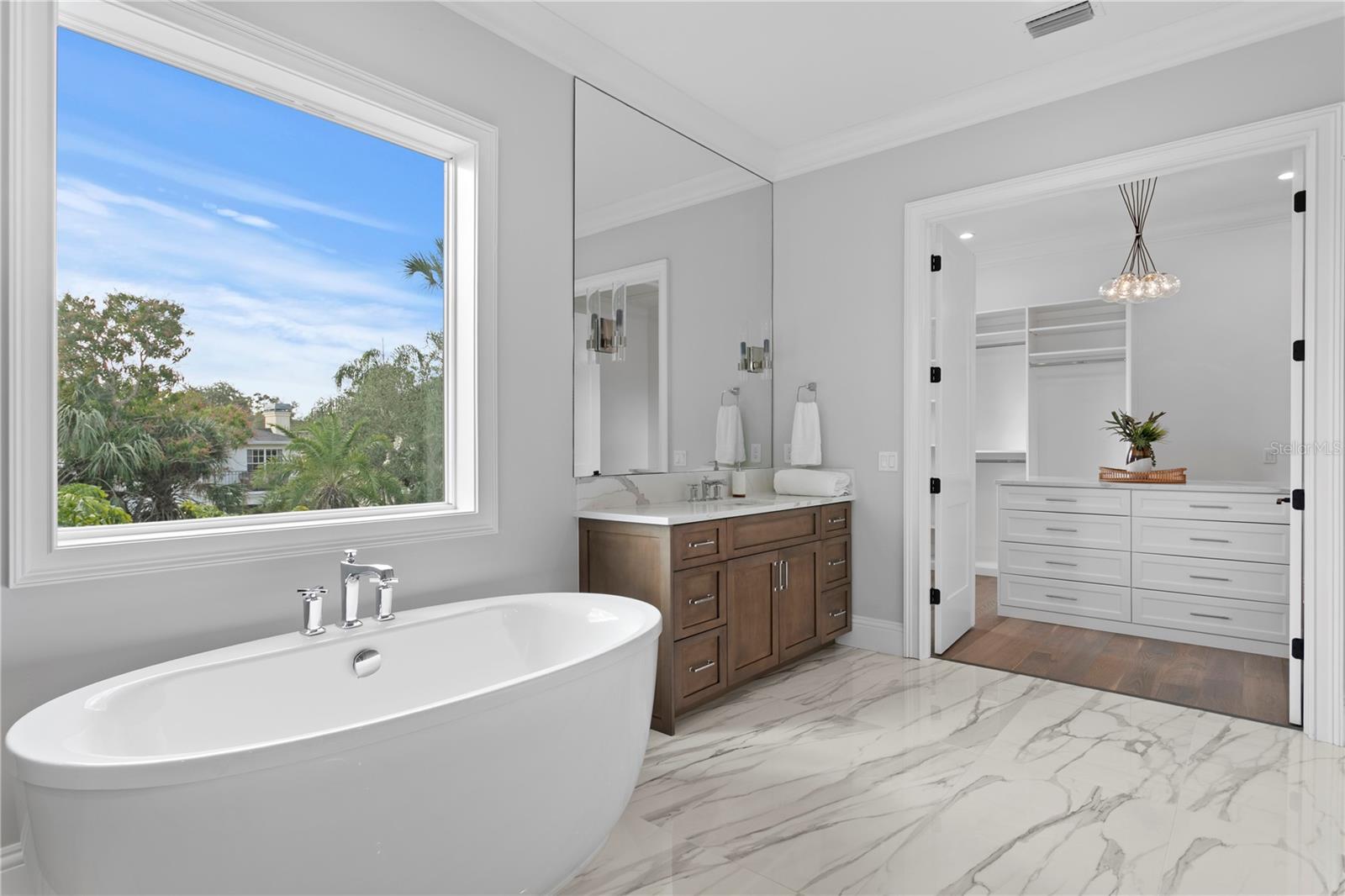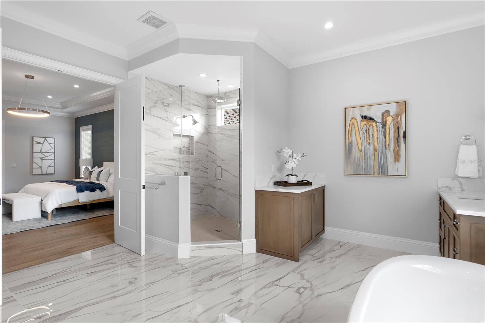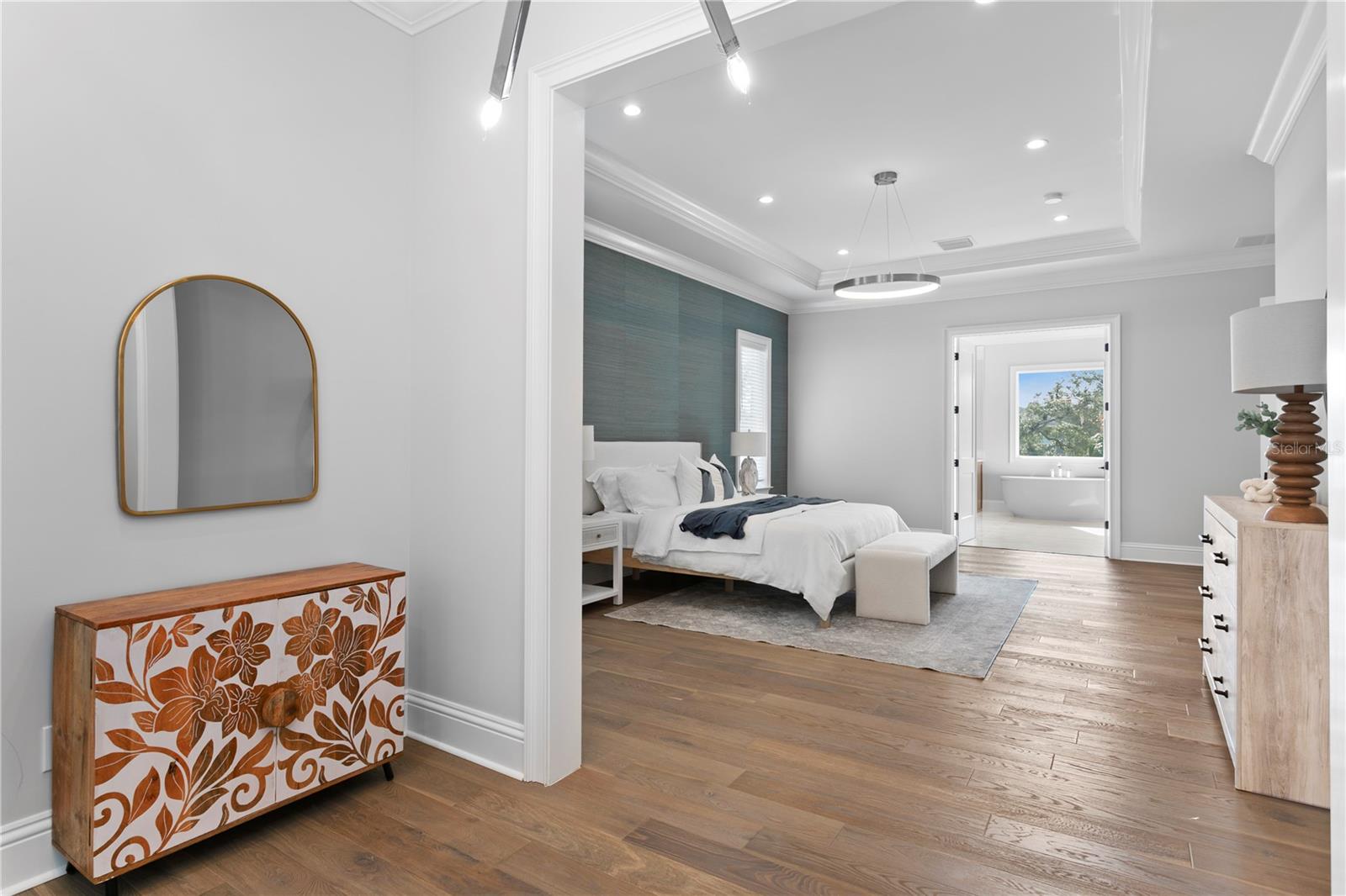 This custom-built Brookshire Homes residence showcases a thoughtfully designed floor plan that seamlessly balances elegance, comfort, and everyday functionality. Positioned on an expansive oversized lot measuring 90x143 (12,870 square feet) in the highly desirable Sunset Park neighborhood of South Tampa, the home offers 5 bedrooms, 6 full bathrooms, a dedicated office, a bonus room, a resort-style pool, and a four-car garage. A striking two-story foyer welcomes you inside, where soaring ceilings create an immediate sense of grandeur. The entry is flanked by a formal dining room and a private office or formal living space, perfectly placed for both entertaining and quiet productivity. Designed with livability in mind, the open-concept main living area and kitchen are filled with natural light from oversized windows and elegant French doors that frame serene views of the pool, lanai, and landscaped backyard. Throughout the home, custom finishes elevate the design, including hardwood floors, crown molding, coffered ceilings, and curated lighting. The chef’s kitchen is as functional as it is beautiful, featuring a six-burner gas range, oversized Thermador refrigerator, a large center island with generous storage, a hidden walk-in pantry with built-in shelving, an eat-in dining area, and a butler’s pantry with a full-size wine refrigerator. The adjacent living space is anchored by a gas fireplace, creating a warm and inviting hub for daily living and entertaining. The first-floor layout offers exceptional versatility, with a private guest suite featuring a marble-tiled en-suite bathroom, ideal for visitors or multigenerational living. A spacious bonus or flex room overlooks the pool and backyard and provides direct outdoor access, while a conveniently located pool bath, laundry room, mudroom, and additional storage enhance the home’s day-to-day functionality. Upstairs, the well-planned second level is anchored by the luxurious primary retreat, complete with a sitting area, spa-like en-suite bathroom, and an expansive walk-in closet with an island, designer built-ins, and direct access to the second-floor laundry room. Three additional upstairs bedrooms each include en-suite bathrooms with striking tile designs and custom storage, ensuring privacy and comfort for all. Designed for seamless indoor-outdoor living, the backyard retreat features a covered lanai, outdoor kitchen, and expansive pool deck—perfect for entertaining or relaxing in the Florida sunshine. Located on a quiet, upscale street within the sought-after Plant High School district, this exceptional home offers a prime South Tampa location with a floor plan that truly supports both refined living and everyday ease.