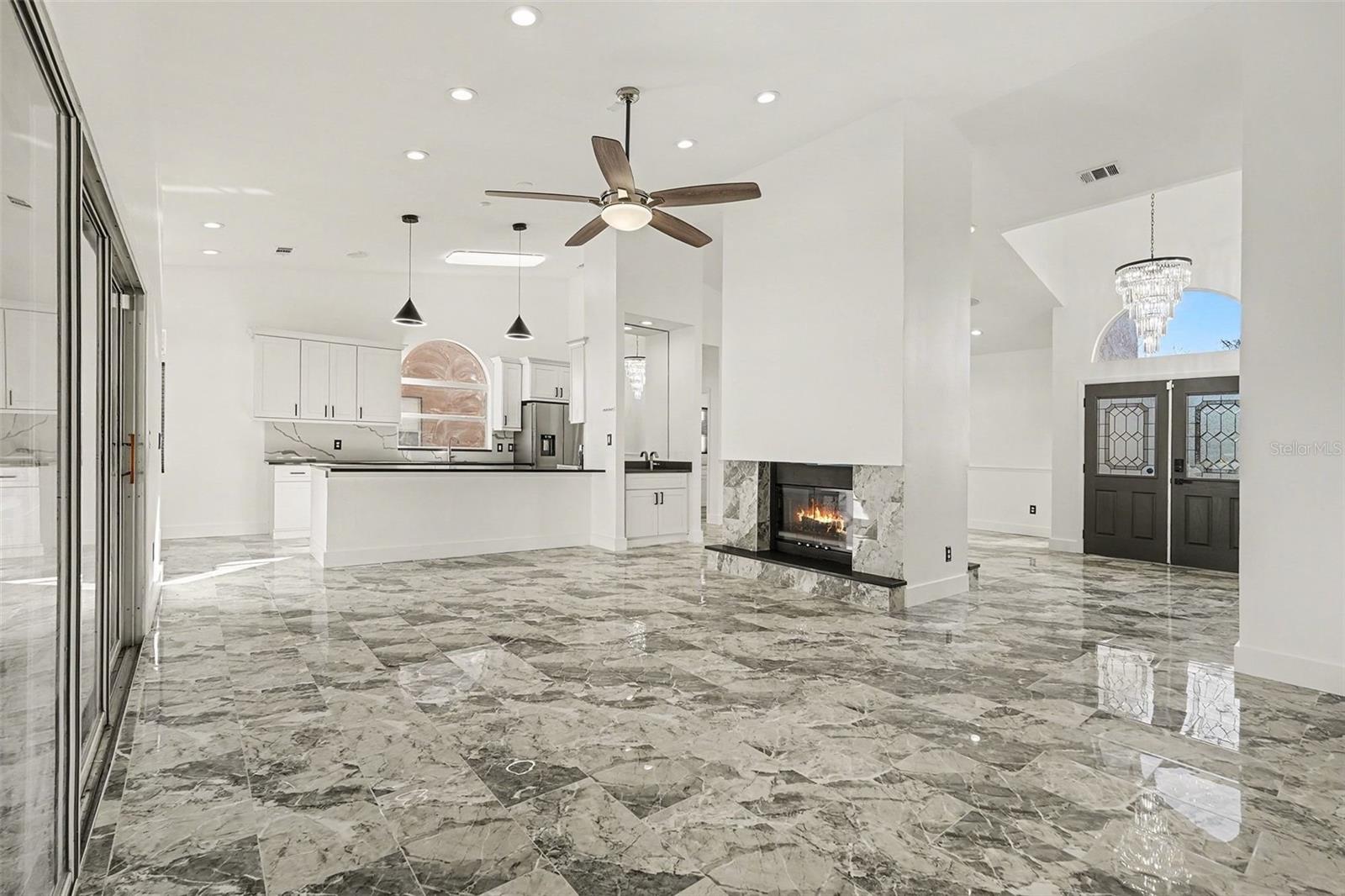 Experience the perfect balance of comfort and sophistication at 905 Clearcreek Dr, Tampa, FL 33613, a beautifully maintained 3-bedroom, 2-bath single-family residence located in the sought-after Springs community. This thoughtfully designed one-story home spans 1,860 square feet and features an open, airy layout ideal for both everyday living and entertaining. Step inside to discover high ceilings, abundant natural light, and a seamless open-concept design. The updated kitchen serves as the heart of the home, showcasing granite countertops, stainless steel appliances, and ample cabinetry, flowing effortlessly into the living and dining areas. A freestanding wood-burning fireplace adds warmth and architectural character while maintaining a modern, cohesive feel. The primary suite offers a private retreat with a walk-in closet, sliding glass doors leading to the backyard, and a spa-inspired ensuite bathroom complete with a soaking tub and separate walk-in shower. Two additional bedrooms provide flexibility for guests, family, or a home office. Outdoors, enjoy a screened-in back porch perfect for relaxing year-round, overlooking a fully fenced vinyl backyard that offers privacy, space for pets, and easy maintenance. Additional features include a two-car garage, dedicated laundry room with utility sink, irrigation system, and attractive curb appeal. Location is a key advantage. This home is minutes from Lake Magdalene, ZooTampa, and Busch Gardens, with quick access to I-275, Dale Mabry Highway, downtown Tampa, and Tampa International Airport. Shopping, dining, and entertainment options are all nearby, making daily life exceptionally convenient. With low HOA fees, no CDD, and Flood Zone X, this home delivers peace of mind, lifestyle convenience, and long-term value in a prime Tampa location. This is a well-rounded opportunity for buyers seeking quality, location, and comfort—without compromise.
