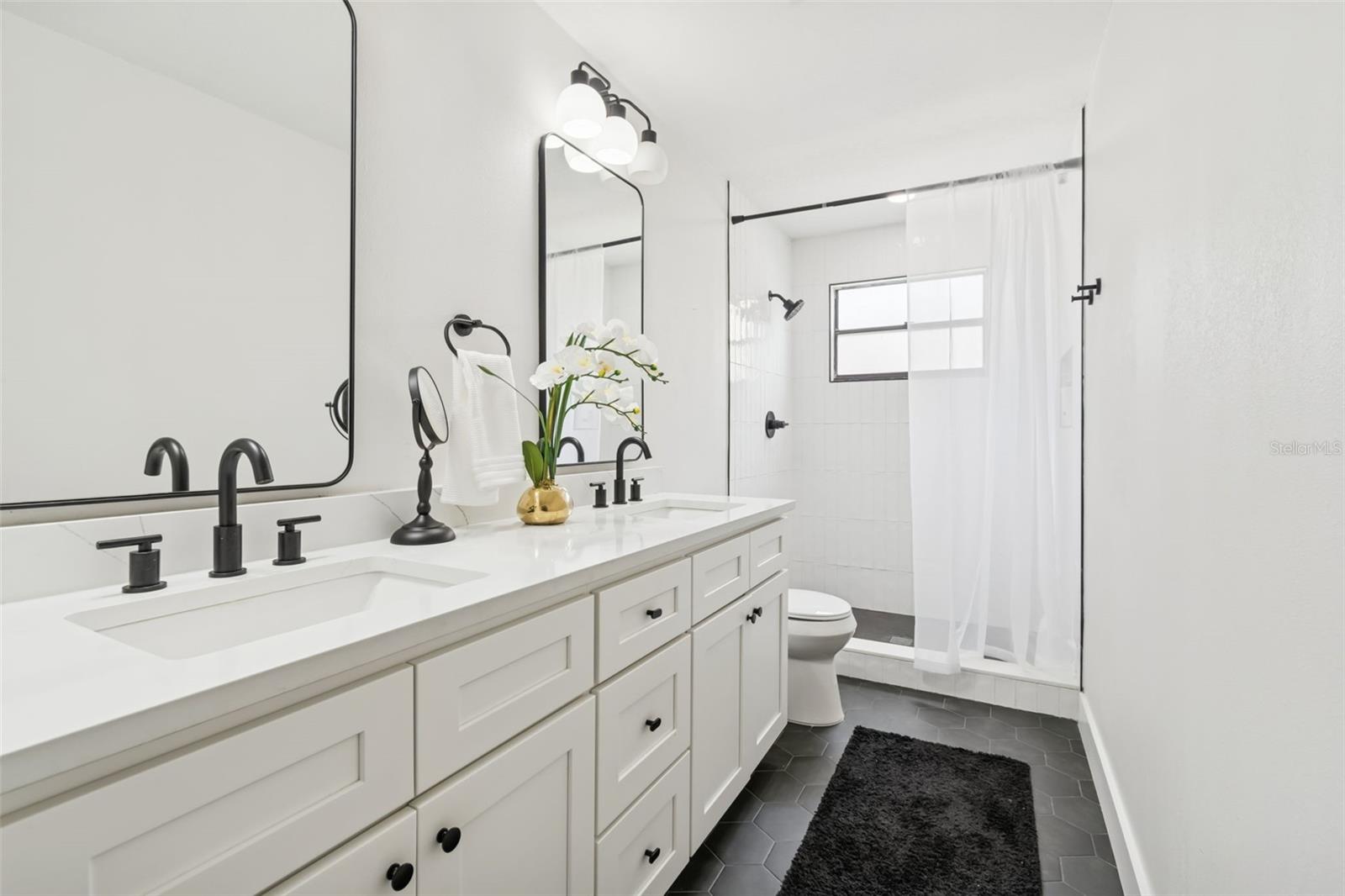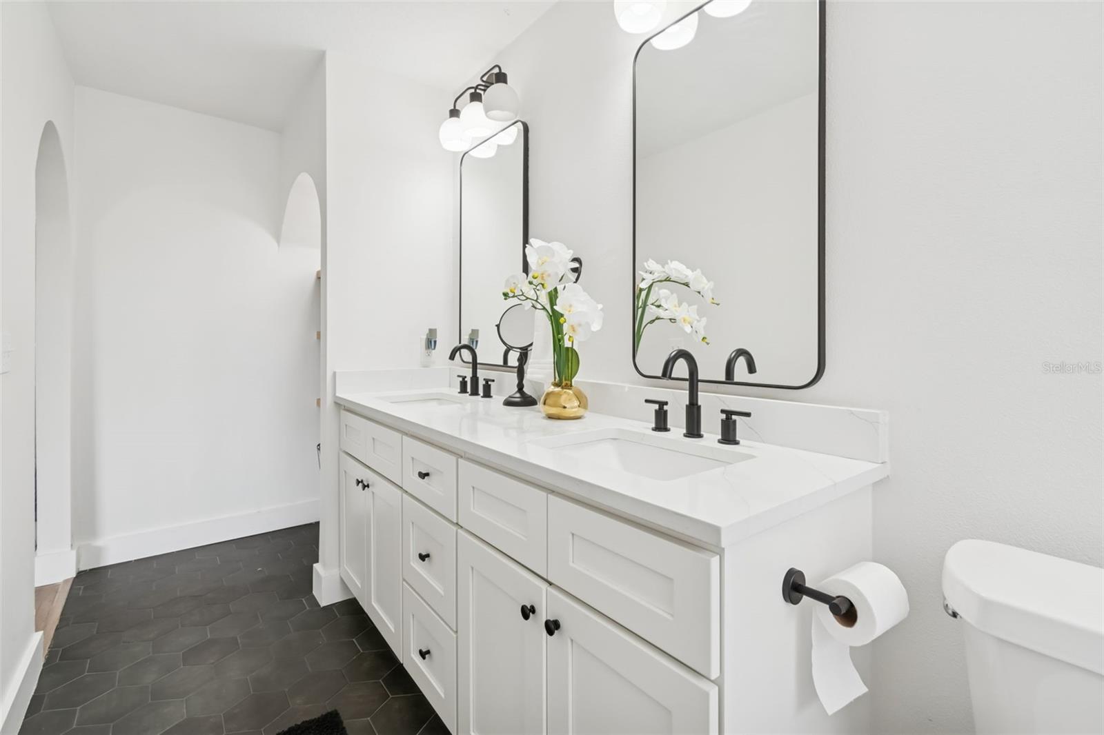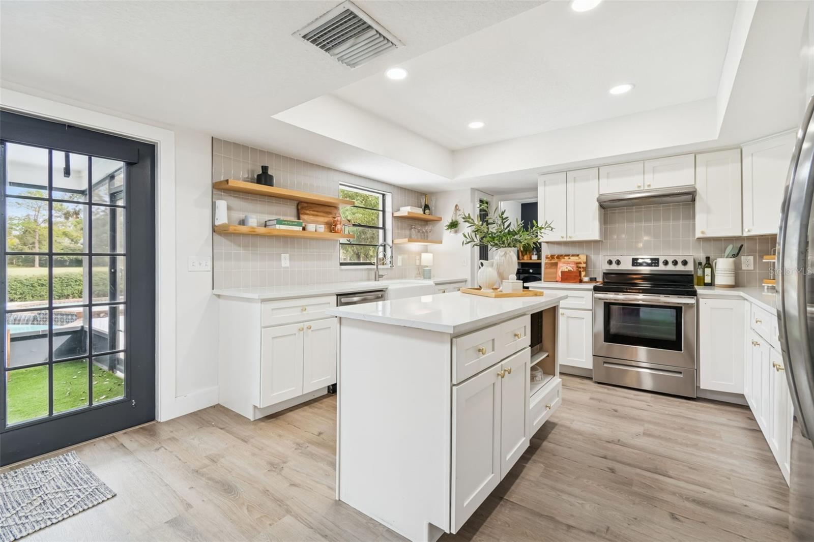 Welcome to this beautifully updated pool home overlooking the Northdale Golf Course. This 4-bedroom, 2.5-bath, two-story residence has been thoughtfully remodeled—featuring statement accent walls, a show-stopping kitchen, stunningly renovated bathrooms, and impeccable attention to detail throughout. The main level offers a spacious flex room with a charming window seat, ideal for a home office, playroom, or creative space, along with a generous dining room conveniently located off the kitchen. The family room is flooded with natural light and opens to the outdoors through two sets of French doors, showcasing tranquil views of the pool and golf course. The kitchen is a true highlight, complete with white shaker cabinetry, white oak floating shelves, quartz countertops, and stainless-steel appliances. A large laundry room and oversized two-car garage complete the first floor. Upstairs, all bedrooms provide comfort and privacy. The primary suite features a private balcony overlooking the pool and golf course, a spacious walk-in closet, and a beautifully designed en-suite bathroom with an arched open-shelving linen closet that adds both charm and functionality. Beyond the gorgeous upgrades, additional improvements include a newer roof (2018) and updated AC, water heater, and pool equipment (2022). Located in a top-rated school district, this home sits in the desirable Northdale community—less than 10 miles from downtown Tampa with easy access to Citrus Park Mall, the Veterans Expressway (589), and an abundance of shopping and dining. The home is set along the Northdale Golf Course, featuring water on 11 holes, cypress trees, and championship conditions, designed by legendary architect Ron Garl—enjoyable for golfers of all skill levels. There is no HOA, however there is an optional community association. Don't wait to schedule your showing today!