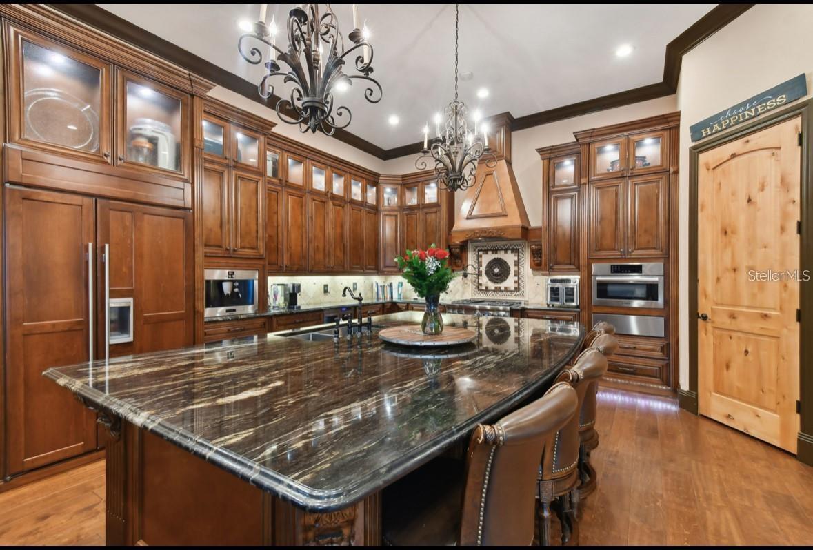 Exquisite waterfront estate in the Villages of Bayport featuring 5 bedrooms, 4 bathrooms, and 4,691 sq. ft. of living space. This home offers 12 ft. ceilings, whole-home surround sound, a circular driveway, and an oversized 2-car garage. The kitchen boasts high-end appliances, a gas range, and a large center island, perfect for cooking and entertaining. The kitchen opens directly to the spacious family room, which features a cozy wood-burning fireplace, the dining room and formal living room, all with massive pocketing sliding glass doors that lead seamlessly to the lanai—providing ideal indoor-outdoor living. Behind the family room is a versatile bonus room that can be converted into a full pool bathroom, office, gym, meditation room, or any other function to suit your family’s needs. The luxurious primary suite includes a large walk-in closet, steam shower, sauna, and direct access to the pool area. The additional four bedrooms, 2 which are on-suite are generously sized, each with its own walk-in closet. Step outside to a private tropical oasis with a heated in-ground pool and spa, outdoor kitchen, new travertine tile and BUZZ OFF system within the screened lanai. A private dock features a 20,000 lb. boat lift accommodating vessels up to 35', along with a waterfront gazebo perfect for relaxing or entertaining. Residents enjoy an active community yacht club with seasonal events. This home is ideally located just 15 minutes from Tampa International Airport and close to premier dining, shopping, beaches, and downtown Tampa.
