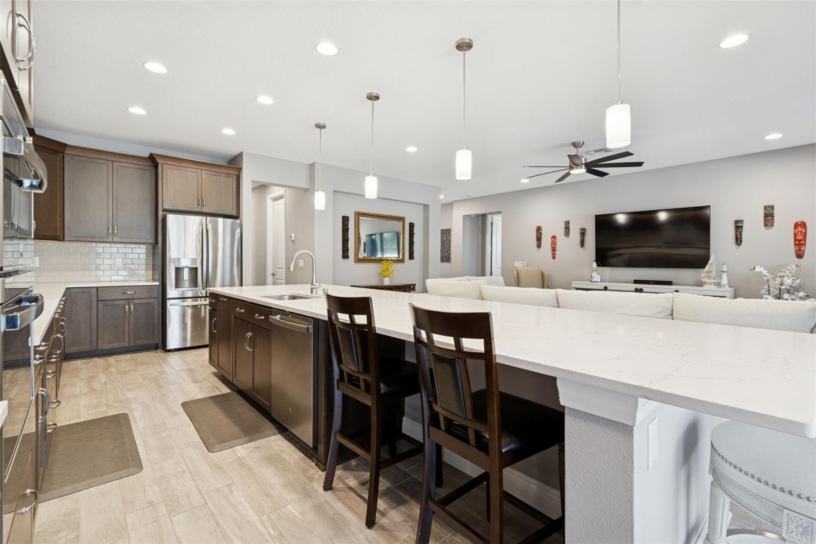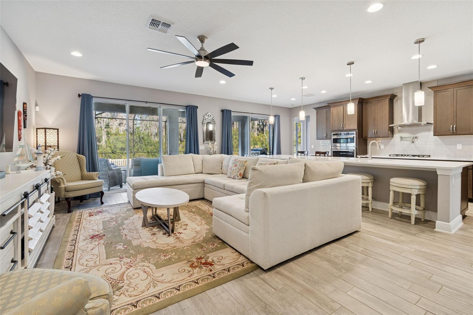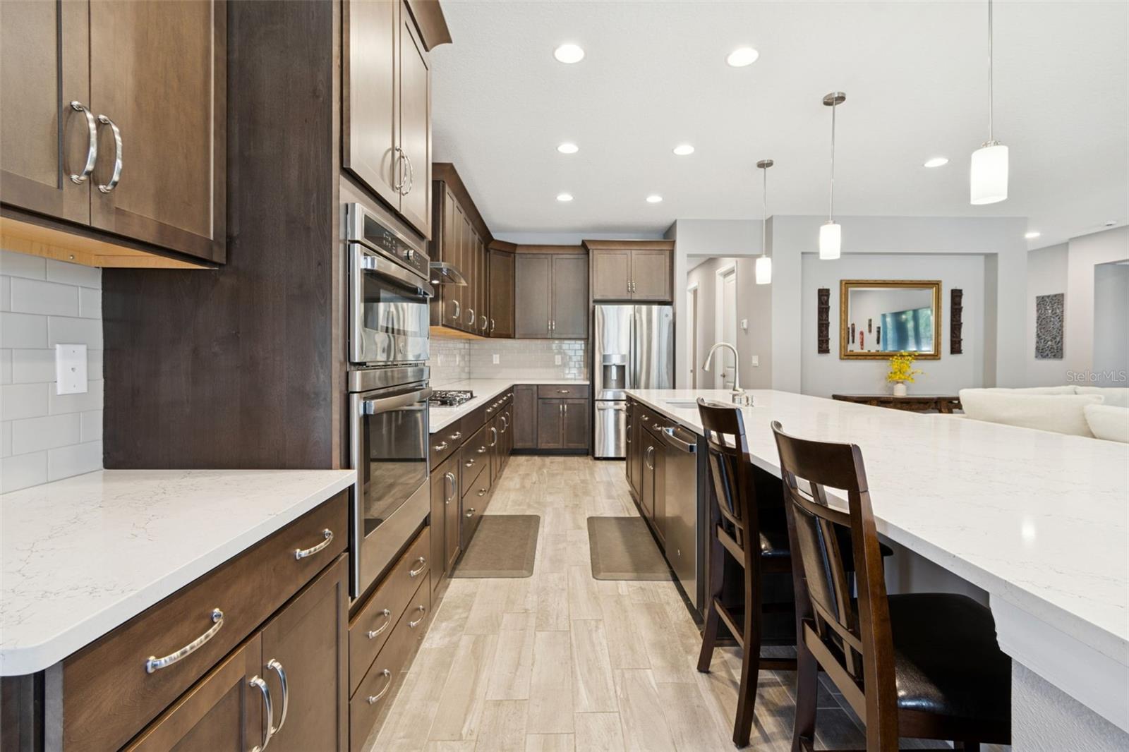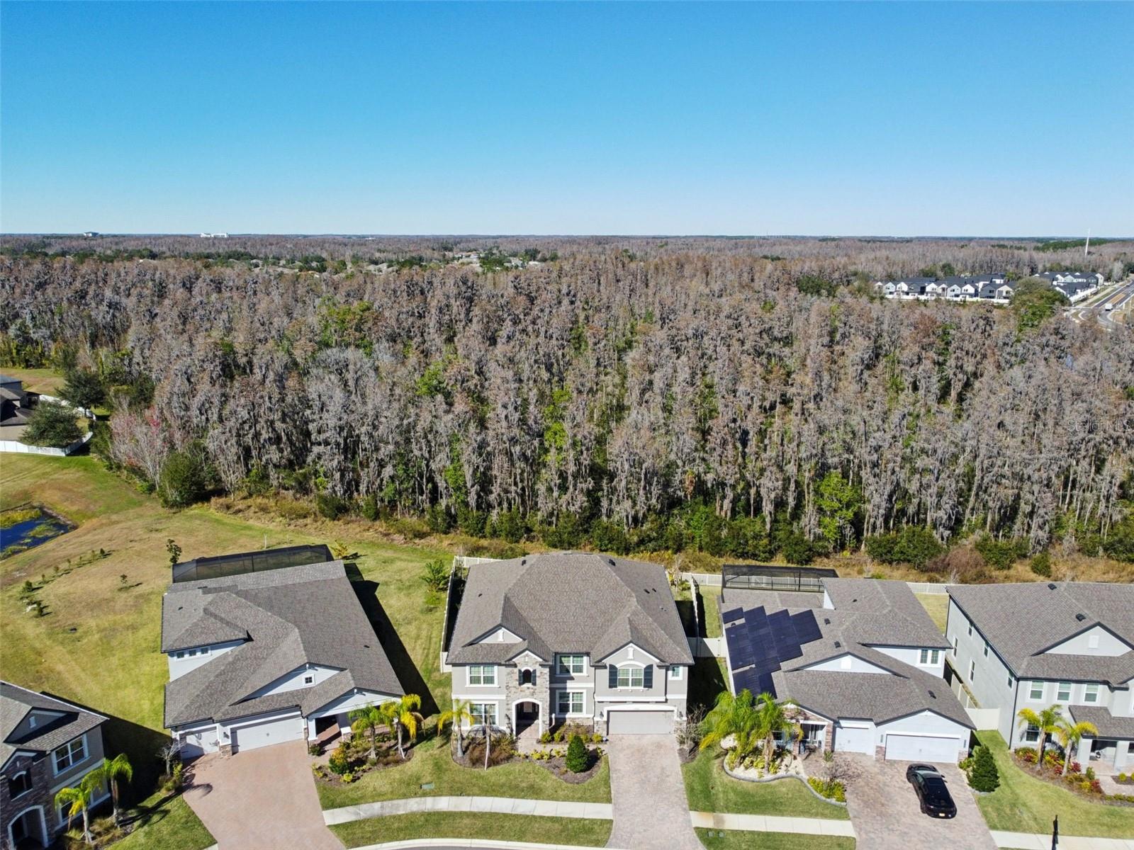 Welcome to this exceptional residence in the sought-after, GATED K-BAR RANCH community, offering space, comfort, and flexibility—ideal for growing families and multigenerational living. From the moment you enter, you’ll appreciate the thoughtful layout and generous proportions of this expansive 7-bedroom, 5½-bathroom home. A private office sits just off the entry, perfect for remote work or homework time, while a formal dining room provides an inviting space for family gatherings and celebrations. The heart of the home opens to a bright OPEN-CONCEPT living area anchored by a stunning CHEF’S KITCHEN featuring an OVERSIZED ISLAND, QUARTZ COUNTERTOPS, tile backsplash, GAS COOKTOP with POT FILLER, stainless steel hood, premium appliances, and an OVERSIZED WALK-IN PANTRY. Double glass sliding doors fill the living and kitchen areas with natural light and create a seamless connection to the outdoor living space—ideal for everyday living and entertaining. The PRIMARY SUITE ON THE FIRST FLOOR offers a peaceful retreat with walk-in closets and a SPA-INSPIRED BATH featuring a walk-in shower and soaking tub. A FIRST-FLOOR GUEST SUITE WITH EN-SUITE BATH provides flexibility for visitors or extended family. The first floor is complete with a convenient MUD AND LAUNDRY ROOM featuring solid wood cabinetry, QUARTZ COUNTERTOPS, and a WASHER THAT CONVEYS, ideally located just off the TANDEM GARAGE. Upstairs, a grand staircase leads to a MASSIVE GAME ROOM with WET BAR, quartz countertops, and beverage refrigerator—perfect for movie nights, play space, or entertainment. Step out onto the LARGE SCREENED BALCONY to enjoy SERENE CONSERVATION VIEWS overlooking the FULLY FENCED BACKYARD. Four additional spacious bedrooms are located upstairs, each with walk-in closets and JACK-AND-JILL BATHS, while a fifth upstairs bedroom is WIRED & READY to serve as a MEDIA / THEATER ROOM. A SECOND LAUNDRY ROOM with soaker sink adds everyday convenience. Outdoors, enjoy Florida living with a PRIVATE POOL & SPA within a SCREENED LANAI, PRE-PLUMBED FOR AN OUTDOOR KITCHEN, creating a comfortable and safe space for kids to play and adults to relax year-round. K-Bar Ranch is a welcoming, family-friendly neighborhood in the heart of New Tampa/Wesley Chapel, thoughtfully designed for an active lifestyle and a strong sense of community. Residents enjoy proximity to TOP-RATED SCHOOLS, shopping & dining destinations, Wiregrass Mall, USF, Moffitt Cancer Center, and convenient access to I-75 and I-275, making everyday life both easy and connected. A must see!