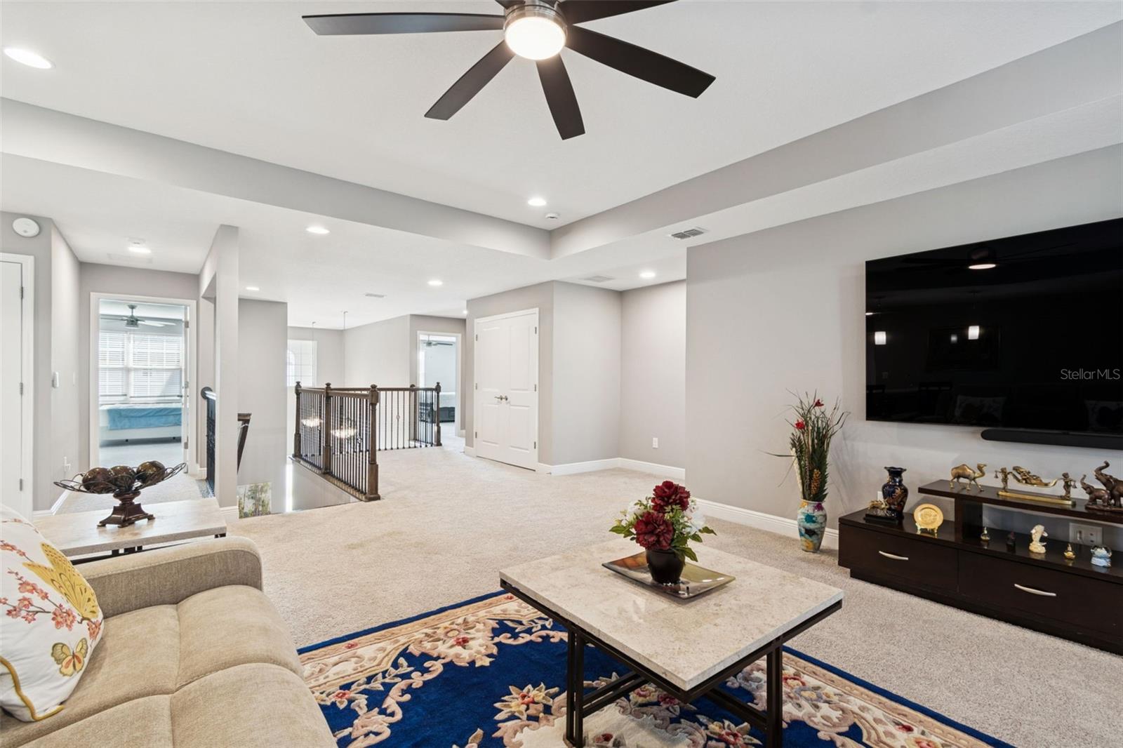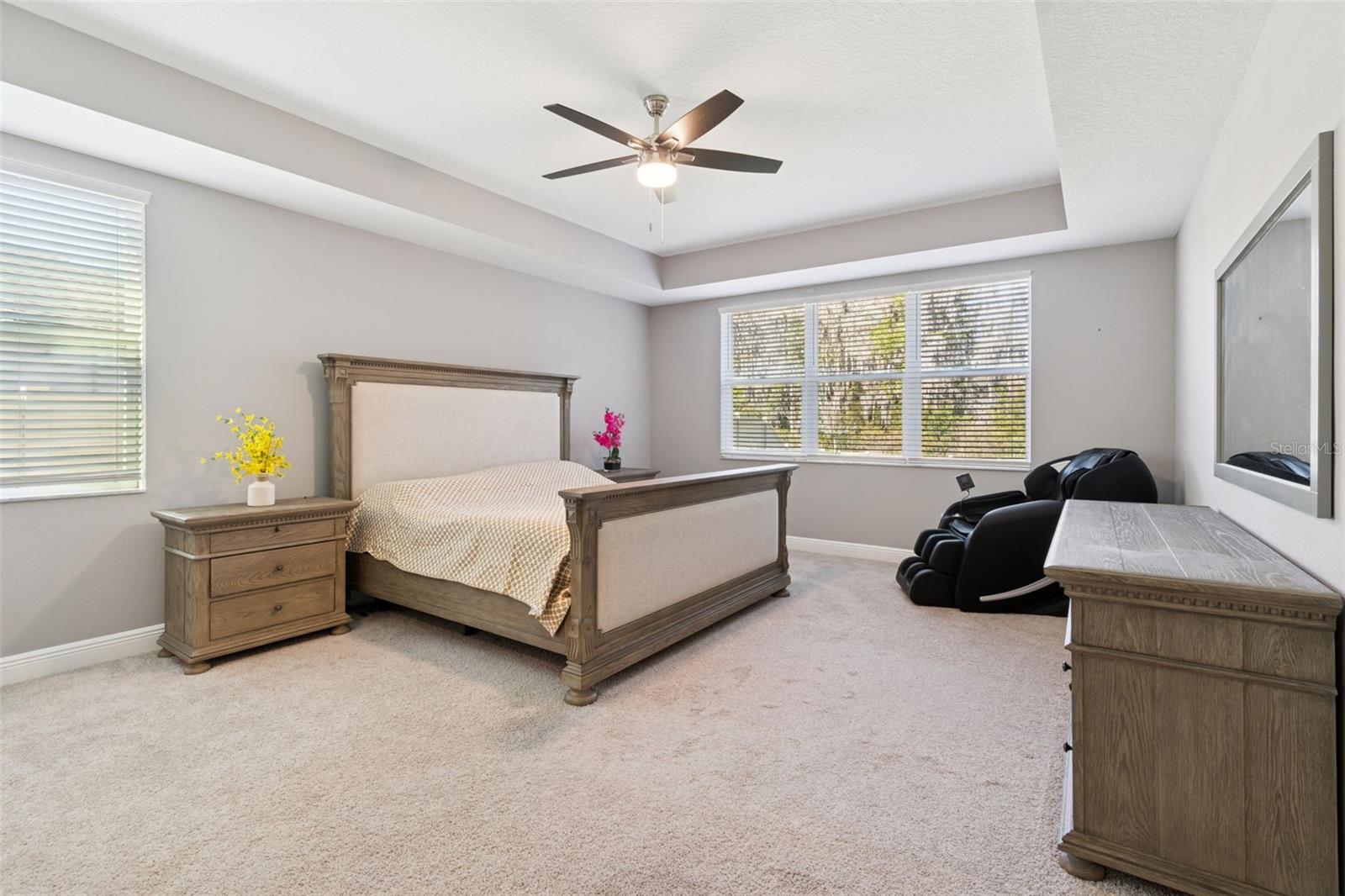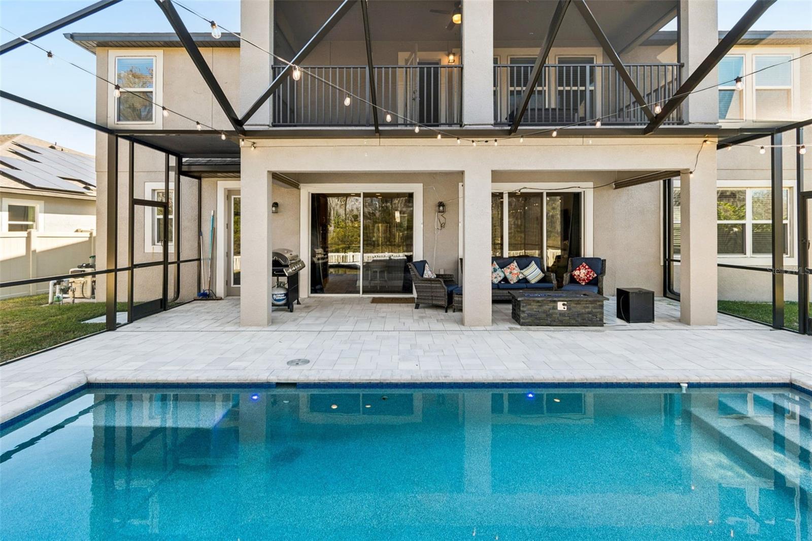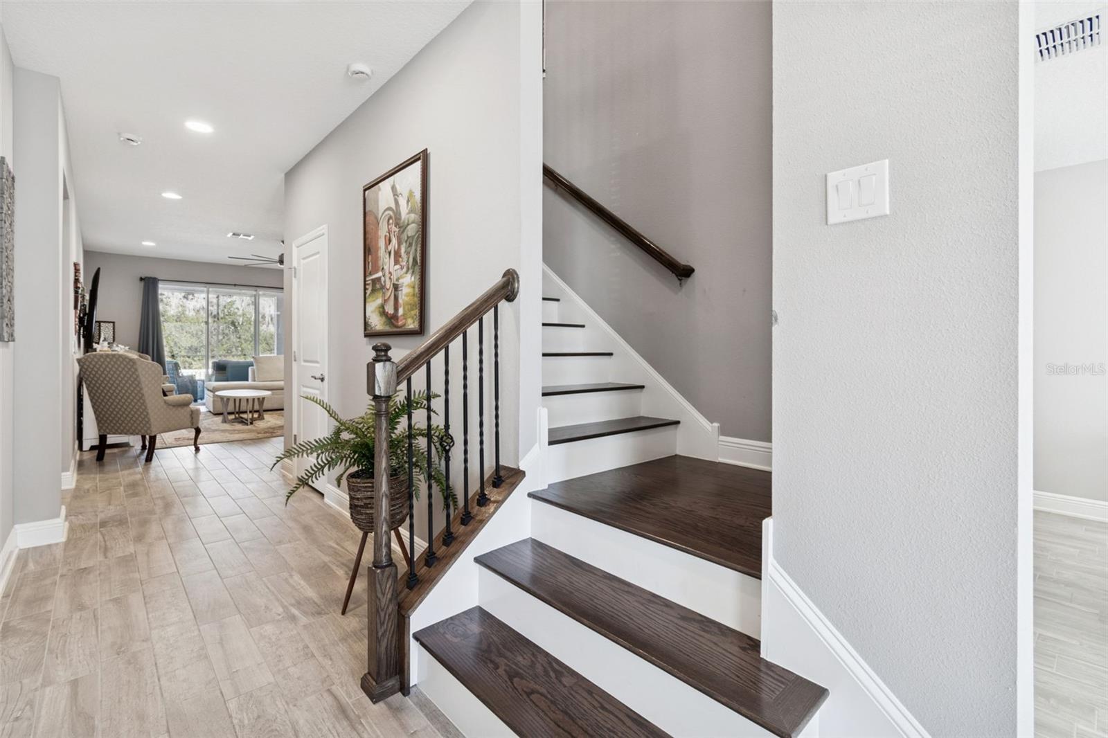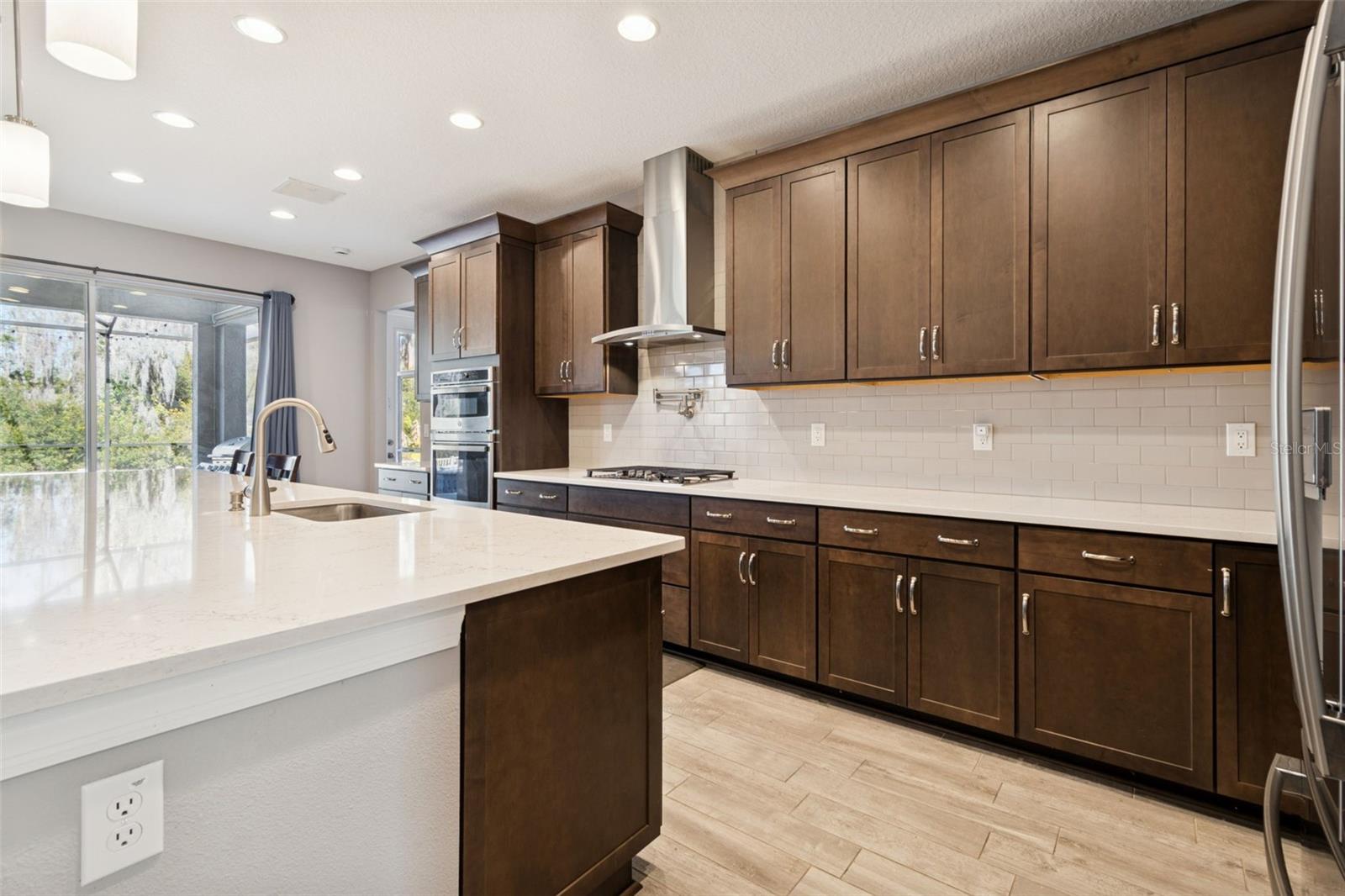 Welcome to this exceptional residence in the sought-after, GATED K-BAR RANCH community, offering space, comfort, and flexibility—ideal for growing families and multigenerational living. From the moment you enter, you’ll appreciate the thoughtful layout and generous proportions of this expansive 7-bedroom, 5½-bathroom home. A private office sits just off the entry, perfect for remote work or homework time, while a formal dining room provides an inviting space for family gatherings and celebrations. The heart of the home opens to a bright OPEN-CONCEPT living area anchored by a stunning CHEF’S KITCHEN featuring an OVERSIZED ISLAND, QUARTZ COUNTERTOPS, tile backsplash, GAS COOKTOP with POT FILLER, stainless steel hood, premium appliances, and an OVERSIZED WALK-IN PANTRY. Double glass sliding doors fill the living and kitchen areas with natural light and create a seamless connection to the outdoor living space—ideal for everyday living and entertaining. The PRIMARY SUITE ON THE FIRST FLOOR offers a peaceful retreat with walk-in closets and a SPA-INSPIRED BATH featuring a walk-in shower and soaking tub. A FIRST-FLOOR GUEST SUITE WITH EN-SUITE BATH provides flexibility for visitors or extended family. The first floor is complete with a convenient MUD AND LAUNDRY ROOM featuring solid wood cabinetry, QUARTZ COUNTERTOPS, and a WASHER THAT CONVEYS, ideally located just off the TANDEM GARAGE. Upstairs, a grand staircase leads to a MASSIVE GAME ROOM with WET BAR, quartz countertops, and beverage refrigerator—perfect for movie nights, play space, or entertainment. Step out onto the LARGE SCREENED BALCONY to enjoy SERENE CONSERVATION VIEWS overlooking the FULLY FENCED BACKYARD. Four additional spacious bedrooms are located upstairs, each with walk-in closets and JACK-AND-JILL BATHS, while a fifth upstairs bedroom is WIRED & READY to serve as a MEDIA / THEATER ROOM. A SECOND LAUNDRY ROOM with soaker sink adds everyday convenience. Outdoors, enjoy Florida living with a PRIVATE POOL & SPA within a SCREENED LANAI, PRE-PLUMBED FOR AN OUTDOOR KITCHEN, creating a comfortable and safe space for kids to play and adults to relax year-round. K-Bar Ranch is a welcoming, family-friendly neighborhood in the heart of New Tampa/Wesley Chapel, thoughtfully designed for an active lifestyle and a strong sense of community. Residents enjoy proximity to TOP-RATED SCHOOLS, shopping & dining destinations, Wiregrass Mall, USF, Moffitt Cancer Center, and convenient access to I-75 and I-275, making everyday life both easy and connected. A must see!