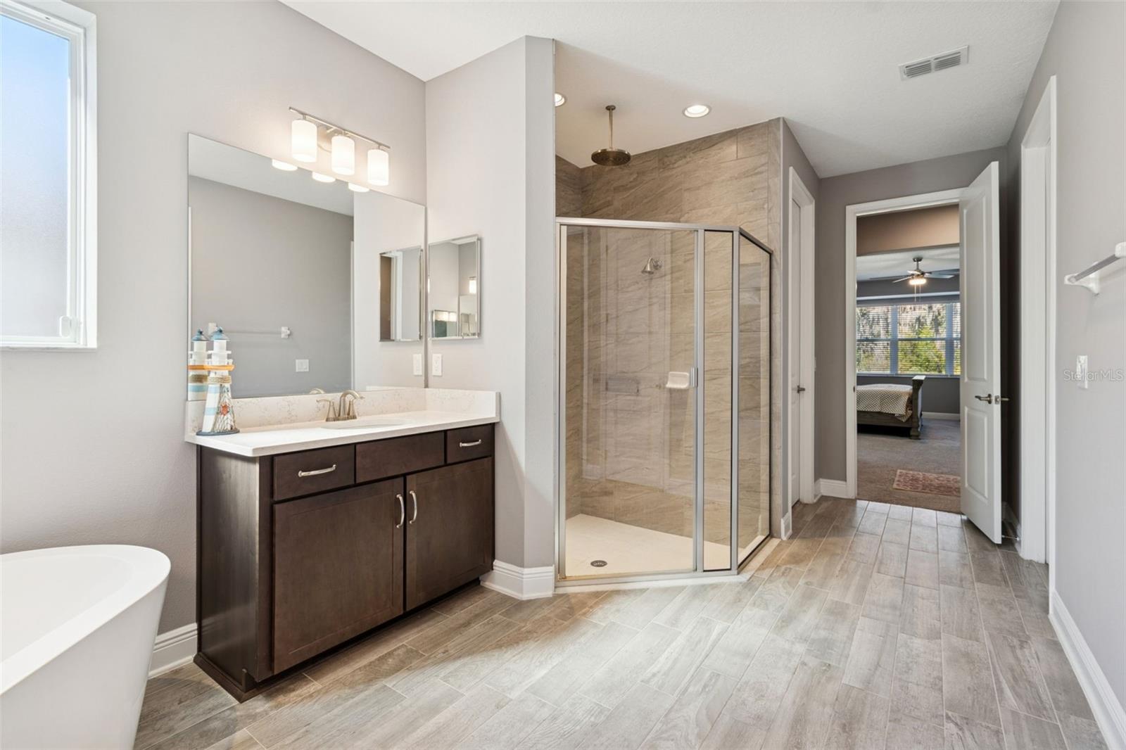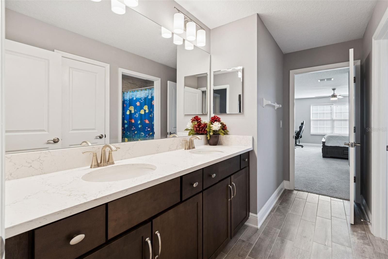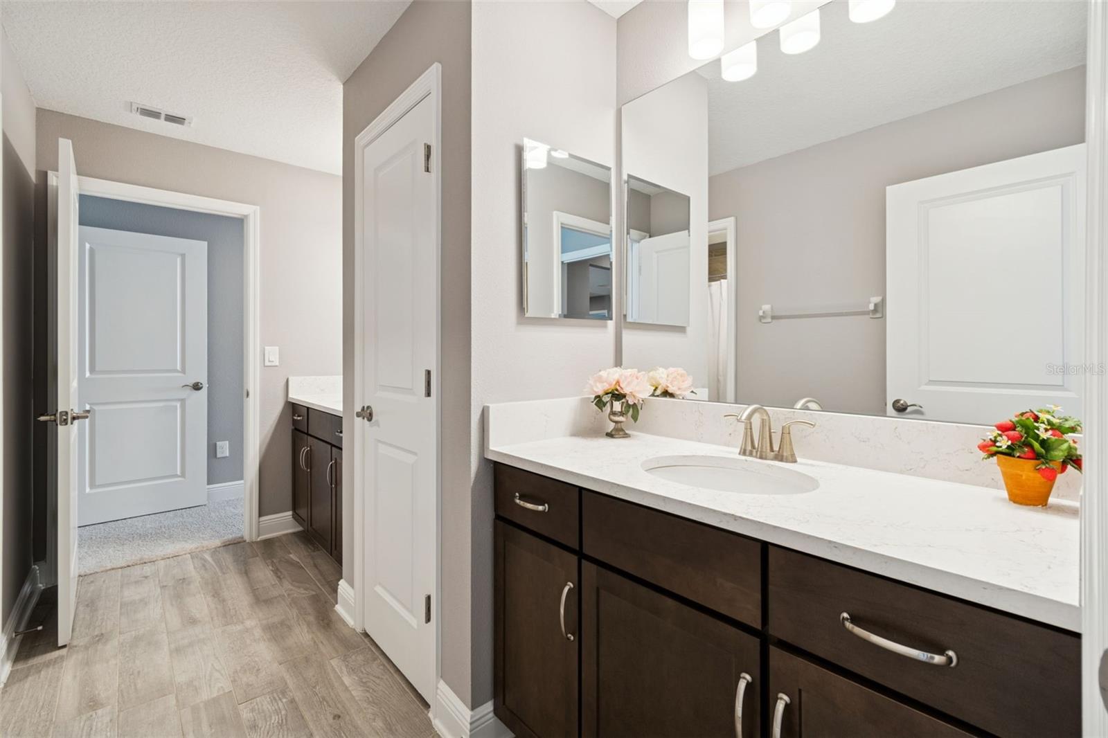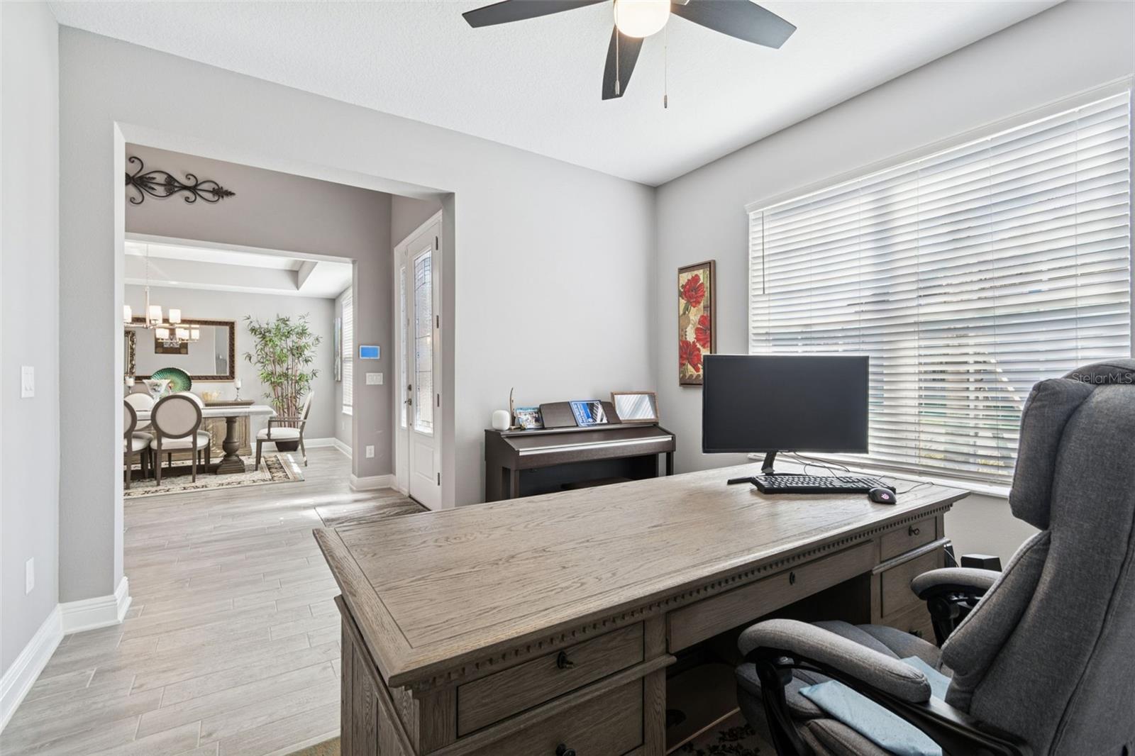 Welcome to this exceptional residence in the sought-after, GATED K-BAR RANCH community, offering space, comfort, and flexibility—ideal for growing families and multigenerational living. From the moment you enter, you’ll appreciate the thoughtful layout and generous proportions of this expansive 7-bedroom, 5½-bathroom home. A private office sits just off the entry, perfect for remote work or homework time, while a formal dining room provides an inviting space for family gatherings and celebrations. The heart of the home opens to a bright OPEN-CONCEPT living area anchored by a stunning CHEF’S KITCHEN featuring an OVERSIZED ISLAND, QUARTZ COUNTERTOPS, tile backsplash, GAS COOKTOP with POT FILLER, stainless steel hood, premium appliances, and an OVERSIZED WALK-IN PANTRY. Double glass sliding doors fill the living and kitchen areas with natural light and create a seamless connection to the outdoor living space—ideal for everyday living and entertaining. The PRIMARY SUITE ON THE FIRST FLOOR offers a peaceful retreat with walk-in closets and a SPA-INSPIRED BATH featuring a walk-in shower and soaking tub. A FIRST-FLOOR GUEST SUITE WITH EN-SUITE BATH provides flexibility for visitors or extended family. The first floor is complete with a convenient MUD AND LAUNDRY ROOM featuring solid wood cabinetry, QUARTZ COUNTERTOPS, and a WASHER THAT CONVEYS, ideally located just off the TANDEM GARAGE. Upstairs, a grand staircase leads to a MASSIVE GAME ROOM with WET BAR, quartz countertops, and beverage refrigerator—perfect for movie nights, play space, or entertainment. Step out onto the LARGE SCREENED BALCONY to enjoy SERENE CONSERVATION VIEWS overlooking the FULLY FENCED BACKYARD. Four additional spacious bedrooms are located upstairs, each with walk-in closets and JACK-AND-JILL BATHS, while a fifth upstairs bedroom is WIRED & READY to serve as a MEDIA / THEATER ROOM. A SECOND LAUNDRY ROOM with soaker sink adds everyday convenience. Outdoors, enjoy Florida living with a PRIVATE POOL & SPA within a SCREENED LANAI, PRE-PLUMBED FOR AN OUTDOOR KITCHEN, creating a comfortable and safe space for kids to play and adults to relax year-round. K-Bar Ranch is a welcoming, family-friendly neighborhood in the heart of New Tampa/Wesley Chapel, thoughtfully designed for an active lifestyle and a strong sense of community. Residents enjoy proximity to TOP-RATED SCHOOLS, shopping & dining destinations, Wiregrass Mall, USF, Moffitt Cancer Center, and convenient access to I-75 and I-275, making everyday life both easy and connected. A must see!
