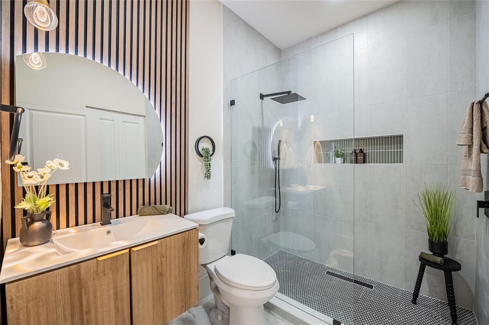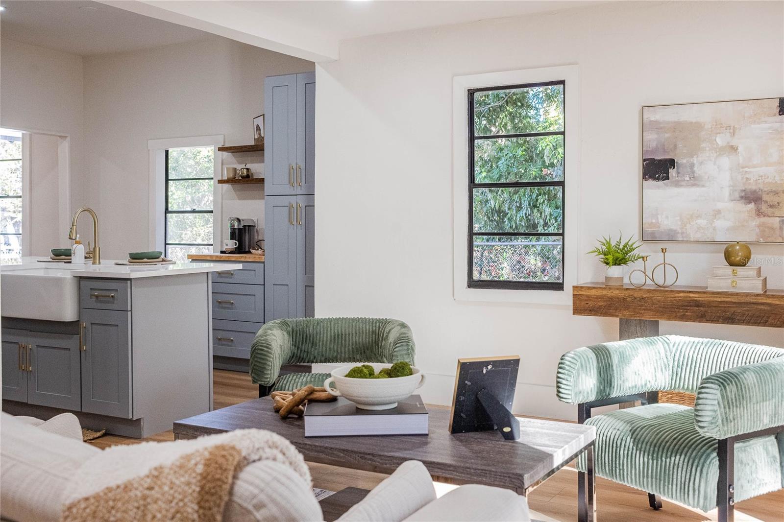Fall in love with this FULLY RENOVATED 3 bedroom, 2 bath BUNGALOW located in the desirable Southeast Seminole Heights neighborhood. This home is STUNNING with NEW ROOF and all FURNISHINGS ARE NEGOTIABLE! As you approach the home, you'll be captivated by its lush landscaping and charming porch with the FRONT PORCH SWING you have always wanted! Inside, you'll find a thoughtfully designed interior with neutral paint, high ceilings, beautiful luxury vinyl floors, tall baseboards, and numerous updates that enhance its appeal. The home opens with an inviting oversized living and dining area combo. Hosting parties in this space will be a joy! But let's talk about this kitchen! It's a dream for any aspiring chef! Featuring popular natural and grey shaker cabinetry with all the organizational bells and whistles, built-in pantry, coffee bar nook, OVERSIZED FARMHOUSE SINK, a STAINLESS STEEL APPLIANCE PACKAGE and brushed modern brass pot filler! Adjacent to the kitchen, the family room provides a cozy setting for movie nights or a perfect reading space. The primary suite is a spacious retreat. It showcases a large WALK-IN CLOSET, large windows, and a LUXURIOUS RENOVATED en suite bath complete with a Smart mirror with ADJUSTABLE LED LIGHTING and a custom tiled shower. Across the hall, you'll find a generous secondary bedroom with a spacious closet and large windows that flood the room with natural light. Continuing with the renovations you will find a second full bath and a third bedroom that would be perfect for a home office. Step outside into your own private oasis through NEW SLIDING DOORS off your family room and experience the essence of Florida living. The backyard is adorned with beautiful large oak trees a built in GAZEBO that is ideal for outdoor hosting family and friends. There's plenty of room to store beach or water toys making this home perfect for outdoor enthusiasts. Conveniently located near Florida's most popular beaches, Armature Works, downtown Tampa, attractions, parks, and historical landmarks, this fully updated bungalow seamlessly blends modern updates with original features, offering the best of both worlds. Don't miss out on the opportunity to live the dream!