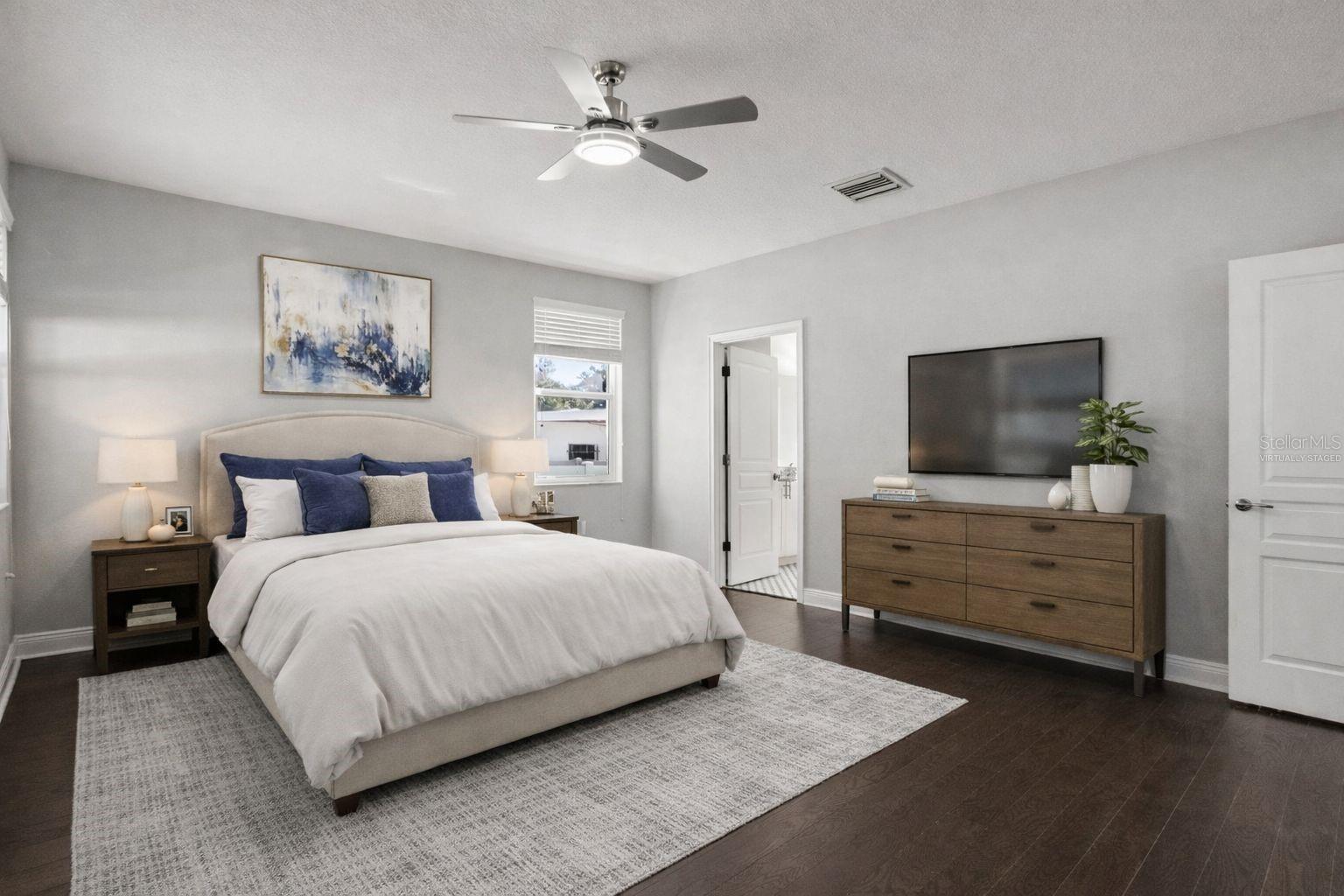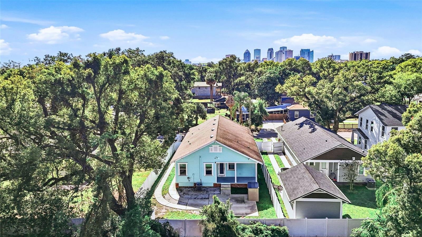 One or more photo(s) has been virtually staged. Welcome to one of Tampa Heights’ best finds and the perfect blend of location, light, and modern design in this 2018 built home. Start your mornings on your front porch or host friends on your covered back patio overlooking the large backyard. Inside, you’ll find wood flooring, 42” kitchen cabinets, and granite countertops, all within a bright, open layout filled with natural light and soaring ceilings. Your kitchen is designed for both everyday living and entertaining, featuring a walk-in pantry, abundant cabinetry, and a large island that flows seamlessly into the dining and living areas. Your primary suite is privately tucked away and offers a spacious walk-in closet, a soaking tub, and an upgraded frameless glass shower. The additional two bedrooms and a full bath give you flexible space for guests or a home office. This is the kind of home that just feels right the moment you walk in.