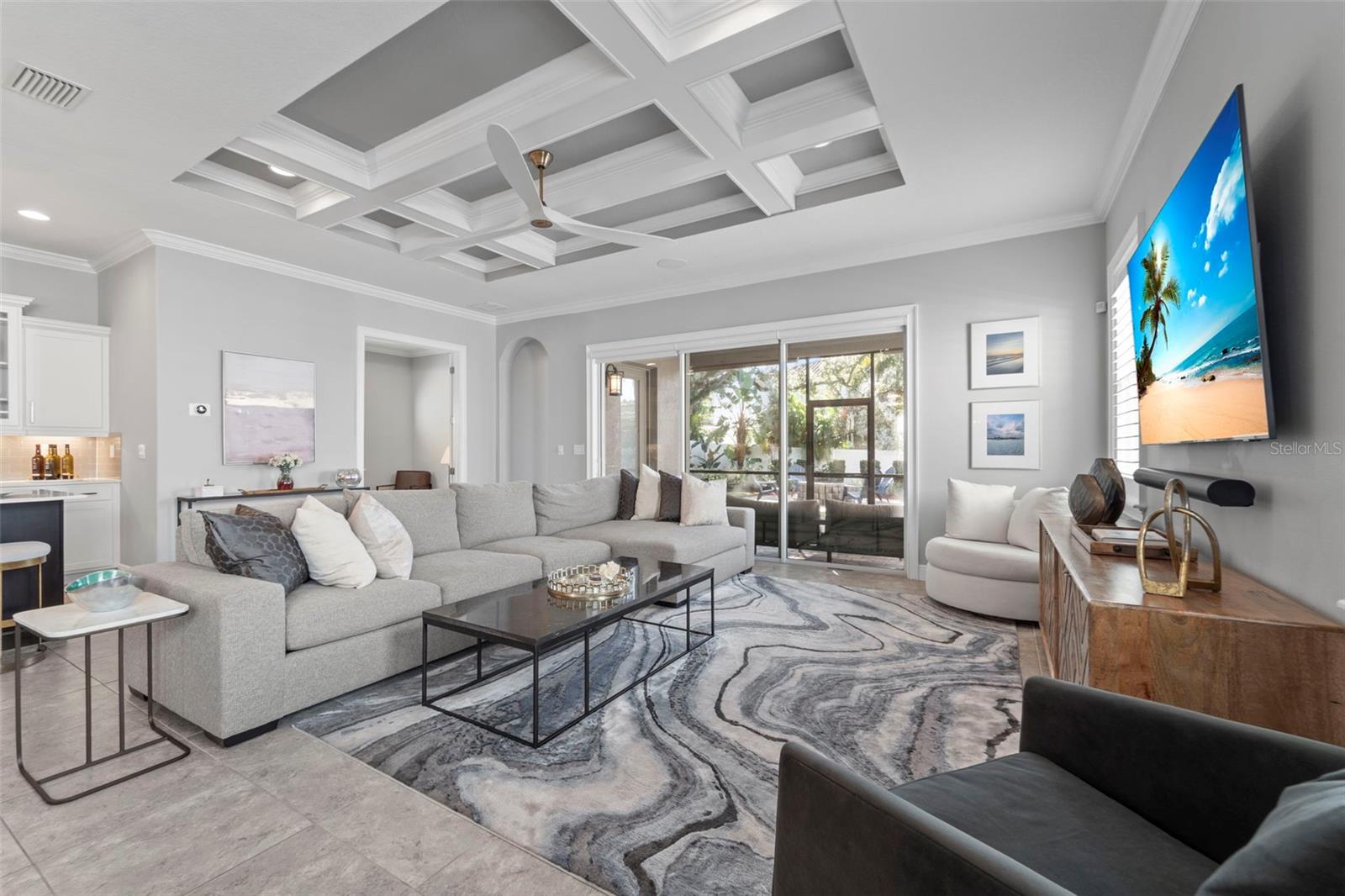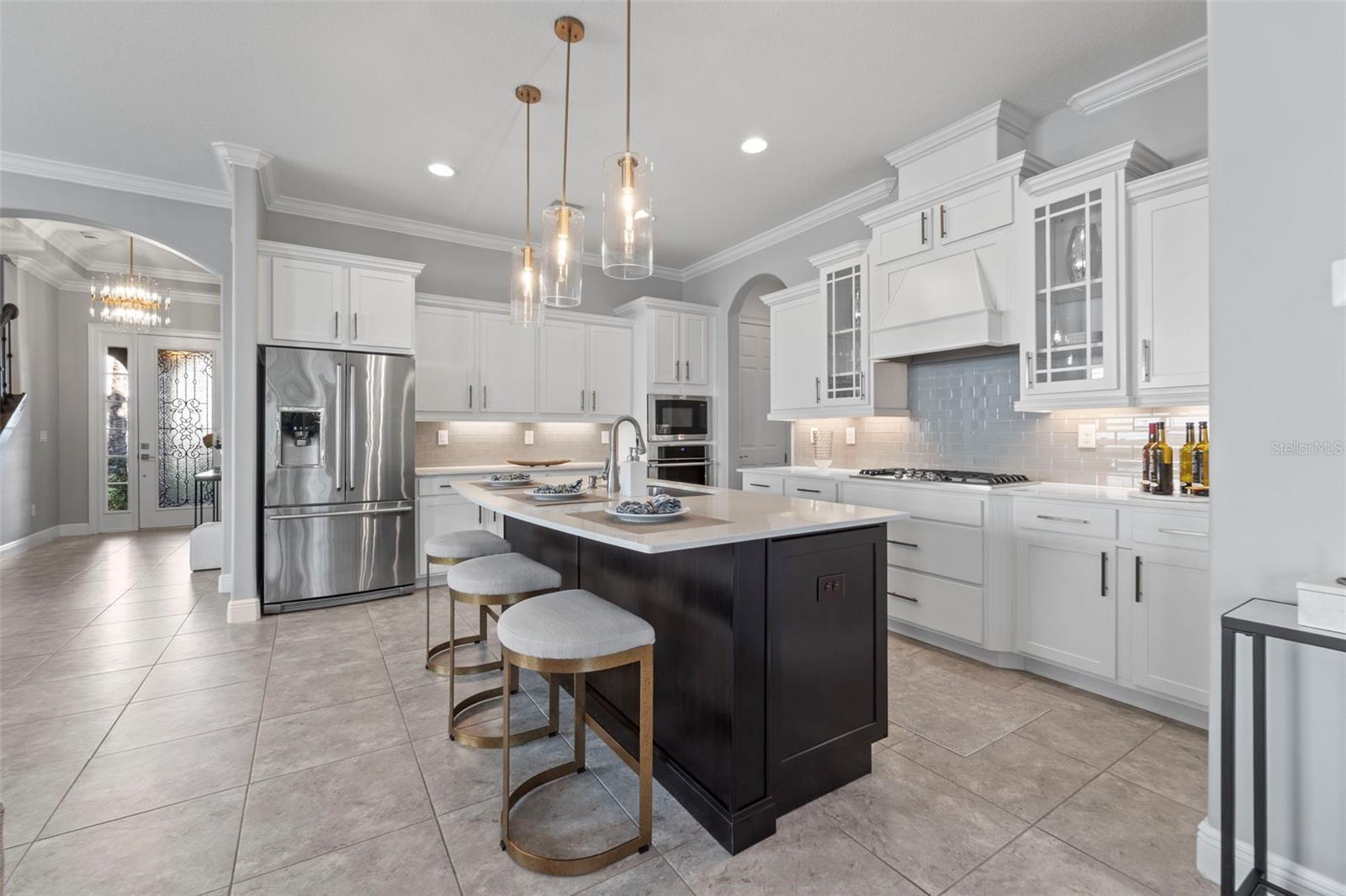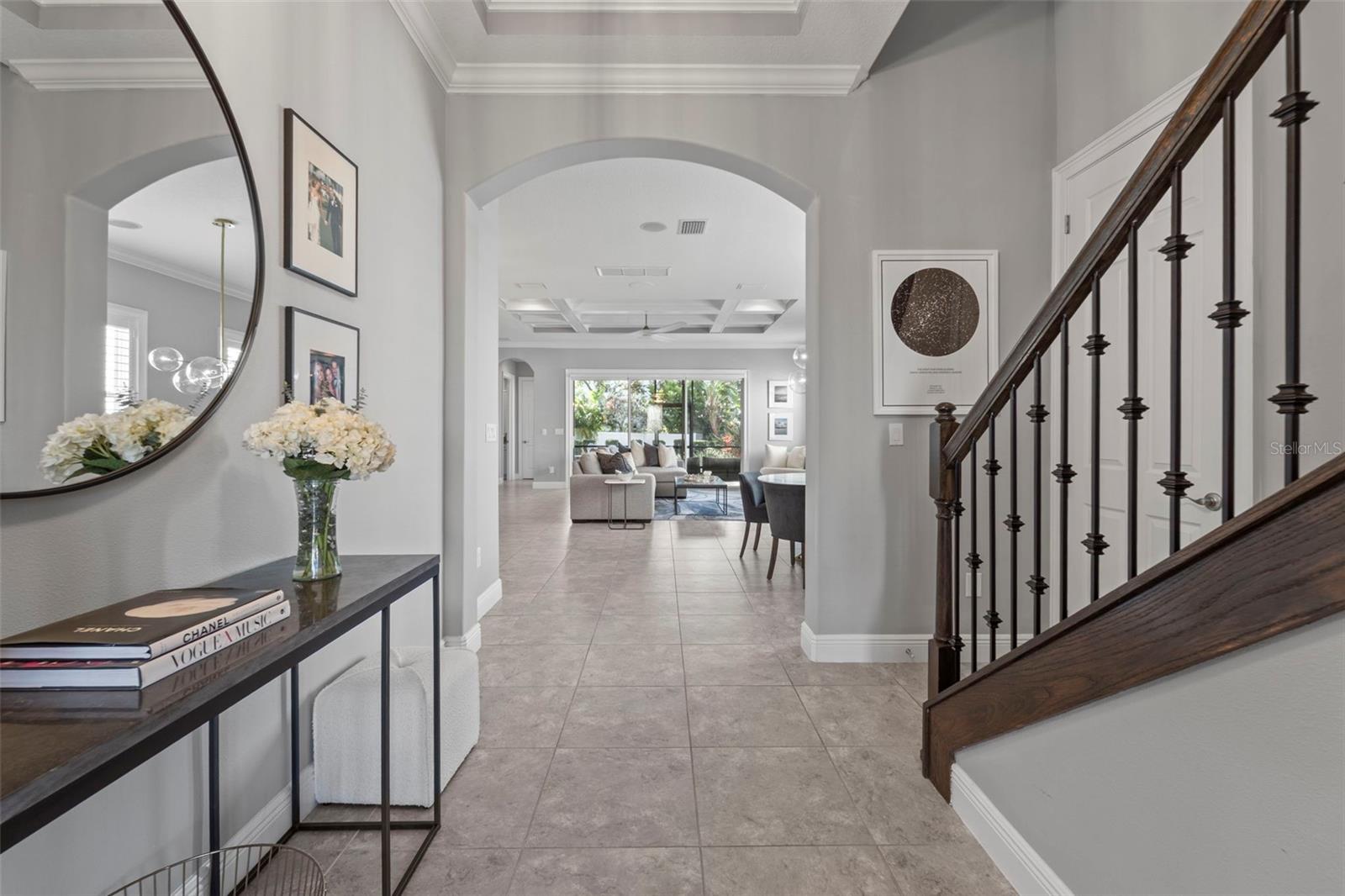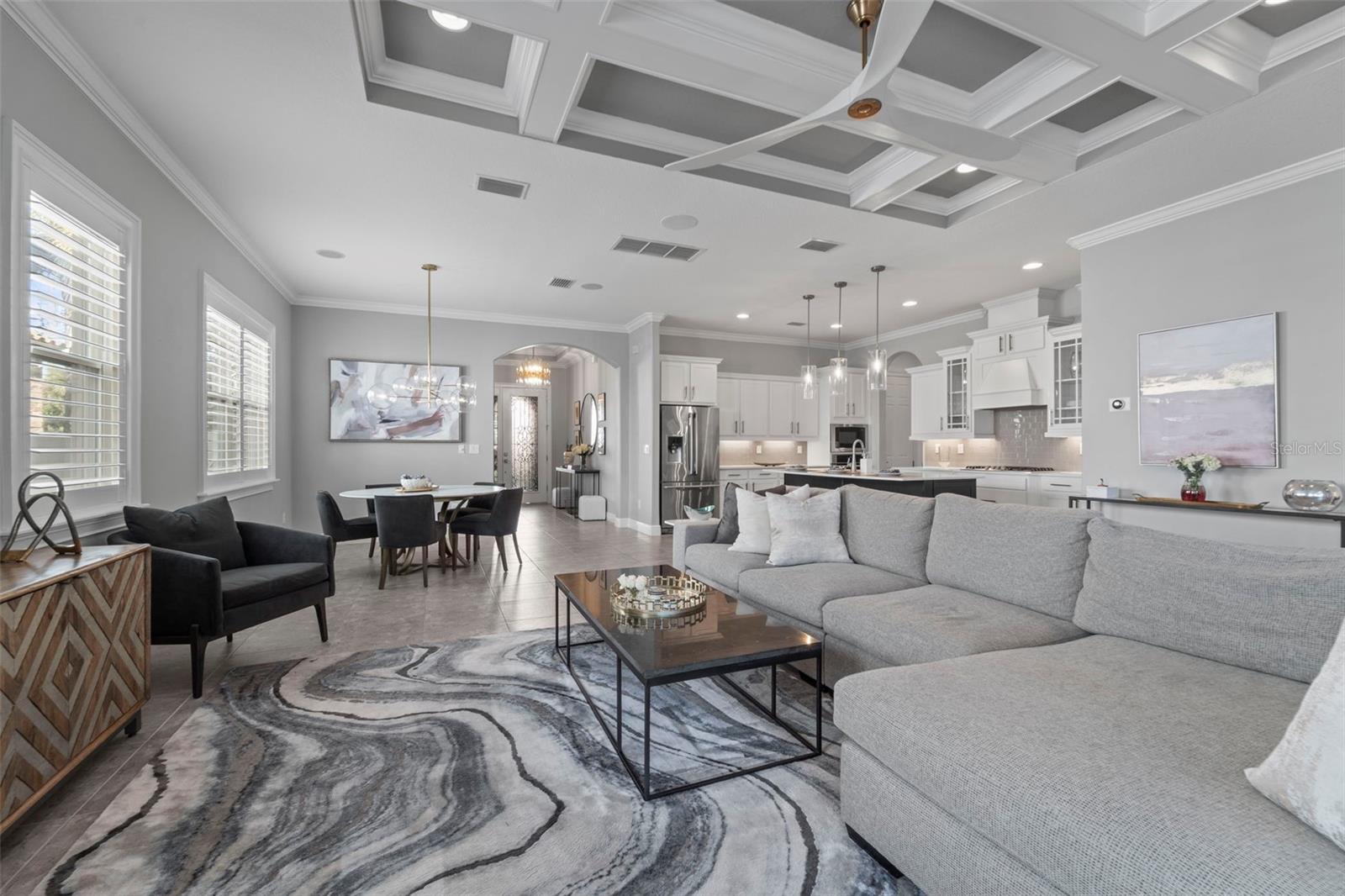 Location, Location, Location! This stunning former model home offers 4 bedrooms, 4 full bathrooms, and a first-floor office with French doors that can easily serve as a fifth bedroom. Located in Flood Zone X—no flood insurance required. Over $200,000 in upgrades include a new Carrier A/C system, Nest thermostats, custom closets, upgraded flooring and appliances, Vivint security system, Sonos surround sound, custom ceiling fans and light fixtures, plantation shutters throughout, smart blinds, Gorilla Garage flooring, a widened brick paver driveway, enhanced front and backyard landscape lighting, a new irrigation system, and professionally improved landscaping. Upon entry, the home is filled with natural light and an open layout that provides views of the expansive backyard. The gourmet kitchen features custom cabinetry, a large center island, quartz countertops, a gas cooktop, stainless steel appliances, and a spacious walk-in pantry. The adjacent family room boasts elegant tray ceilings and a generous dining area, ideal for entertaining. The first floor includes a private office with French doors (optional fifth bedroom) and a full bathroom conveniently located for guests. Upstairs, a large entertainment loft welcomes you with a wet bar and wine/beverage refrigerator. The primary suite is a true retreat, showcasing hand-scraped wood flooring, a tray ceiling, two walk-in closets, and a spa-like bathroom with dual vanities, soaking tub, and separate shower. A junior suite with its own private bathroom, two additional bedrooms with a shared dual-sink bath, and a laundry room with sink and folding area complete the second level. The screened lanai opens to a brick paver walkway leading to an outdoor patio and fire pit—perfect for relaxing or hosting guests. Additional features include hurricane shutters, a gas water heater, and a newly resurfaced garage floor. Ideally located in South Tampa, this home offers close proximity to Tampa International Airport, shopping, dining, and is within walking distance to Plant High School.