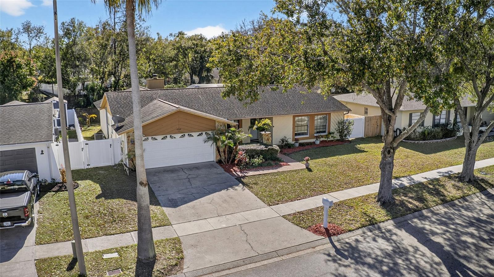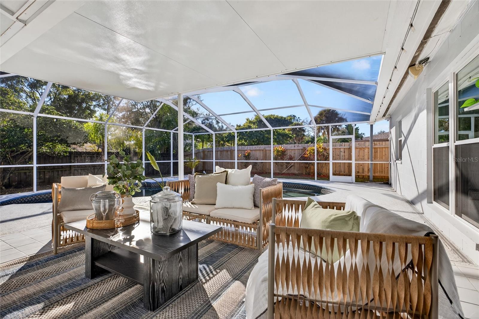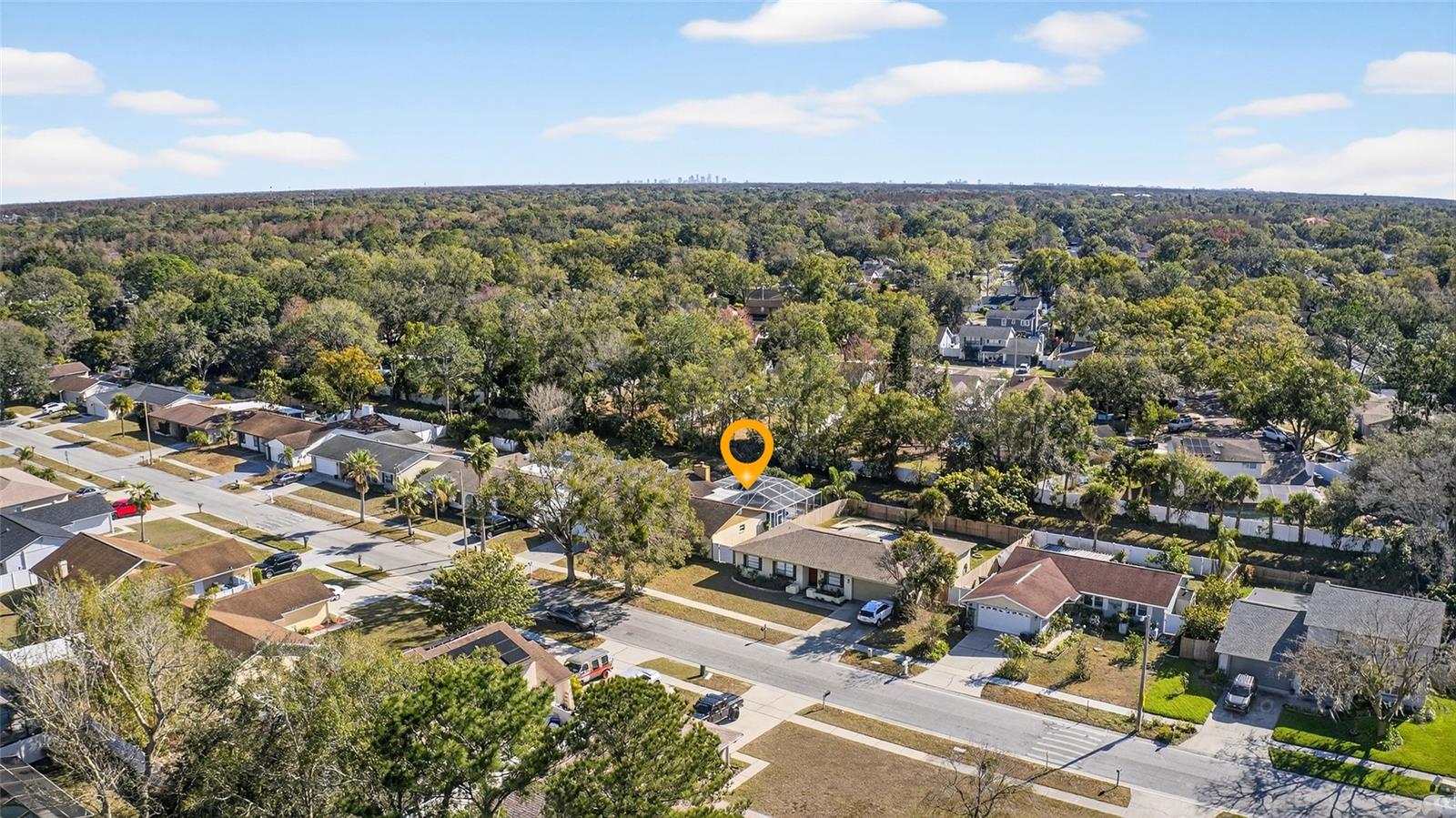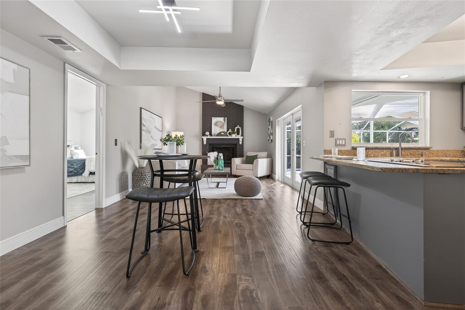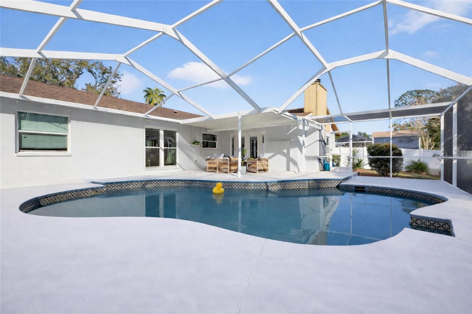 Timeless design meets relaxed Florida living in this one-story pool home located in Tampa’s sought-after Country Place community on the outskirts of Carrollwood Village. Offering 2,014 square feet of well-designed living space, this 4-bedroom, 2.5-bath residence blends comfort, function, and lifestyle in a layout that truly works for everyday living and entertaining. Upon entry, you’re greeted by a formal living room and dining room, ideal for hosting gatherings or enjoying quiet evenings at home. The split-bedroom floor plan offers three bedrooms and a full bath on one side of the home, while the private primary suite is tucked away on the opposite side, creating a peaceful retreat complete with a walk-in closet and en-suite bath. The primary bath features an L-shaped double vanity with a cultured marble top, providing generous counter space. A conveniently located guest bath is positioned near the main living areas for everyday ease and entertaining. At the heart of the home, the eat-in kitchen features tall cabinets, granite countertops, a peninsula breakfast bar with cooktop and seating, wall oven and microwave, a cabinet pantry, and a tray ceiling. A double sink sits below a large window overlooking the pool and lanai, adding both light and a scenic view. The kitchen opens seamlessly to the spacious family room, where a cozy fireplace with an accent wall anchors the space. French doors lead directly to the screened lanai, filling the home with natural light and creating effortless indoor–outdoor living. Step outside to the private screened lanai and pool retreat designed for year-round enjoyment. The expansive covered seating area is perfect for entertaining, while the sparkling in-ground free-form pool is surrounded by generous deck space for lounging and relaxing. The screened enclosure provides comfort and privacy, and the fully fenced yard adds peace of mind for pets and play—making this outdoor space a true extension of the home. Additional features include a two-car garage, wide driveway, and attractive curb appeal with mature landscaping. Enjoy nearby access to the expressway and a quick, convenient drive to everyday necessities, along with a variety of shopping and dining options in Carrollwood, Citrus Park, and Northdale. Country Place is a family-friendly community with a low annual HOA fee offering parks, playgrounds, basketball courts, and ample sidewalks for walking or biking. Designed for comfortable living, effortless entertaining, and the best of the Florida lifestyle, this home is ready to be enjoyed. Schedule your showing today. The roof has never leaked and has approximately five years of life remaining. However, with an acceptable offer, the seller will replace the roof before closing for the buyer’s insurance purposes.