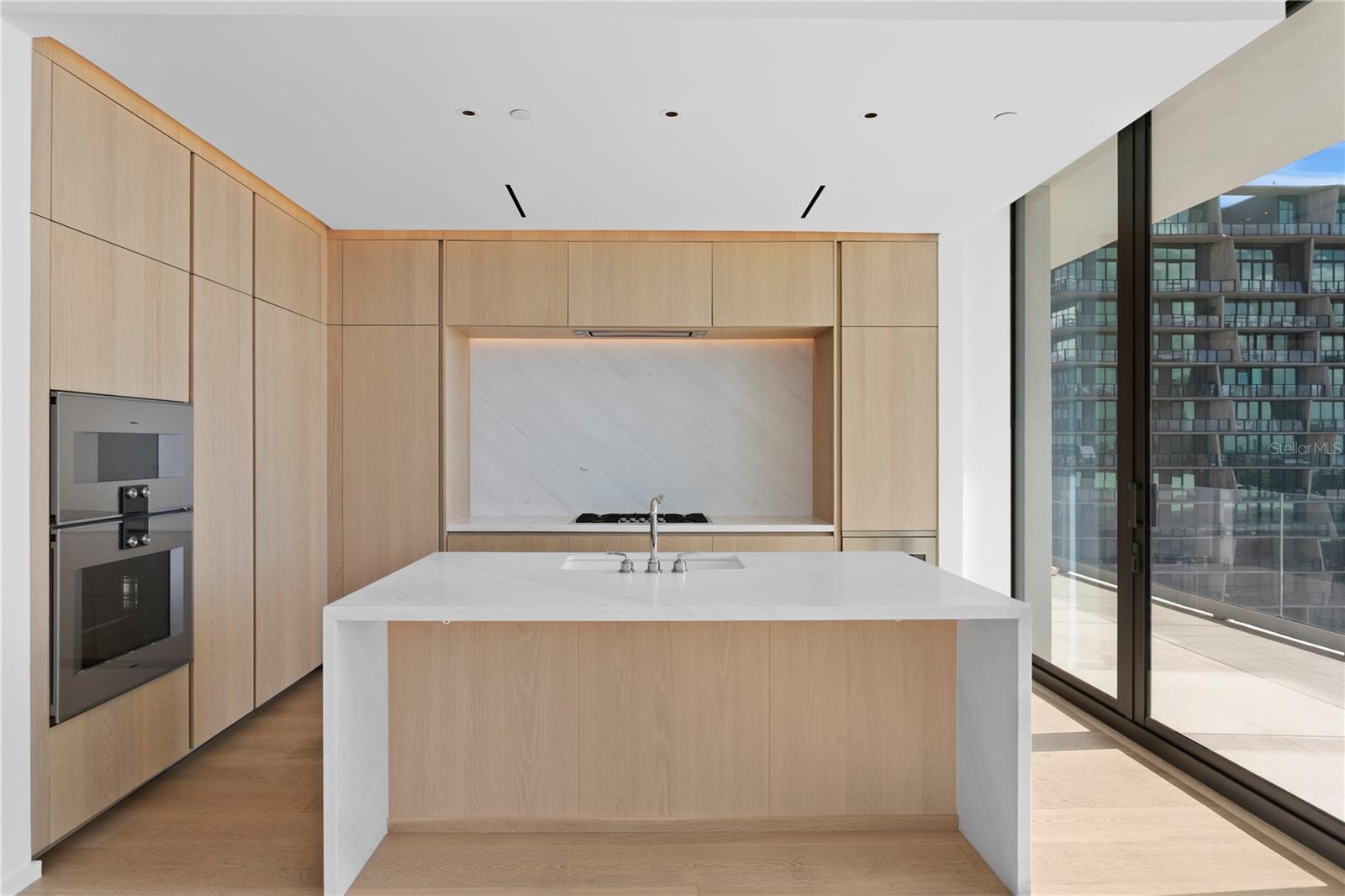 Elegant Residences rise above a five-star hotel, offering the comfort and intimacy of an expertly designed home paired with exceptional hotel amenities. Residents enjoy EDITION’s signature lifestyle, including a rooftop pool and terrace, as well as access to a full-service spa. Privacy is paramount, with each floor featuring only a limited number of homes, along with a private residential entrance, dedicated lobby, concierge, and elevators exclusively serving The Residences. Floor-to-ceiling windows frame sweeping panoramic views of Tampa Bay and the downtown skyline, while sliding glass doors open to expansive wraparound terraces featuring post-less glass railings. Interiors, inspired by renowned designers Roman and Williams, are airy and inviting, highlighted by ten-foot ceilings and wide-plank, 10-inch white oak Grato hardwood flooring throughout. Kitchens are appointed with Polaris White marble countertops, a dramatic waterfall island, and custom white oak Molteni Italian millwork with powered upper cabinets. Professional-grade Gaggenau appliances include a wine cooler and five-burner gas cooktop, complemented by a fully venting Miele hood seamlessly integrated into the cabinetry. A dedicated laundry room features an Electrolux washer and dryer for added convenience.