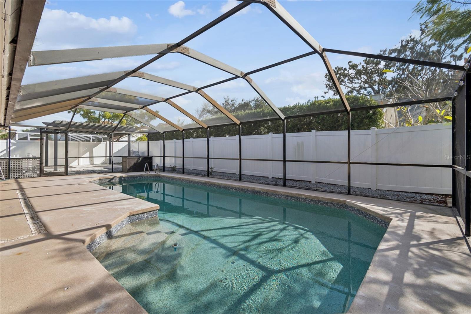 Welcome home to this beautifully updated 3-bedroom, 2-bath pool home located in the highly sought-after Eastbrook neighborhood of the Citrus Park area. This inviting open-concept home features high ceilings, luxury vinyl flooring throughout, and an abundance of natural light that creates a warm and welcoming atmosphere. The updated kitchen offers granite countertops, stainless steel appliances, ample cabinet space, and a large island with seating with the adjacent dining room and family room, providing additional space for everyday living. The living area is highlighted by a wood-burning fireplace with a wood mantle and a wall mount ready for a large TV. The spacious owner’s suite includes a walk-in closet and a spa-like en-suite bathroom with a glass-enclosed walk-in shower and private access to the pool area. Two additional bedrooms provide flexibility for family, guests, or a home office. Step outside to your private backyard oasis featuring a screened-in lanai and a sparkling pool, perfect for enjoying Florida living year-round, along with a fully fenced yard offering privacy and space for pets or play. Additional features include a two-car garage, an oversized interior laundry room, abundant storage, and a brick paver driveway. Recent updates include the roof and hot water heater (2020), sliding glass door, blinds, door hardware, baseboards, two bedroom windows, resurfaced pool, new screen enclosure, and dishwasher (2021), white vinyl fence (2022), laminate flooring (2023). Conveniently located near top-rated schools, parks, shopping, dining, and major highways, this home offers the perfect blend of comfort, style, and accessibility—schedule your private showing today.