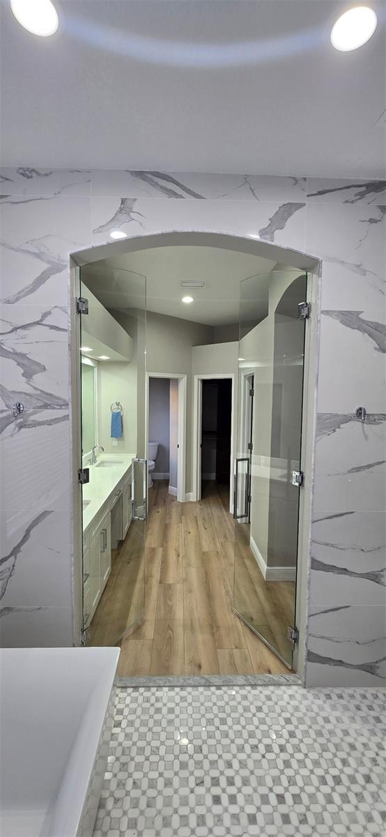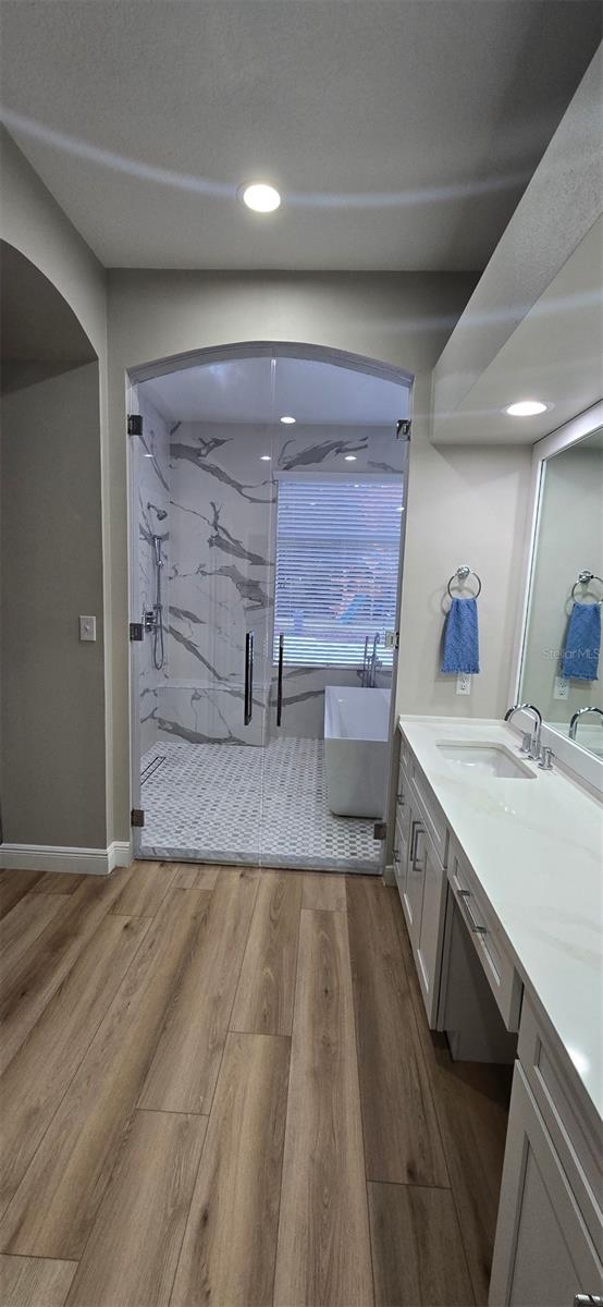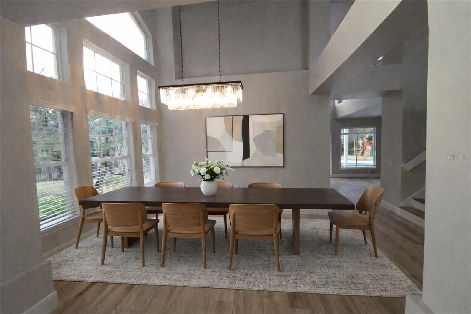 One or more photo(s) has been virtually staged. Beautifully renovated two-story home on a quiet cul-de-sac in gated HUNTER'S GREEN (village of Wynstone). Featuring soaring ceilings, luxury vinyl plank flooring throughout, updated kitchen with quartz countertops, 42" cabinets and induction cooktop, custom bar with wine cooler, and two fireplaces. First floor primary suite with spa-style wet-room bath. Oversized saltwater pool & spa, fully fenced yard backing to conservation on over 1/3 acre. Loft, private office with separate entrance, plus flex space allow the home to live like 4-5 bedrooms. Thoughtfully presented to be a place where family, friends, and memories naturally come together. Ideal for family living and entertaining - this home checks all the boxes!