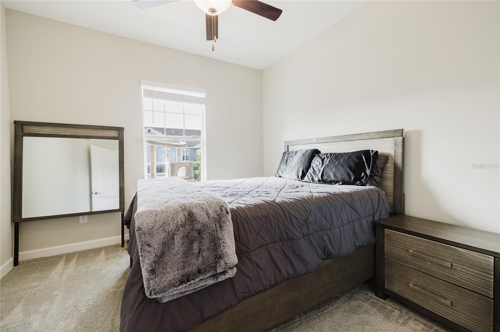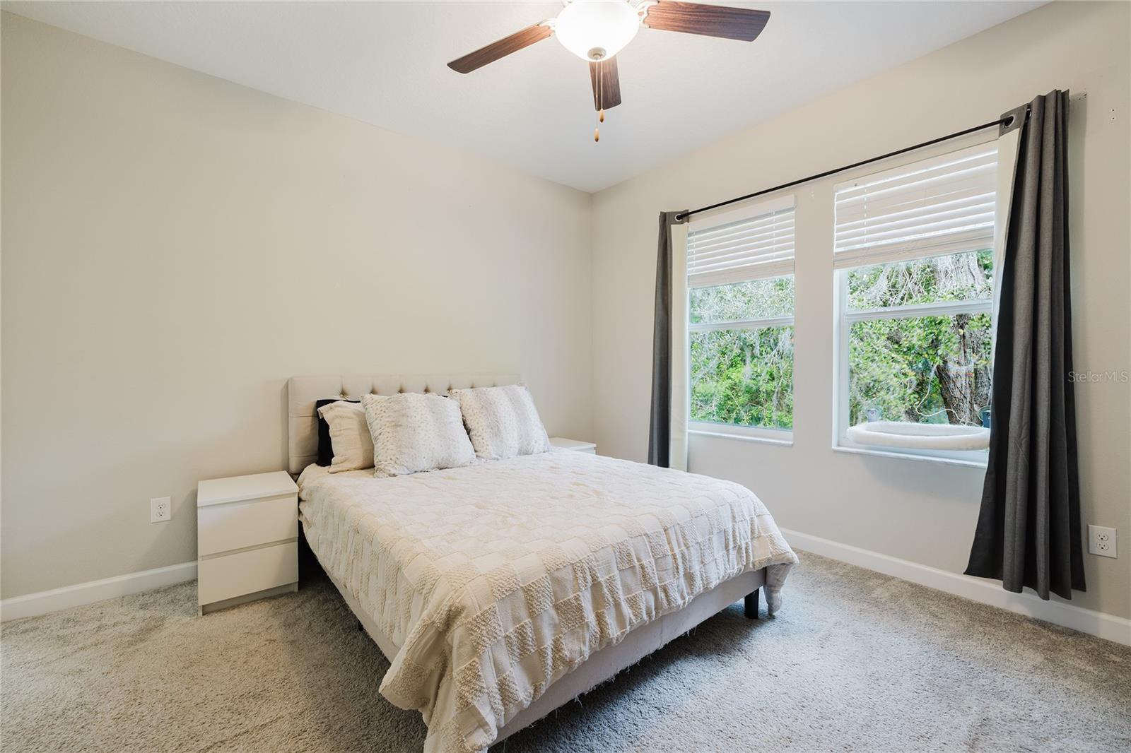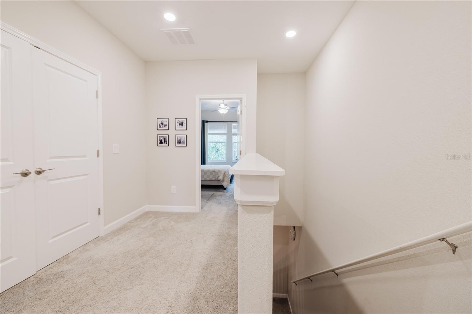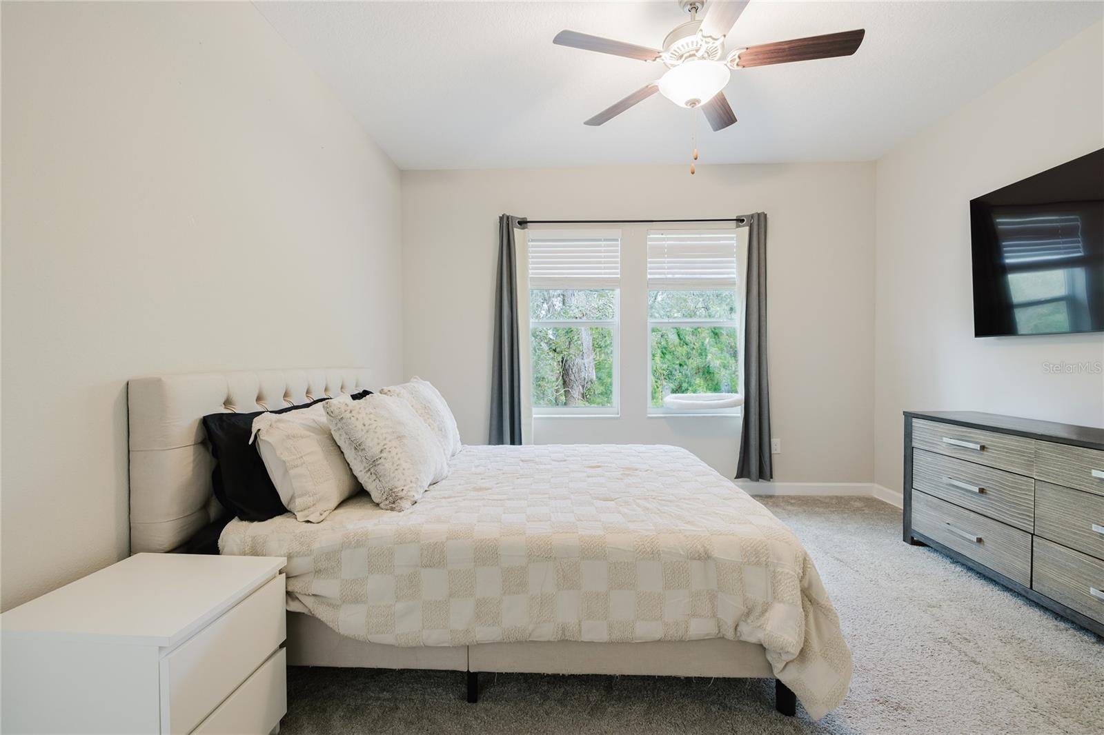WELCOME HOME TO COMFORT, STYLE, AND CONVENIENCE — JUST 3 MINUTES FROM CITRUS PARK MALL. Located in Bridgehaven at Citrus Park, this beautifully maintained 3-bedroom, 2.5-bath townhouse, built in 2019, offers modern finishes and a smart layout designed for easy living and entertaining. The open kitchen features ample cabinetry with pull-out shelves, a large center island, and a corner pantry, flowing seamlessly into the main living area. Upstairs, all bedrooms are thoughtfully placed alongside a versatile loft and convenient laundry room. The primary suite overlooks peaceful greenspace and includes a walk-in closet and a spacious en-suite bath with dual vanities and an oversized shower. Enjoy the private back porch surrounded by lush landscaping, mature oak trees, and privacy fencing—perfect for relaxing or hosting guests. Additional upgrades include hurricane panels, updated lighting, and a prewired security system. Bridgehaven is a low-maintenance community with an HOA that covers cable, high-speed internet, exterior maintenance, roof reserves, and access to a resort-style pool and cabana. Located in Flood Zone X, this home is also only minutes from the Veterans Expressway, shopping, dining, and Tampa International Airport. This is easy, modern living in a location that truly works for your lifestyle.