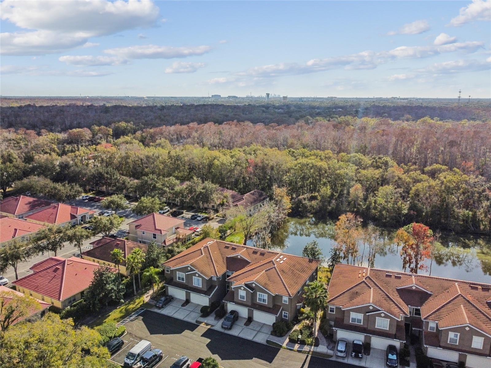 Welcome to a rare opportunity to own a beautifully maintenance-free townhome in a gated community, offering the perfect blend of elegance, comfort, and convenience. This 3-bedroom, 2.5-bath residence with a 2-car garage is truly move-in ready, thoughtfully designed for both everyday living and upscale entertaining—complete with a serene pond view enjoyed from your extended patio, creating a peaceful and private outdoor retreat. Step inside to a bright, open-concept layout showcasing tile flooring throughout, custom plantation shutters, and refined finishes at every turn. The chef’s kitchen is the heart of the home, featuring upgraded granite countertops, a striking marble backsplash, stainless steel appliances, abundant cabinetry, a walk-in pantry, and an open breakfast bar perfect for casual dining and entertaining. The adjacent dining area comfortably seats six, making it ideal for gatherings and family dinners. The downstairs primary suite offers a private sanctuary, complete with a spa-inspired en-suite bath showcasing dual vanities, solid surface countertops, a walk-in shower, and a luxurious garden tub. A generous walk-in closet completes this elegant retreat. Additional highlights include an inside laundry room for everyday convenience and seamless functionality. Upstairs, you’ll find a versatile built-in office space with a custom counter—perfect for remote work, studying, or creative pursuits—along with well-appointed secondary bedrooms and baths that maintain the home’s elevated design and comfort. From the tranquil pond-view patio to the gated, maintenance-free lifestyle, this home delivers both beauty and ease—allowing you to enjoy luxury living without the hassle. This property is conveniently situated within minutes of USF, Moffitt, VA, Pepin Heart Institute, Florida Hospital, Busch Gardens, MOSI, as well as numerous dining and shopping options. It offers quick access to both I-75 and I-275. Residents can enjoy a variety of nearby parks and walking trails located just outside the gated community. Monthly maintenance covers all exterior building upkeep and reserves, common area maintenance, lawn care, and private pool access.