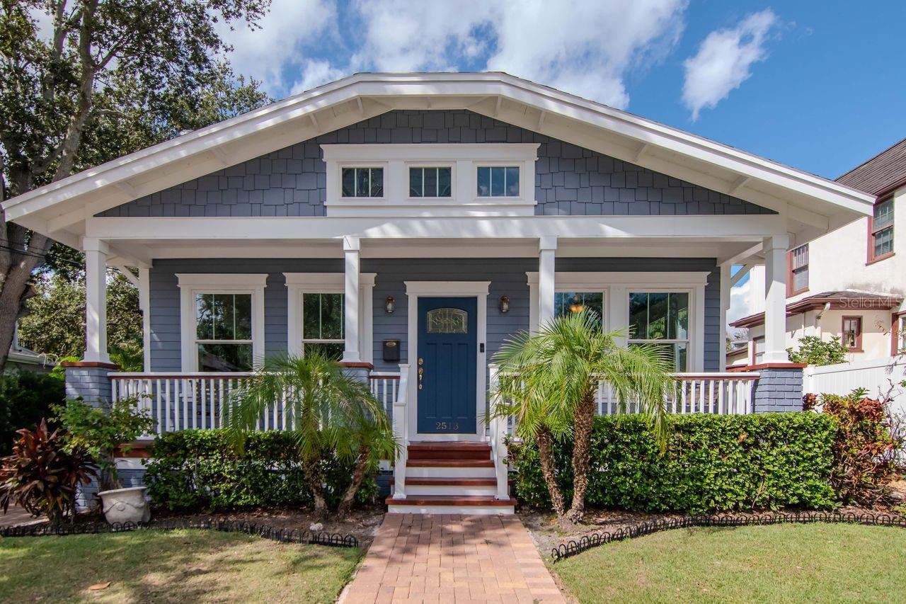 Step into a perfect blend of South Tampa charm and contemporary refinement. From the inviting front porch of this Craftsman-inspired home—with its strong horizontal profile, tapered brick piers, “bungalow meets modern addition” feel—you immediately sense a graceful balance of heritage and upgrade. The covered porch welcomes guests into the heart of this residence. On the inside, the main level opens with wide oak plank flooring, 9-foot ceilings, and a natural light stream through tall windows. A formal living room anchors the home with a stylish wood-burning fireplace and custom mantle, while adjacent you’ll find a sunroom filled with light and a formal dining area ideal for entertaining. The kitchen was designed with thoughtfulness and style: a center island/breakfast bar, stainless-steel appliances (including an induction cooktop and built-in convection oven), and beautiful granite countertops. The kitchen flows directly into a family room that opens to the backyard patio, creating a seamless indoor/outdoor zone perfect for daily living or hosting guests. The owner’s suite is located on the main floor and delivers both comfort and elegance: dual vanities, a pedestal free standing tub, and a separate glass-enclosed shower. A flexible office/den just off the main level can serve as a guest room, home office or secondary living space. A quaint powder bath is conveniently located adjacent to the study. Upstairs, a well-lit secondary primary suite sits alongside two additional bedrooms, a full bathroom and a convenient upstairs laundry room — creating a thoughtful layout for family or visiting guests. Through every space, architectural details shine: crown molding, wood casings and built-ins honor the earlier bungalow character while the scale of the addition (added in 2017 to the original 1300 sqft bungalow) holds its own for modern life. With approx. 3,224 sq ft of living space, this two-level residence delivers both formal and casual zones, private and shared spaces, and a timeless palette of finishes. Outside, you’ll find a backyard sanctuary designed for both activity and relaxation. A contemporary lap pool (added in 2018) offers a clean, long swim lane and crisp resort-like edges. French doors from the family room open the house to the outdoors, reinforcing the sense of continuous living. The result is a fully fenced-in backyard retreat tailored to lifestyle. Mature landscaping and a low-maintenance lawn border the space, providing privacy and a lush backdrop. Parking and garage access are handled with the same notion of thoughtful design: there is a detached one-car garage, accessed via a long driveway and granting a separate side entry to the kitchen area for everyday ease. An electric vehicle charger is conveniently located nearby and conveys with the home. This home is truly a rare find—melding South Tampa’s street-charm, walkability, bay-close lifestyle, and contemporary amenities. From the welcoming front porch to the refreshed interior and the pool-side retreat, every detail has been sculpted for style, comfort and function. The Sellers are including a 1 year American Home Shield Warranty. You don't want to miss this one!! Call for your private showing.