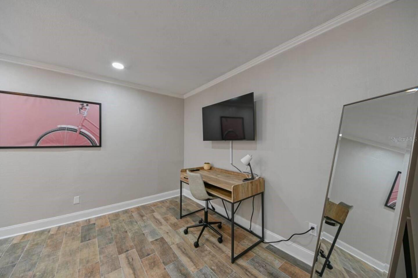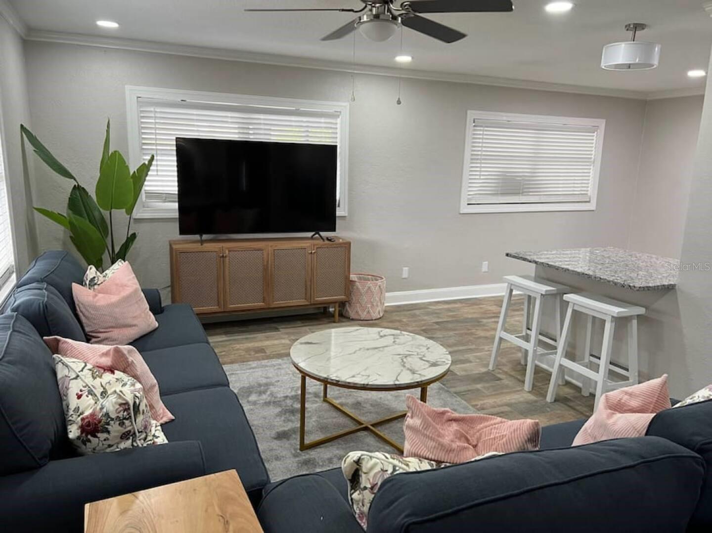 Step into this beautifully updated 4-bedroom, 2-bathroom home in the highly sought-after Wellswood neighborhood. Designed with both comfort and style in mind, the split floor plan offers privacy and functionality, making it ideal for families or guests. The brand-new kitchen is a true centerpiece, featuring wood cabinetry, granite countertops, a breakfast bar, and stainless steel appliances. Smart lighting switches allow you to control the new LED recessed lighting throughout the home right from your phone. California-style closets with custom shelving and drawers add organization and convenience, while crown molding and thoughtful finishes elevate the overall design. The spacious Florida room opens seamlessly to the newly resurfaced pool and screened enclosure—perfect for entertaining or relaxing outdoors. A covered patio and low-maintenance landscaping, complete with a steel fire pit, enhance the home’s charm and create inviting spaces for gatherings. The master suite offers a walk-in closet and a spa-like ensuite with dual sinks and a large shower. On the opposite side of the home, three additional bedrooms share a sparkling new bathroom, making the layout both practical and welcoming. The metal roof, just four years old, adds peace of mind and durability. Centrally located, you’re minutes from Seminole Heights, Raymond James Stadium, St. Joseph’s Children’s Hospital, Tampa Catholic High School, and downtown Tampa. Fine dining, shopping, and entertainment are all within easy reach. Beyond its lifestyle perks, this property presents strong income potential as a vacation rental. With its prime location, modern upgrades, and inviting outdoor spaces, it’s perfectly positioned to attract short-term rental guests seeking the best of Tampa living.