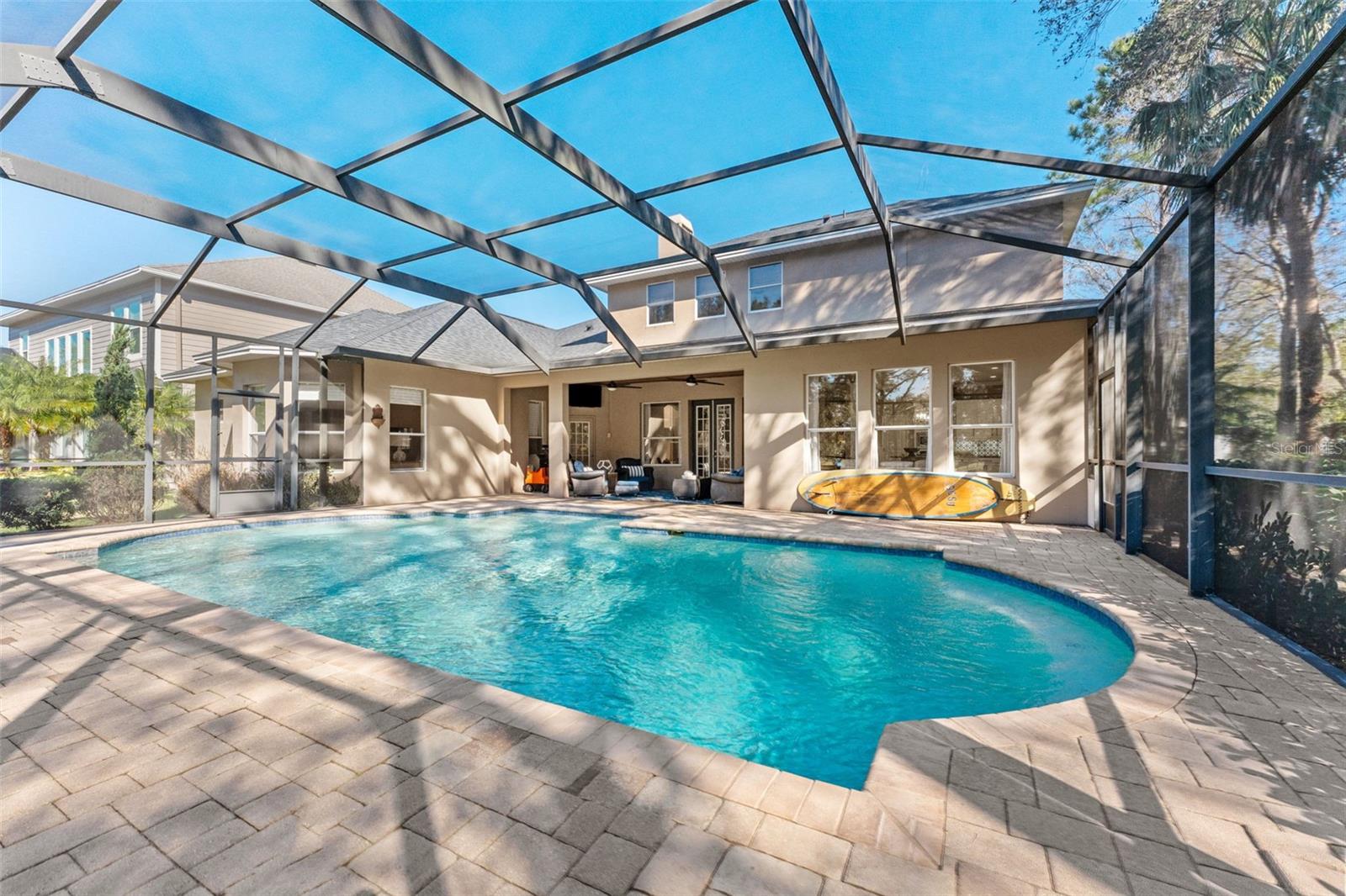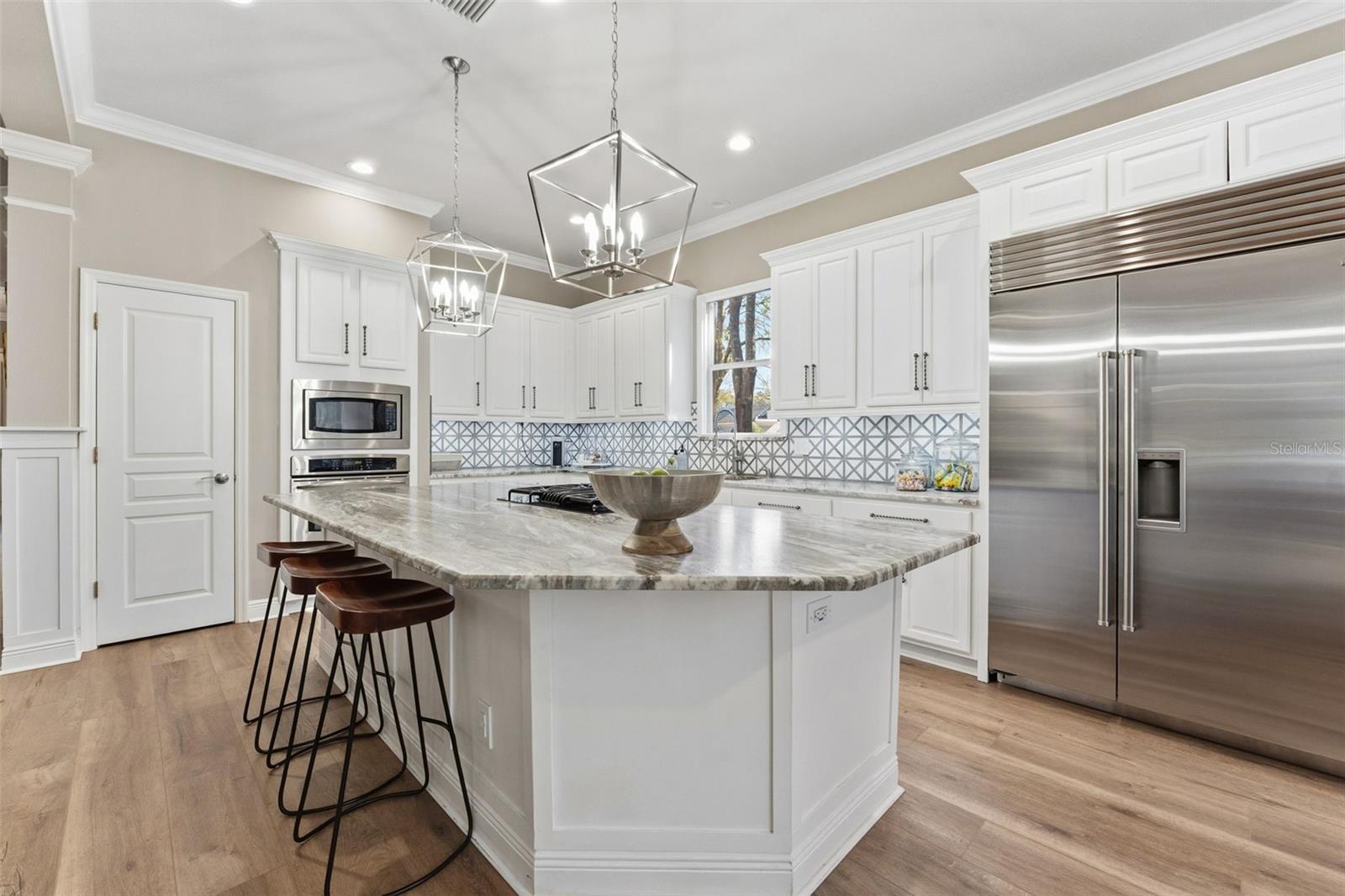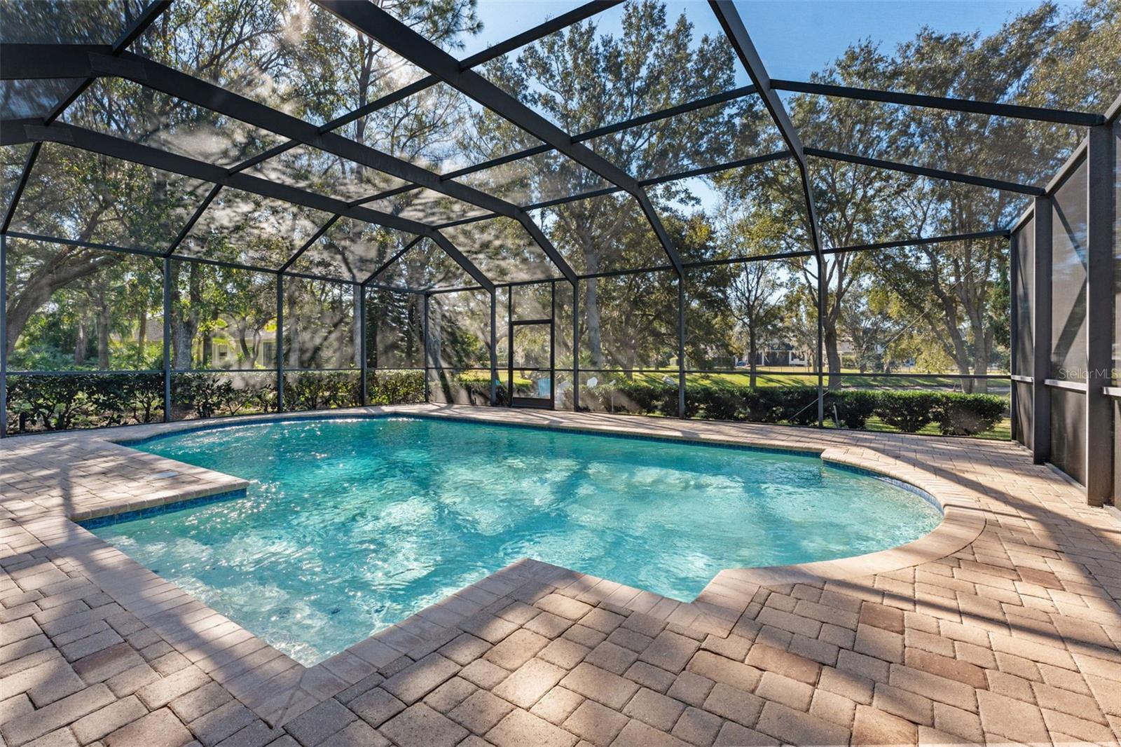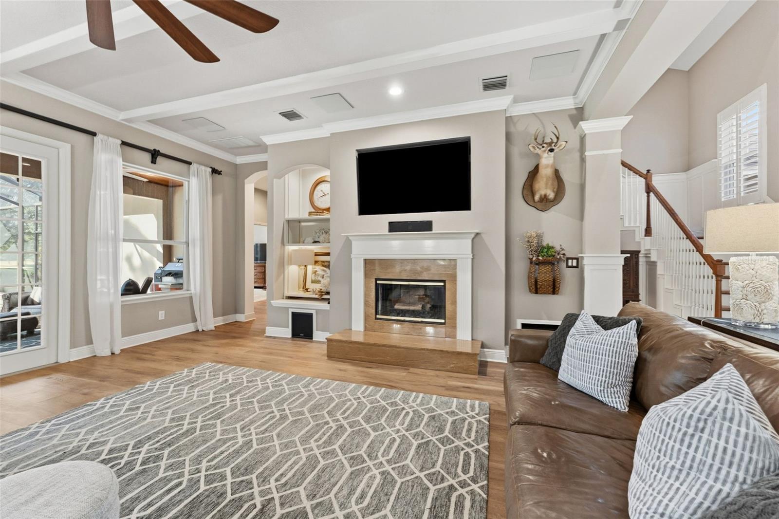 Beyond the GATED entry, a picturesque park-like setting frames this beautifully designed home, where manicured landscaping and mature trees create a serene sense of arrival. A clay brick driveway and matching walkway lead to the inviting covered front porch with a wood plank ceiling, while classic columns and lush greenery enhance the home’s timeless curb appeal. The elegant glass-paneled front door completes the welcoming entry, setting the tone for the refined living that awaits inside. Built in 2006 by David Weekley Homes, this 2-story pool residence offers 5 bedrooms, 3.5 baths, a 3-car tandem garage, and 4,018 sq ft of thoughtfully designed living space. The home is ideally positioned on an oversized 0.29-acre lot beside a park, with only five homes on a cul-de-sac street and natural preserve views across the street and a premier setting on scenic 64-acre Galt Lake. Inside, refined architectural details elevate the home’s timeless design. French doors open to a private office just off the foyer, while tray ceilings, crown molding, board-and-batten accent walls, and decorative columns add depth and character throughout. Wide-plank luxury vinyl flooring (2023) flows across the first floor, enhancing both style and durability. The great room serves as a stunning focal point with plank board ceilings and a wood-burning fireplace featuring a marble surround and mantle. A striking staircase with contrasting wood treads, crisp white balustrade, and wood handrail leads to the upstairs open loft and additional bedrooms, creating a graceful connection between levels. Designed for effortless entertaining, the chef’s kitchen showcases 42-inch raised-panel cabinetry with trim and crown molding, under-cabinet lighting, and a timeless tile backsplash. Leather look natural stone countertops and a spacious counter-height breakfast bar with pendant lighting invite gathering. Culinary highlights include a gas cooktop and premium stainless appliances including a Sub-Zero refrigerator, while a window above the stainless sink captures peaceful park views. A built-in bar area with wine refrigerator, glass-front cabinets, and generous eat-in space complete the space. The first-floor primary suite is a private retreat featuring a bay window sitting area, tray ceiling with crown molding, and recessed lighting. The ensuite spa bath offers a freestanding soaking tub, seamless glass walk-in tiled shower, separate vanities, a private water closet, linen closet, and an expansive walk-in closet. The outdoor living space is exceptional, featuring a brick paver lanai with wood plank ceiling, heated saltwater pool, and a NEW screen enclosure (2025) with three exits. An expanded paver patio, gas firepit, and pony walls with gas lantern lighting create an unforgettable setting for evenings by the water. Residents of Highland Park enjoy an elevated, resort-style lifestyle with a lakeside clubhouse, zero-entry pool, fitness center, playgrounds, and fishing pier on 64-acre Galt Lake, ideal for canoeing and kayaking. The community is zoned for A-rated schools, features an on-site preschool, and offers a charming retail village with walkable dining, wine bars, wellness studios, and boutique services. Ideally located near Tampa International Airport, Downtown Tampa, and Florida’s world-renowned Gulf beaches, this is luxury living defined by lifestyle and location. Schedule your private tour today and experience it firsthand.