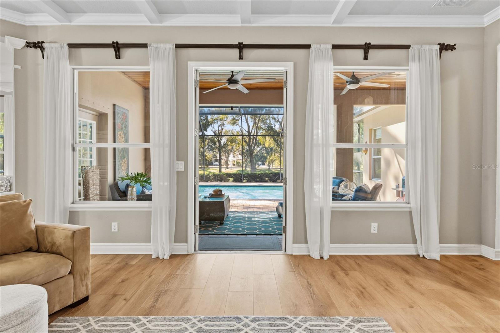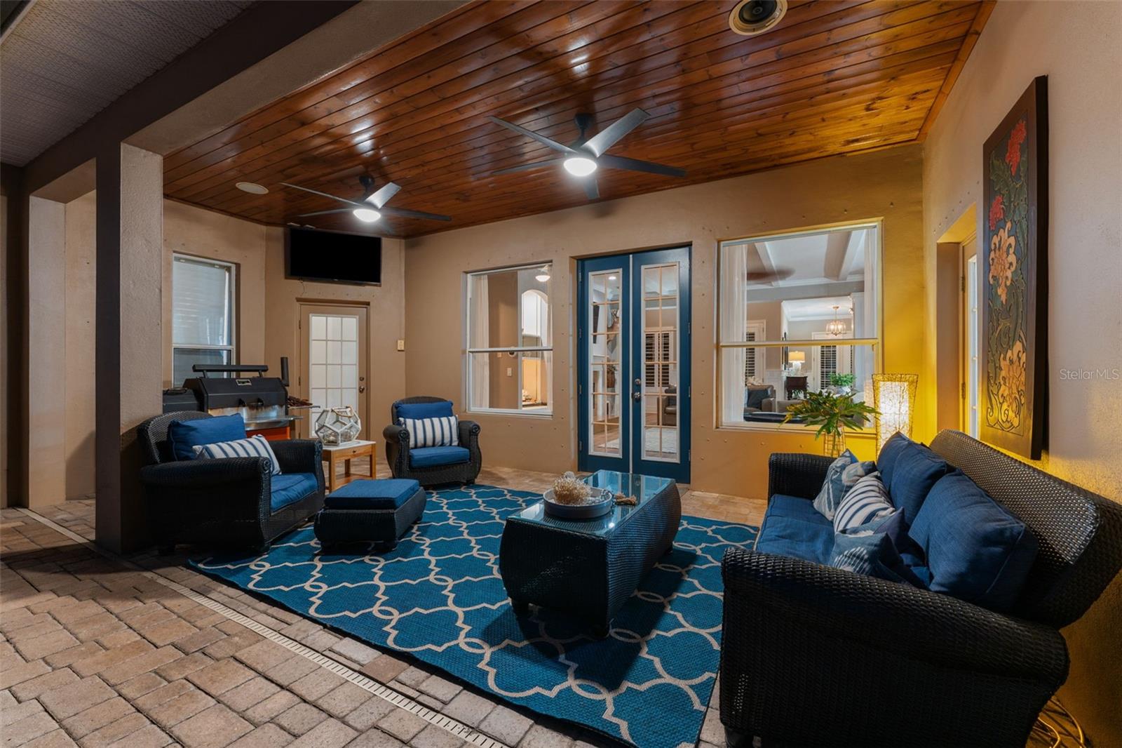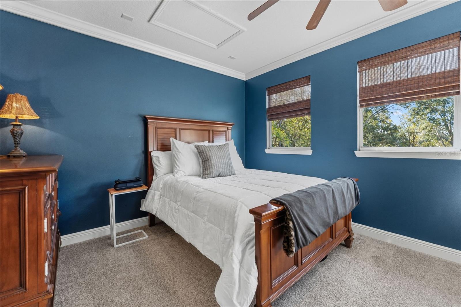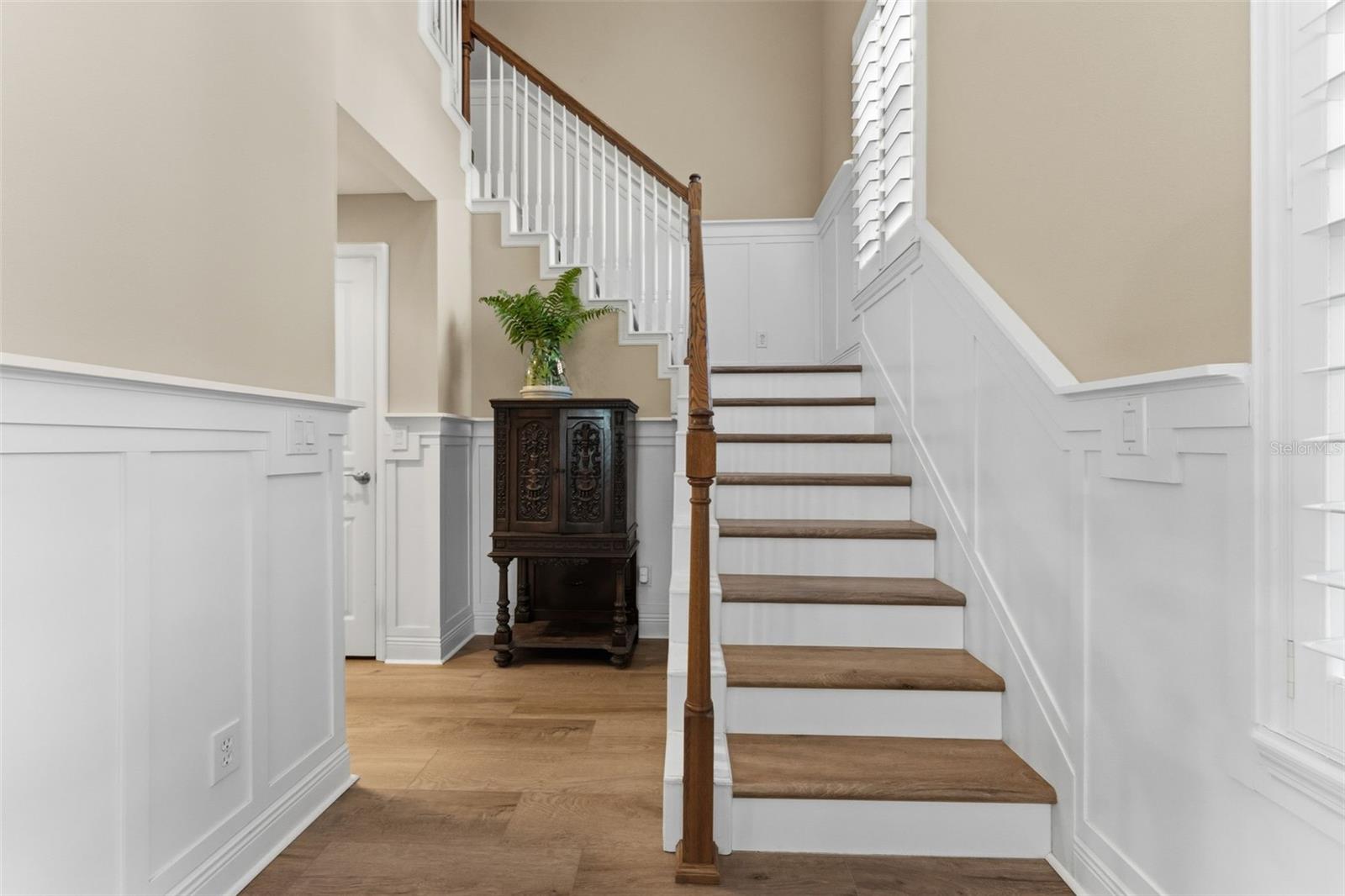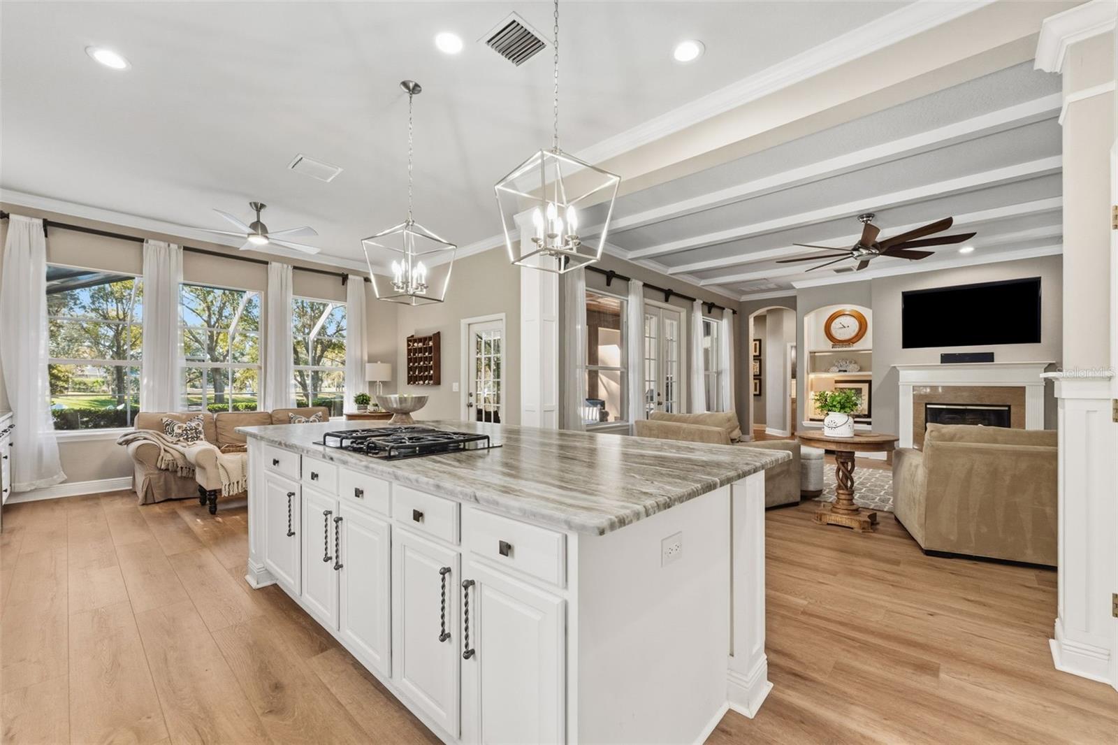 Beyond the GATED entry, a picturesque park-like setting frames this beautifully designed home, where manicured landscaping and mature trees create a serene sense of arrival. A clay brick driveway and matching walkway lead to the inviting covered front porch with a wood plank ceiling, while classic columns and lush greenery enhance the home’s timeless curb appeal. The elegant glass-paneled front door completes the welcoming entry, setting the tone for the refined living that awaits inside. Built in 2006 by David Weekley Homes, this 2-story pool residence offers 5 bedrooms, 3.5 baths, a 3-car tandem garage, and 4,018 sq ft of thoughtfully designed living space. The home is ideally positioned on an oversized 0.29-acre lot beside a park, with only five homes on a cul-de-sac street and natural preserve views across the street and a premier setting on scenic 64-acre Galt Lake. Inside, refined architectural details elevate the home’s timeless design. French doors open to a private office just off the foyer, while tray ceilings, crown molding, board-and-batten accent walls, and decorative columns add depth and character throughout. Wide-plank luxury vinyl flooring (2023) flows across the first floor, enhancing both style and durability. The great room serves as a stunning focal point with plank board ceilings and a wood-burning fireplace featuring a marble surround and mantle. A striking staircase with contrasting wood treads, crisp white balustrade, and wood handrail leads to the upstairs open loft and additional bedrooms, creating a graceful connection between levels. Designed for effortless entertaining, the chef’s kitchen showcases 42-inch raised-panel cabinetry with trim and crown molding, under-cabinet lighting, and a timeless tile backsplash. Leather look natural stone countertops and a spacious counter-height breakfast bar with pendant lighting invite gathering. Culinary highlights include a gas cooktop and premium stainless appliances including a Sub-Zero refrigerator, while a window above the stainless sink captures peaceful park views. A built-in bar area with wine refrigerator, glass-front cabinets, and generous eat-in space complete the space. The first-floor primary suite is a private retreat featuring a bay window sitting area, tray ceiling with crown molding, and recessed lighting. The ensuite spa bath offers a freestanding soaking tub, seamless glass walk-in tiled shower, separate vanities, a private water closet, linen closet, and an expansive walk-in closet. The outdoor living space is exceptional, featuring a brick paver lanai with wood plank ceiling, heated saltwater pool, and a NEW screen enclosure (2025) with three exits. An expanded paver patio, gas firepit, and pony walls with gas lantern lighting create an unforgettable setting for evenings by the water. Residents of Highland Park enjoy an elevated, resort-style lifestyle with a lakeside clubhouse, zero-entry pool, fitness center, playgrounds, and fishing pier on 64-acre Galt Lake, ideal for canoeing and kayaking. The community is zoned for A-rated schools, features an on-site preschool, and offers a charming retail village with walkable dining, wine bars, wellness studios, and boutique services. Ideally located near Tampa International Airport, Downtown Tampa, and Florida’s world-renowned Gulf beaches, this is luxury living defined by lifestyle and location. Schedule your private tour today and experience it firsthand.