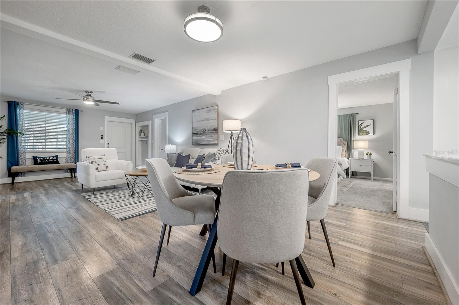 Step into timeless charm with this beautifully restored 1920 Craftsman-style bungalow located in one of Tampa’s hottest neighborhoods—Southeast Seminole Heights. This 4-bedroom, 2-bath home features a split floor plan, bonus room or office, and a spacious open-concept layout that flows seamlessly from the great room to the kitchen—perfect for entertaining and everyday living. From the brick-paved walkway to the screened-in front porch with its inviting swing, every detail combines historic character with modern comfort. The home has been fully remodeled with a newer roof and A/C, hurricane-rated impact windows, updated plumbing and electrical, fresh interior and exterior paint, new flooring, drywall, LED recessed lighting, fixtures, and stylish finishes throughout. The kitchen showcases stainless steel appliances, updated cabinetry, and sleek countertops. Additional highlights include newly installed solar panels for energy efficiency, an above-ground pool, massive deck, and beautifully landscaped grounds. The oversized one-car detached garage with a workshop, carport, and extended driveway provide ample parking and storage. Sitting on a fully fenced .26-acre lot, there’s plenty of space for children, pets, and outdoor entertaining. All this just steps from local favorites like Duffs, Old Heights Bistro, Southern Brewing, and Girl and a Grill. Come live where the cool kids live—in the heart of Tampa’s most vibrant neighborhood!