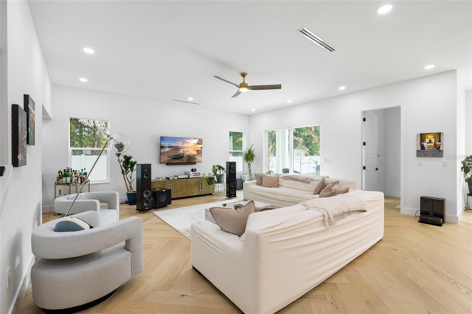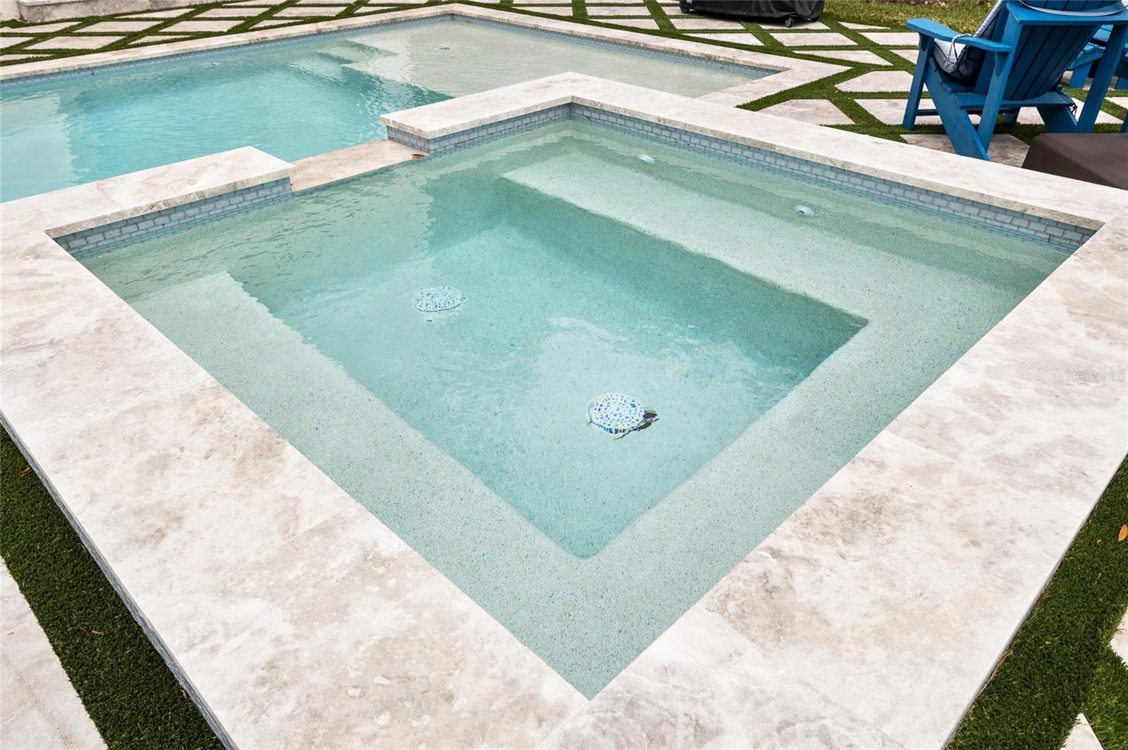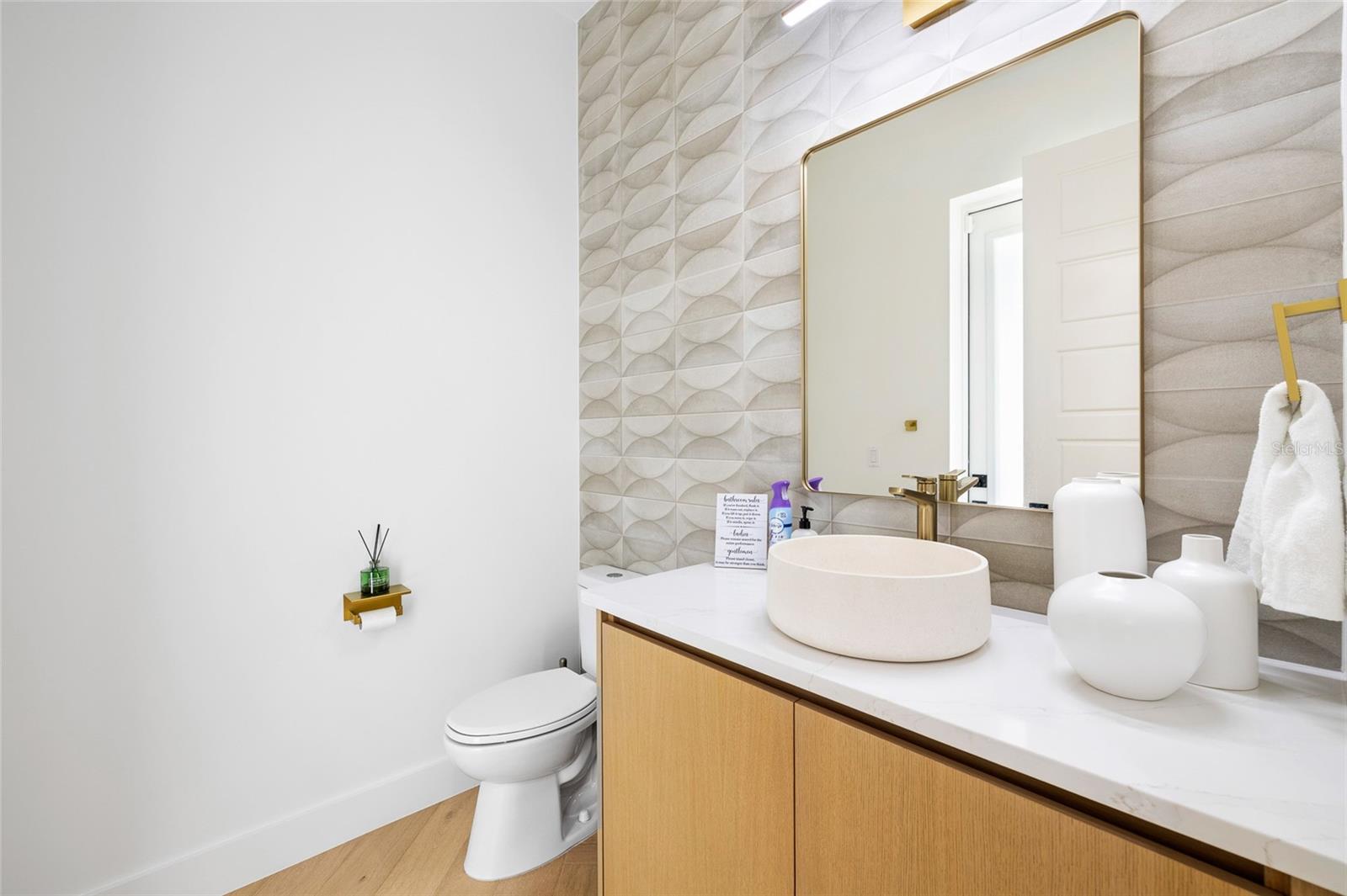 Discover elevated living in this show-stopping newer construction home built in 2025, perfectly positioned in Riverside Heights, one of Tampa’s most sought-after neighborhoods. Just minutes from Tampa Riverwalk, Armature Works, Downtown Tampa, Water Street, Gas Worx, and the Heights YMCA, this home delivers the ultimate blend of luxury, lifestyle, and location. From the moment you arrive, the home makes a statement. Striking modern architecture is paired with fluted wood-look composite accents, a custom hardscaped driveway with turf inlays, sleek vertical lighting, and a glass-railed balcony, creating unforgettable curb appeal. Step inside to a light-filled, open-concept design with 10-foot ceilings on both levels, 8-foot solid-core doors, and blonde herringbone engineered hardwood floors throughout. The result is a warm, contemporary space that feels both refined and welcoming. At the heart of the home, the chef’s kitchen is as functional as it is beautiful. Custom two-tone cabinetry pairs crisp white uppers with white oak lowers, highlighted by under-cabinet LED lighting. Leathered Taj Mahal Quartzite countertops and backsplash add timeless elegance, while the expansive 8-foot waterfall island offers generous seating and storage. High-end Café stainless steel appliances include a 42” refrigerator, gas cooktop, built-in oven and microwave, and a double-drawer dishwasher—perfect for entertaining at any scale. The living and dining spaces flow seamlessly together with direct views of the pool, enhanced by a designer dry bar featuring a wine fridge, antique mirrored backsplash, and custom brass bistro rack. A stylish powder bath with pool access adds everyday convenience, while the main level also includes a guest suite with en-suite bath and a spacious laundry room with built-in cabinetry. Upstairs, an impressive glass-railed staircase leads to a versatile loft overlooking the pool, complete with a full wet bar, quartz counters, and ample storage—ideal for entertaining or relaxing nights in. The primary suite is a true retreat, spanning approximately 20 feet wide and opening to a private balcony through a three-panel sliding door. Enjoy a built-in wet bar with wine fridge, open white oak shelving, and two custom walk-in closets. The spa-inspired primary bath stuns with a flush-entry wet room, freestanding soaking tub, rain shower, fluted tile accent walls, LED-lit niches, and a luxurious dual vanity with textured glass sinks, pop-up outlets, and abundant storage. A private water closet features a smart toilet with bidet functionality. Two additional guest suites with walk-in closets share a beautifully designed Jack-and-Jill bathroom with Zellige tile accents and Champagne Bronze fixtures, while a fourth bedroom offers its own en-suite bath—perfect for guests or multigenerational living. Designed for Florida living, the backyard is an entertainer’s dream. A heated 12’ x 24’ saltwater pool with sun shelf and a 7’ x 7’ spa is surrounded by a diamond-pattern travertine deck with turf inlays, creating a private oasis for both relaxing and hosting unforgettable gatherings. This exceptional home delivers modern luxury, thoughtful design, and an unbeatable Tampa location—a rare opportunity to own a true Riverside Heights masterpiece.