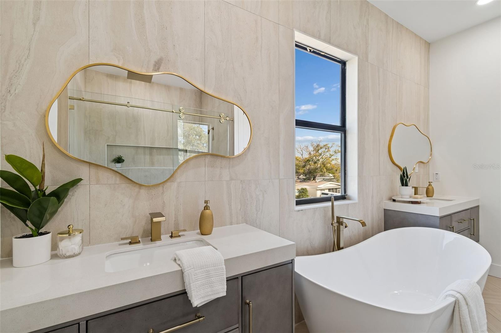 Experience modern luxury in this brand-new 3,425 sq. ft. residence, ideally located within walking distance to the Westshore Marina District. Offering 5 bedrooms and 4 bathrooms, this thoughtfully designed home seamlessly blends high-end finishes with everyday functionality. The heart of the home showcases a 12-foot quartz island, sleek quartz countertops, a premium GE appliance package, and a spacious walk-in pantry, all flowing effortlessly into the living and dining areas for a bright, open-concept layout perfect for entertaining. A full bedroom and bathroom on the main level provide ideal flexibility for guests, a home office, or multigenerational living. Upstairs, a generous loft space offers a secondary living area, media room, or lounge, while the primary suite serves as a private retreat, complete with his-and-her walk-in closets and a spa-inspired bathroom featuring a soaking tub and an oversized walk-in shower. The remaining bedrooms are thoughtfully designed for comfort and privacy. Step outside to a spacious backyard with ample room to design a custom pool—perfect for embracing the Florida lifestyle. A two-car garage completes the home, offering convenience and additional storage. This exceptional new construction combines modern architecture, premium finishes, and an unbeatable location near waterfront dining, shopping, and entertainment—a rare opportunity to own a move-in-ready luxury home in the heart of Tampa.
