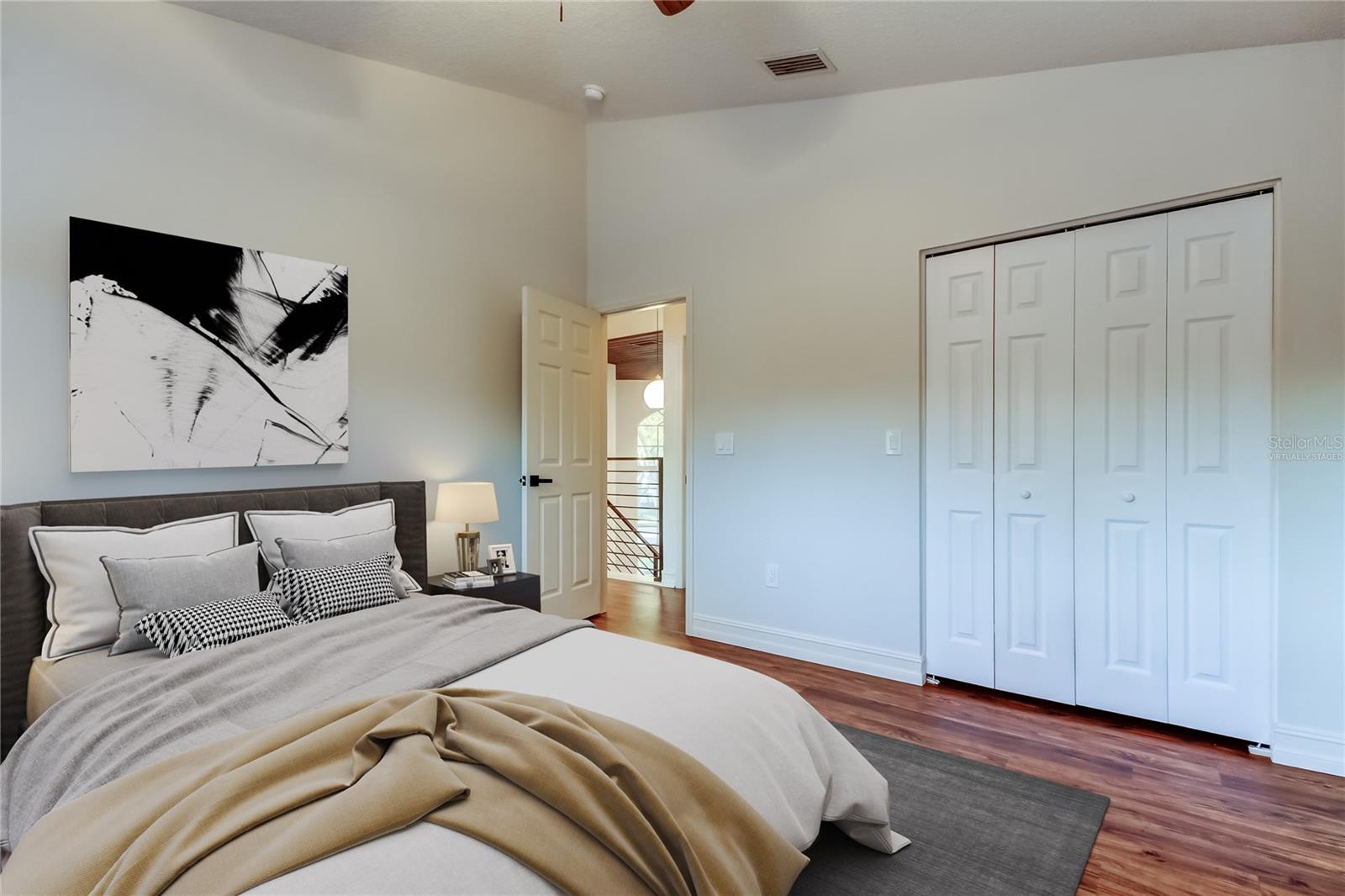One or more photo(s) has been virtually staged. Welcome to this beautifully remodeled pool home in the highly sought-after, gated community of Hunter's Green, where the moment you walk in, you feel the difference. The grand entryway delivers an immediate wow factor with soaring two-story ceilings, a striking statement chandelier, and a warm wood-accented ceiling that sets the tone from the start. Elegant double doors and oversized windows flood the space with natural light, while the modern cable-style staircase railing adds a sleek, architectural touch and open sightlines through to the living areas and pool beyond. Offering 5 bedrooms and 2.5 baths, this home provides a spacious and thoughtfully designed layout ideal for both everyday living and entertaining. Light-filled rooms, open living spaces, and timeless finishes create a comfortable yet elevated feel throughout. The heart of the home is the fully upgraded kitchen, featuring quartz countertops, updated cabinetry, stainless steel appliances, and a wide-open flow into the living and dining areas - perfect for gathering family and friends. Formal living and dining rooms offer flexibility for special occasions, while the family room fireplace creates a cozy place to unwind. Step outside to your private screened-in pool with a freshly resurfaced pool deck (2025), creating a true Florida retreat for relaxing or entertaining year-round. The home also includes a timed and zoned sprinkler system covering the entire lot, along with a garage for added convenience and storage. Additional upgrades include a roof replaced in 2019, a newer water heater, updated plumbing fixtures including low-flow toilets and shower valves, luxury vinyl plank flooring throughout, fresh interior paint, new exterior paint (2025), and updated lighting, outlets, and switches - offering energy efficiency, peace of mind, and a home that has clearly been well cared for. Located within Hunter's Green, residents enjoy 24/7 manned security, walking and biking trails, parks, playgrounds, and beautifully maintained surroundings. Optional country club memberships provide access to golf, tennis, fitness, and social amenities, with shopping, dining, and major roadways just minutes away. This move-in-ready home brings together space, style, and community charm - the kind of place that feels like home the moment you step inside.