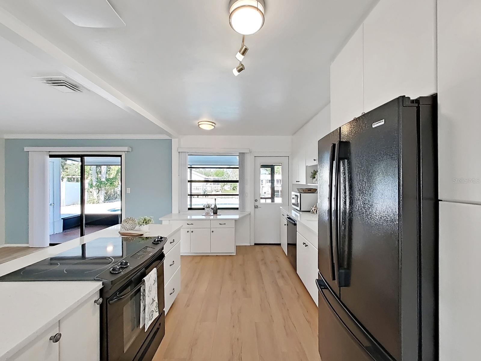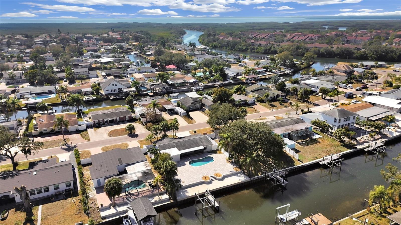 Waterfront retreat in Tampa Shores/Imperial Key! Come catch the cool, coastal vibe in this charming 3-bedroom, 2-bathroom, POOL home, offering the perfect blend of comfort, style, and Florida living. Situated on a picturesque canal with approximately 76 feet of seawall waterfrontage, DOCK with electric, 7,000 LB BOAT LIFT with NEW MOTORS, DIRECT SALTWATER ACCESS to Tampa Bay & The Gulf, and multiple outdoor living areas, this home invites you to LIVE EVERY DAY like you’re on VACATION. Step inside and you’ll immediately feel the spacious and airy open flow. NEW easy-care wood laminate FLOORING throughout most of the home! The updated kitchen features QUARTZ countertops, cabinetry with pull out shelves and drawers, food pantry, and an oversized peninsula ideal for entertaining. Enjoy true Florida living from the rear breezy screened lanai overlooking your sparkling saltwater pool, expansive paver deck, and dedicated fire-pit area, all set against wide views of the tranquil saltwater canal. Experience the occasional playful charm of dolphins & manatees. Cast a line from your backyard seawall and dock or launch from your personal boat lift. Quick and easy access to the open bay by boat or kayak, perfect for boaters and sunset chasers alike. This waterfront paradise offers endless opportunities for outdoor enjoyment! Back inside, the primary suite features sliding glass doors to the lanai and a remodeled ensuite bath with double sinks, step-in shower, and Kohler toilet. Two additional bedrooms and a full updated bath with custom vanity ensure plenty of space for everyone. The double driveway and oversized 1-Car Garage, with pull-down stairs for attic access, provide plenty of parking and storage, plus a backyard 10x12 Storage Shed for tools, toys and extra gear. Enjoy peace of mind with a BRAND NEW electrical panel, two NEWER IMPACT-RATED steel exterior doors, water line re-pipe, and an updated seawall. Great ADDITIONAL FEATURES include: Cultured marble finishes in both baths delivering high style yet low maintenance, comfort height toilets, laundry room with utility sink, washer & dryer pair with matching premium laundry pedestals (with storage drawers) all included, multiple interior closets for storage (including walk-in), new exterior paint, new exterior lighting, and renovated lanai with modern lighting. Tampa Shores is a waterfront community, offering neighborhood social activities & boat ramp for residents. No HOA. Short-term rentals allowed (within county & state regulations). Convenient to airport, grocery & shopping (including Target & Publix), beaches, & just a boat ride away to popular restaurants. Whether for your personal home or as an income-producing property, this is Florida living at its best: boating, entertaining, and relaxing waterside, right from your own backyard. Your paradise is waiting!