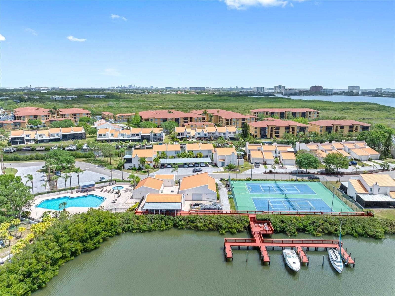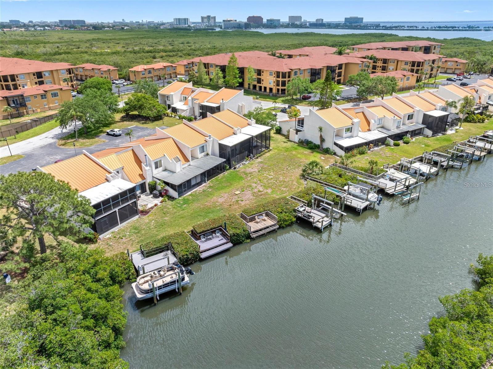 WATERFRONT 3 bedroom, 2.5 baths, 2 car garage townhome. You will have your own private dock with a lift right outside your back door with Direct Bay access!!! If you decide you want to take the boat over to Bahama Breeze or Whiskey Joe's for lunch or dinner, No problem! Want to go watch the dolphins playing during the sunset, No problem! Or, you can just sit on the dock and see the manatees. Or, watch the birds from your large covered screen enclosed back porch/outdoor living area with sunset views. You can enjoy boating and kayaking right from your back door. The inside of your new townhome has been beautifully remodeled with both style and comfort in mind. Downstairs has new wood look tile flooring, decorative light fixtures and 2 sets of sliding glass doors that open to the spacious porch with water and sunset views. You will love cooking in this chefs kitchen with new stainless appliances, stone counter tops and beautiful views outside. There is a coffee bar area, pantry and sliding doors that take you to the outdoor breakfast atrium. The living area is all open and a great area for entertaining. The dining room has plenty of room for a large table and has a breakfast bar. There is a half bath downstairs with a full size washer and dryer and a huge walk in storage area. Upstairs there are two nice sized bedrooms with views of the water. They share a full bath with a tub/shower combo. The primary bedroom is plenty big with a barn door walk in closet and a full en-suite bathroom. There is a balcony that looks down to the atrium /breakfast area. There is a 2 car garage, with plenty of room for your toys, stuff or cars. Maintenance free exterior except for plant bed by the entry, front porch and back screened porch area. Close to Tampa International Airport, Several Malls and Restaurants. Not far from Great Beaches, Professional Sports Teams, Concert Venues and Theme Parks. Maintenance fee includes all of the following: high speed internet, 200 cable channels, flood insurance, exterior maintenance for grounds and buildings, 2 clubhouse (one waterfront with a bar and fireplace and one with a pool table and small gym area), pool, tennis and pickle ball courts and trash removal. There is also a boat dock by the clubhouse if you are out boating and want to stop by the pool for a quick swim. There is a fenced trailer storage area available for a nominal monthly fee. You may have two pets here, dogs or cats. Contact HOA to determine size and breed restrictions. This home offers all of the best things Tampa Bay Living has to offer! Furnishings are negotiable.