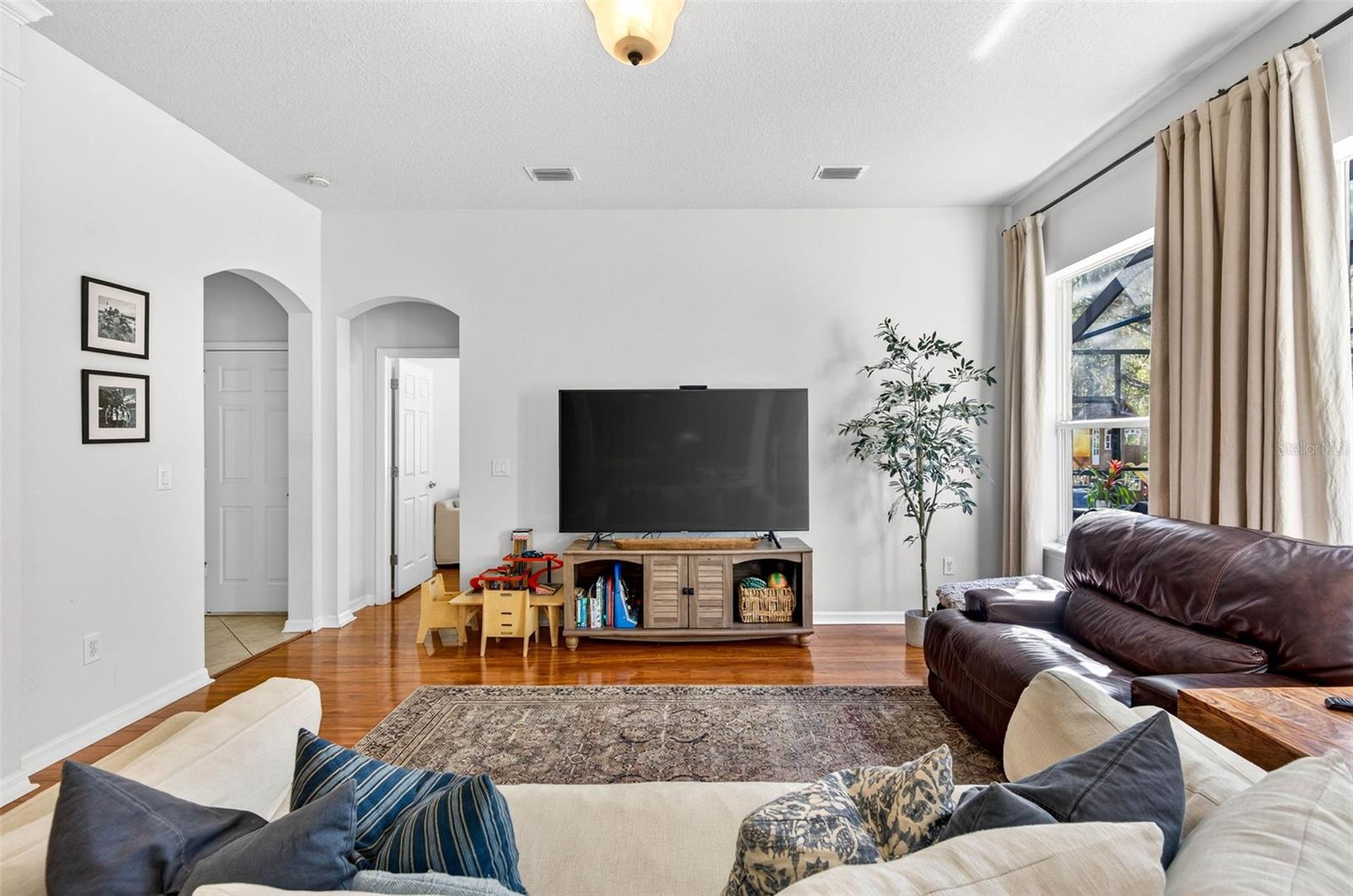 Fall in love with the Tampa Palms lifestyle in Buckingham, a gated neighborhood known for its pride of ownership and welcoming atmosphere. Peacefully situated on a quiet cul-de-sac with a beautiful conservation view, this warm and welcoming 4BR/3.5BA home offers 3,070 SF and a thoughtful layout that flows beautifully—bright, open, and made for everyday living and entertaining. Enjoy 10’ ceilings throughout the main level, an open kitchen overlooking the spacious family room with an airy, light-filled feel and conservation views. The main-level owner’s suite is a true retreat, featuring abundant natural light and a gorgeous view of the pool and conservation, plus a spacious, sun-filled bath. Step outside to your own retreat, enhanced by a serene conservation setting: a new, resort-style saltwater pool + spa, both screened and heated, complete with a child safety fence and a covered lanai area for relaxing, dining, and making memories year-round—plus a convenient pool half bath. Inside, you’ll find wood cabinetry, granite counters, stainless appliances, and a gas range, along with major updates including a 2022 roof and two HVAC systems (2020 & 2024). Ideally located near I-75, USF, Moffitt, shopping, dining, and miles of trails at Flatwoods Conservation Park.This is a special home — schedule your private showing and discover the comfort, privacy, and lifestyle that will help you create beautiful everyday moments and lasting memories