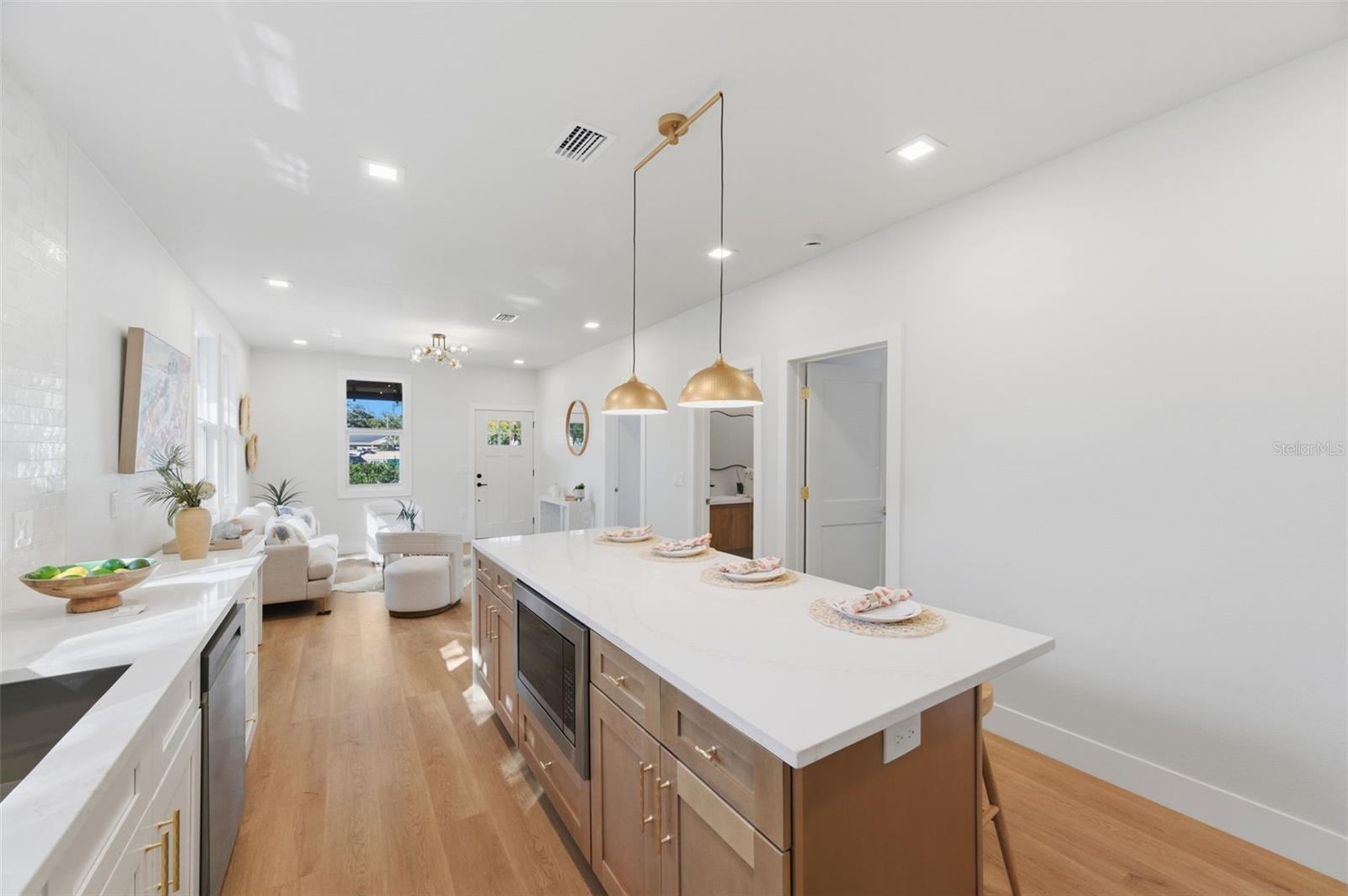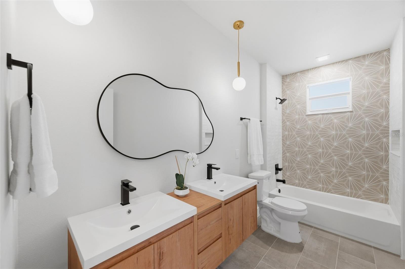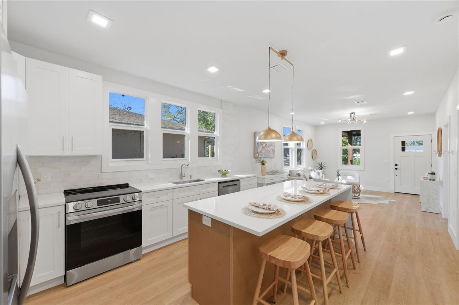 If you’ve been searching for new construction without the wait, this is it, this home is that NEW! Located in Tampa Heights, just minutes from downtown Tampa, Armature Works, and the Riverwalk, this home offers the best of urban living in one of Tampa’s most sought-after neighborhoods! 309 E Selma is a fully reimagined 1930’s bungalow blending elevated design with true top to bottom construction quality. This home was taken down to the studs and rebuilt with intention, offering the comfort and confidence of new construction. All major systems are BRAND NEW, including a full electrical rewire with a 200 amp panel, new plumbing throughout, a new HVAC system with updated ductwork, a new water heater, impact rated hurricane windows, and a brand new roof! The exterior makes an immediate statement with new siding, fresh paint, a rebuilt front porch with wood decking and a custom front door finished in Urbane Bronze with modern hardware. Inside, the layout was redesigned for flow and functionality. New framing, sub-flooring, drywall, solid core shaker doors, wide baseboards, and luxury vinyl plank flooring create a clean, modern foundation. The kitchen was completely relocated and rebuilt with soft close cabinetry, quartz countertops, a large waterfall island, full height tile backsplash, designer lighting, and all new appliances. The primary suite features a spa inspired bath with custom tile, rainfall shower, brushed gold fixtures, double vanity, and layered lighting. The two additional bedrooms are generously sized, offering flexibility for family, guests, or hobbies, while one is perfectly suited as a home office, filled with abundant natural light to create a bright and inspiring workspace. The guest bath continues the design with a floating vanity, modern fixtures, sculptural tile, and a soaking tub. A dedicated laundry room, fully plumbed for a washer and dryer, leads directly to the massive fenced backyard, featuring a brand-new wood fence and freshly laid sod for a clean, move-in-ready outdoor space. This home is situated amid transformative growth in Tampa Heights, including the large-scale Robles Park Village redevelopment, a major mixed-income, mixed-use project that will bring new housing, walkable retail such as a neighborhood grocery store, cafés, boutiques, and wellness businesses, along with community amenities and public green spaces, further enhancing the neighborhood’s vibrancy and long-term appeal. Whether you’re a first-time homebuyer, looking for a move-in-ready investment, or dreaming of a spacious backyard for your dog to run and entertain, this thoughtfully rebuilt home checks every box and opportunities like this in Tampa Heights don’t last long!
