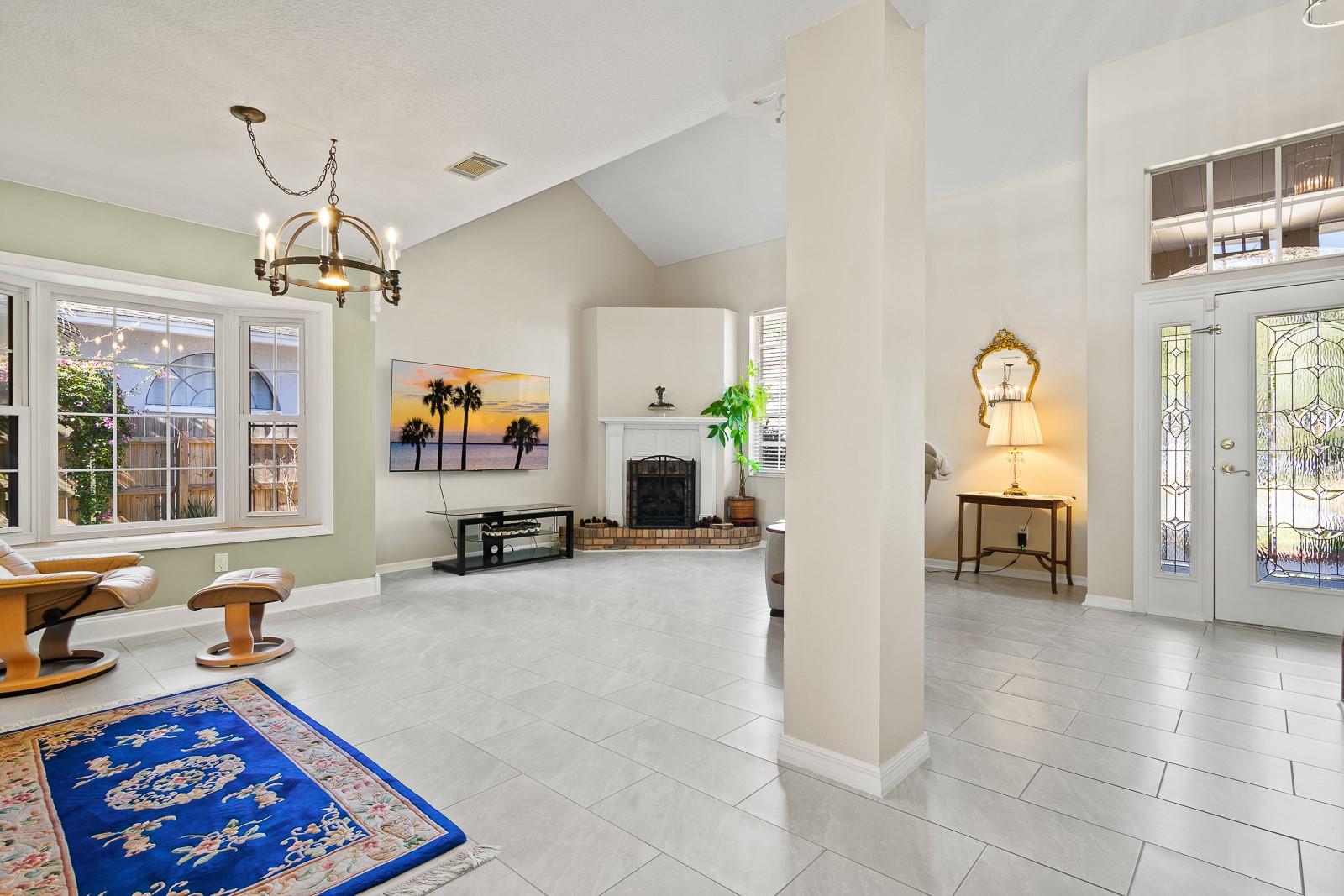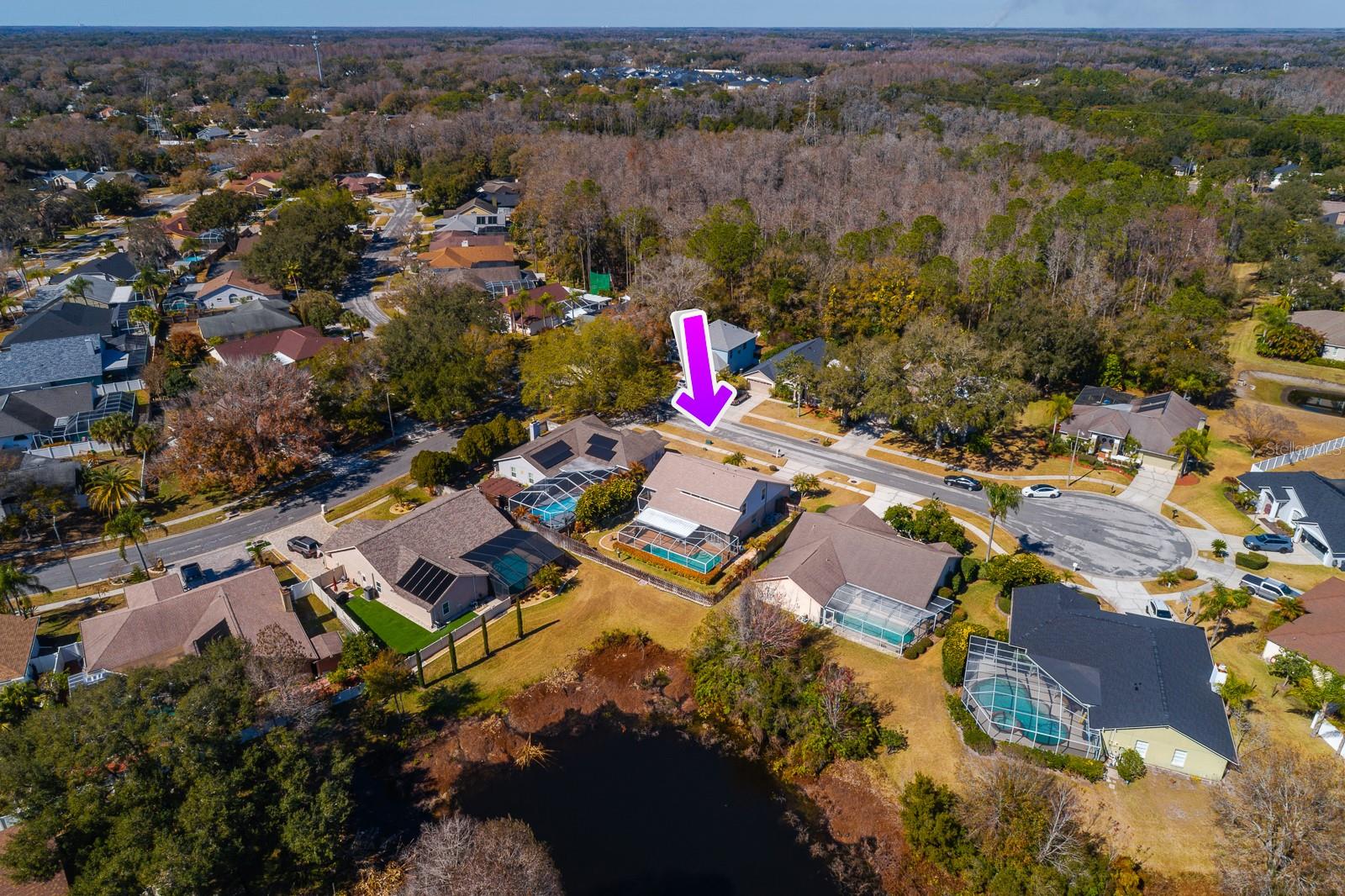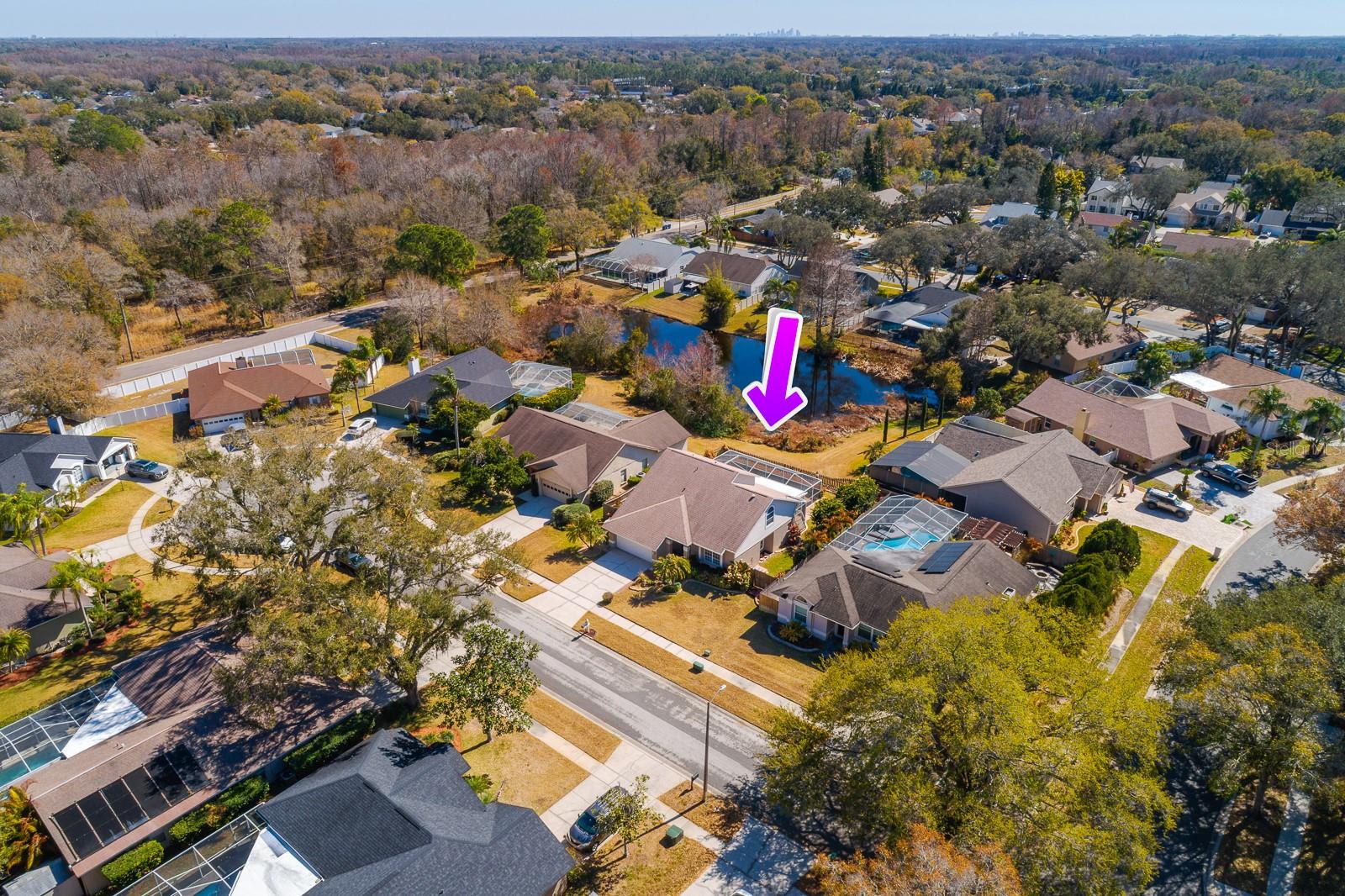 One or more photo(s) has been virtually staged. Welcome to this thoughtfully upgraded 4-bedroom, 2.5-bath home offering the perfect blend of comfort, style, and everyday convenience. Located in Cumberland Manors, a quiet, family-friendly community with very low HOA fees, this 2,101 sq ft residence delivers easy access to the Veterans Expressway and is just minutes from shopping, dining, parks, and top-rated schools. Inside, you’ll find brand-new flooring, fresh interior and exterior paint, and a bright, contemporary layout ideal for both daily living and entertaining. The formal living room features a vaulted ceiling and gas fireplace, creating a warm and inviting focal point. A separate dining room and convenient powder bath enhance the home’s functionality. The spacious kitchen offers granite countertops, abundant cabinetry, a closet pantry, and an island with breakfast bar seating. It opens seamlessly to the family room, making it the perfect gathering space. The downstairs primary suite is a true retreat, complete with crown and chair molding, plantation shutters, a walk-in closet upgraded with a California Closet system, and peaceful views of the water. The en-suite bath includes dual sinks, a walk-in shower, and a relaxing garden tub. Upstairs, three additional bedrooms, a loft, and an updated guest bath provide flexible space for family, guests, or a home office. Significant updates offer peace of mind, including a 2022 roof, new exterior siding, new fencing, and a new sprinkler system to maintain the lush landscaping. The pool pump and chlorinator were replaced in 2023, ensuring the sparkling pool is ready for year-round enjoyment. Step outside to your private oasis featuring a screened-in pool area, covered patio, and tranquil pond views—an ideal setting for relaxing, entertaining, or simply enjoying Florida living at its best.