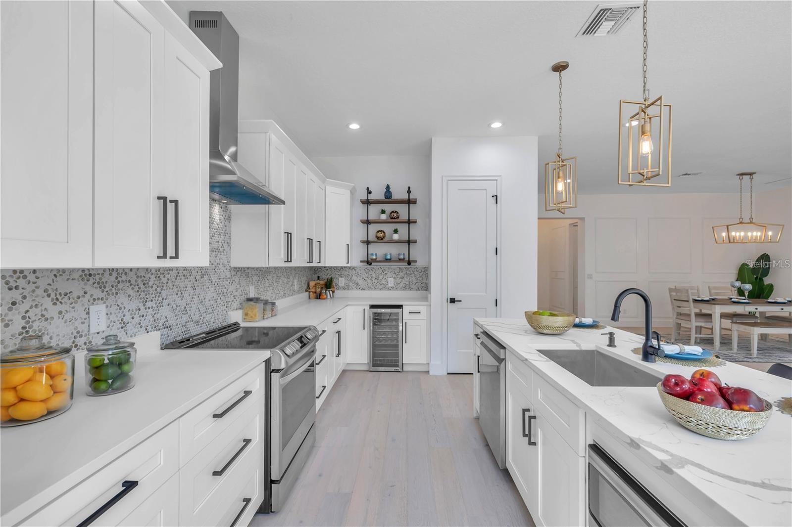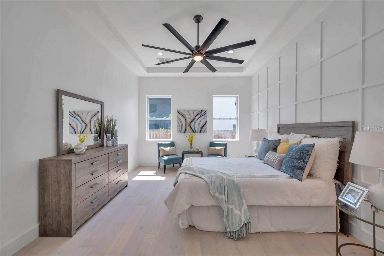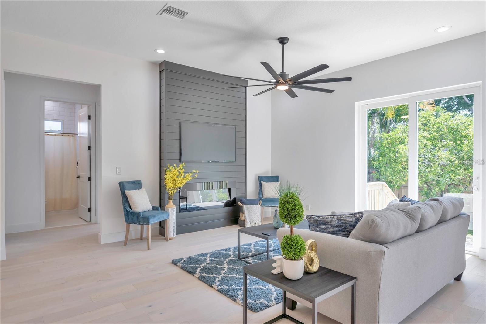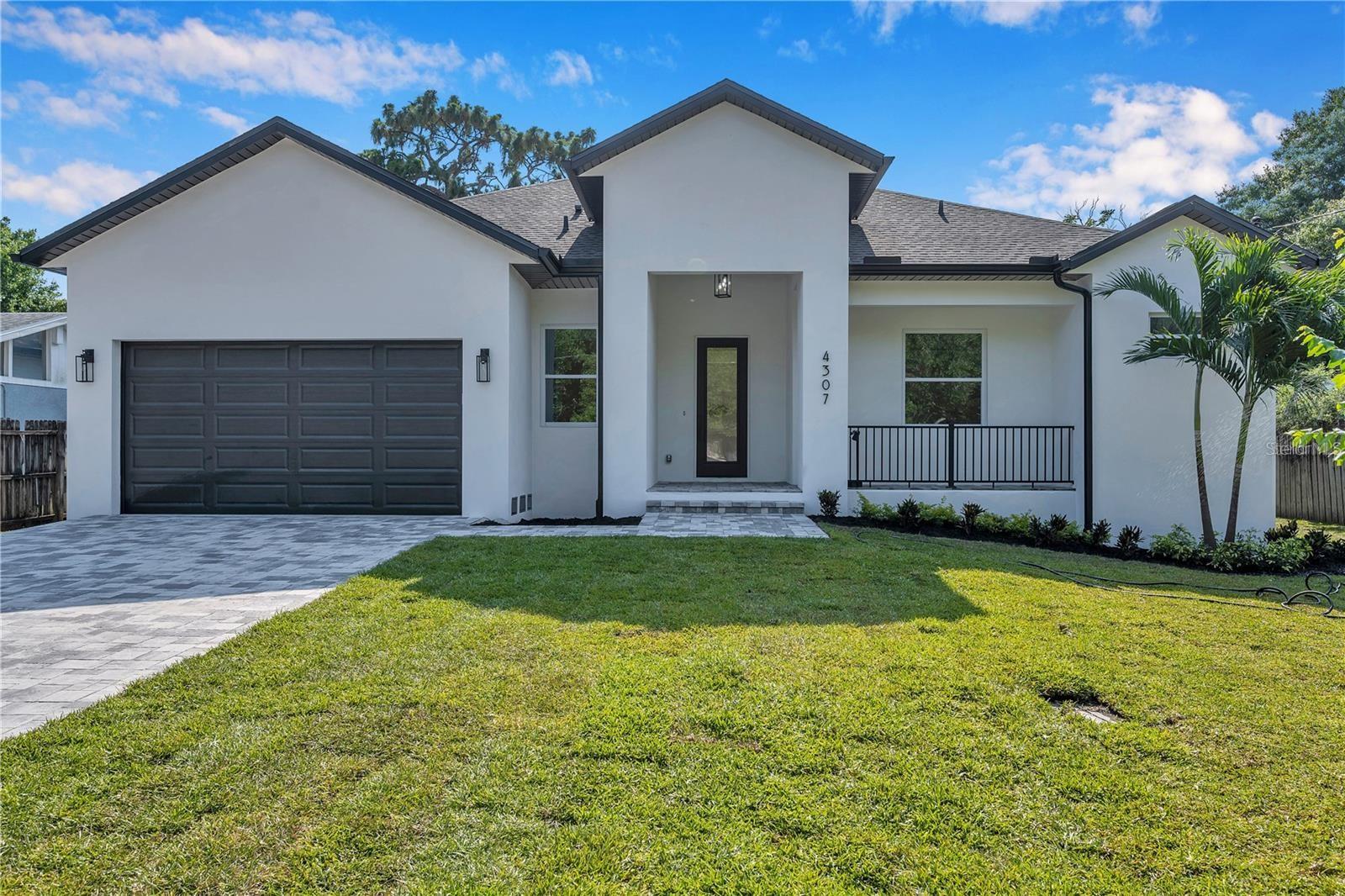 Custom built 4 bed/2.5 bath, 2 car garage home offering approximately 2,200 square feet of beautifully designed living space in the highly sought after Manhattan Manor area of S.Tampa. Built in 2021 with exceptional care, craftsmanship, and attention to detail, this one story residence combines timeless elegance with thoughtful upgrades that make everyday living feel special. From the moment you arrive, the oversized paver driveway and inviting front porch set a warm and welcoming tone. Step inside to a soaring 13 foot foyer that makes an unforgettable first impression. The home opens to 10 foot ceilings, custom trim work, 6 inch baseboards, solid core doors, and rich wide plank hardwood floors that run throughout, creating a seamless and elevated feel. Designed with connection in mind, the open concept floor plan offers generous space for gathering and entertaining. The heart of the home is the stunning kitchen, where shaker style cabinetry with crown molding, decorative shelving, custom lighting, and a wine fridge blend beauty with function. The 8 foot island with Calcutta quartz waterfall edge invites friends and family to pull up a seat, while the LG stainless steel appliance package makes hosting effortless. Flowing naturally from the kitchen, the family room is both cozy and refined, highlighted by a shiplap feature wall with a 50 inch electric fireplace and a 72 inch ceiling fan. The dining area glows under a designer chandelier, creating the perfect backdrop for holidays, celebrations, and everyday dinners. The thoughtfully designed split bedroom layout provides privacy and flexibility. Two spacious secondary bedrooms with wall to wall closets share a well appointed bath, while the fourth bedroom at the front of the home is ideal as a guest room or a bright, inspiring office. A conveniently placed half bath serves guests with ease. The primary suite is a true retreat, offering tray ceilings, a custom trim accent wall, recessed lighting, and two oversized walk in closets with custom real wood shelving. The spa inspired primary bath feels like a private sanctuary, featuring porcelain tile that extends up the walls, dual vanities, a freestanding garden tub, and a separate marble shower with frameless glass enclosure, dual shower heads, and a rain head for a luxurious daily escape. Even the laundry room has been thoughtfully finished with decorative tile, built in cabinetry, and a laundry tub to make everyday tasks more enjoyable. Since completion, the homeowners have invested meaningful enhancements that elevate both comfort and peace of mind. Enjoy an extended rear paver patio perfect for outdoor gatherings, PVC privacy fencing, a full irrigation system, roller blinds, washer and dryer, a comprehensive security system with front, rear, and doorbell cameras, and flood lights installed on all four corners of the home. Additional features include spray foam insulation for energy efficiency, Low E impact windows and doors, Sherwin Williams paint, modern door handles, and Delta and Moen plumbing fixtures. Exterior highlights include a 50 year roof warranty with peel and stick underlayment, sand finish stucco, gutters, lush landscaping with sod, and a rear paver landing pad. Ideally located near a brand new high tech magnet school serving K through 8, this exceptional South Tampa home offers not just beautiful design, but a place to truly live, gather, and create lasting memories in one of the area’s most desirable neighborhoods.
