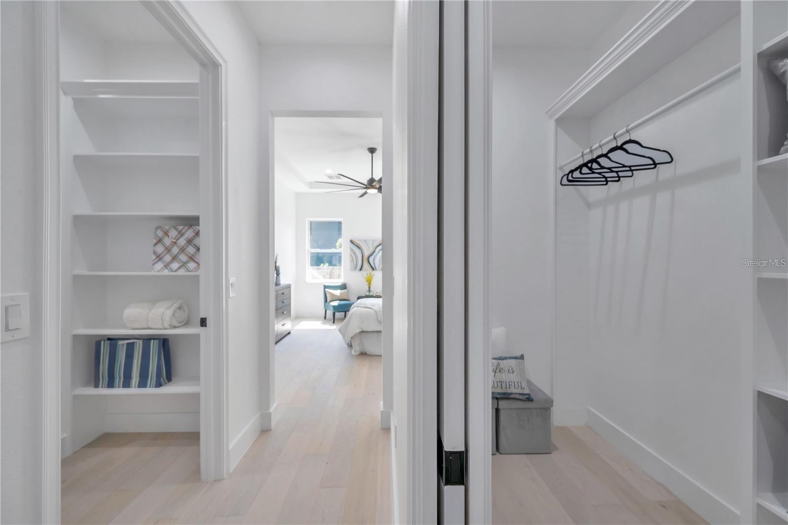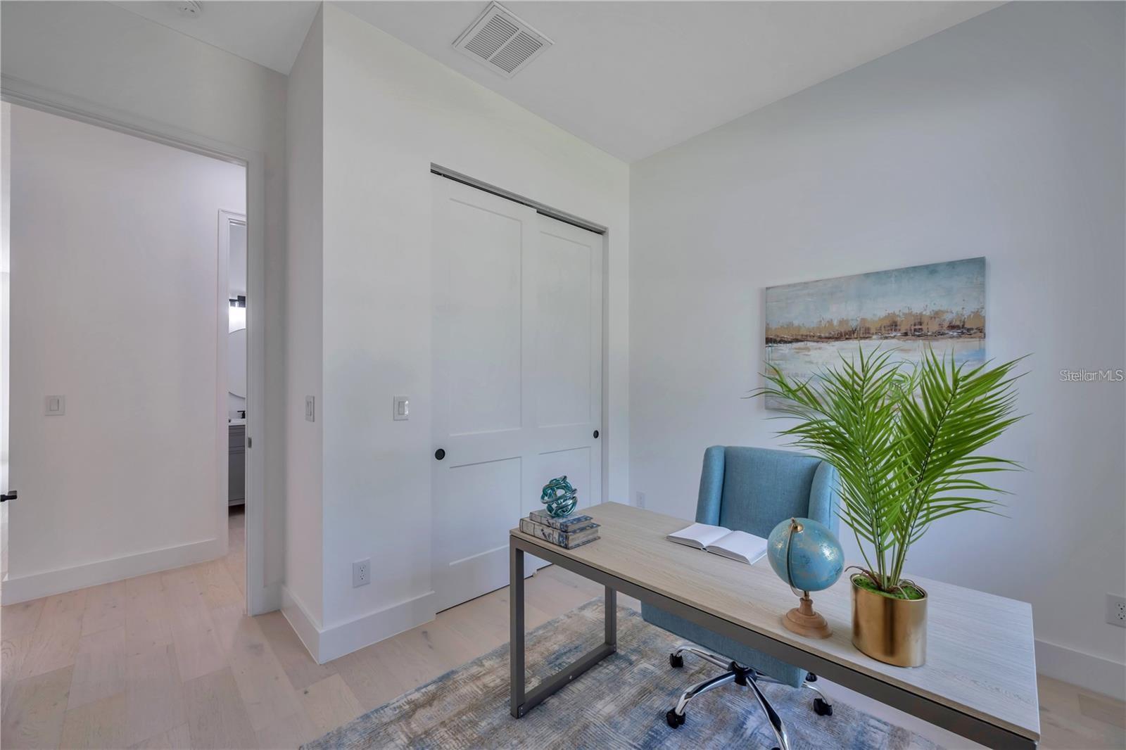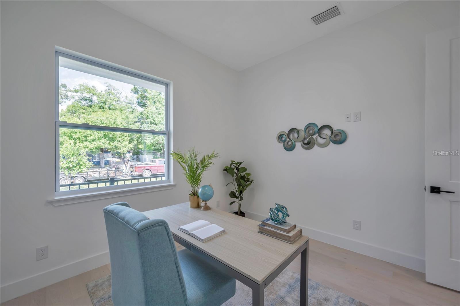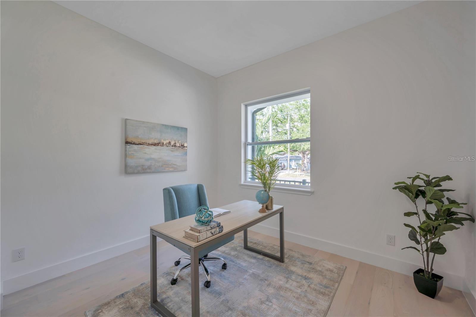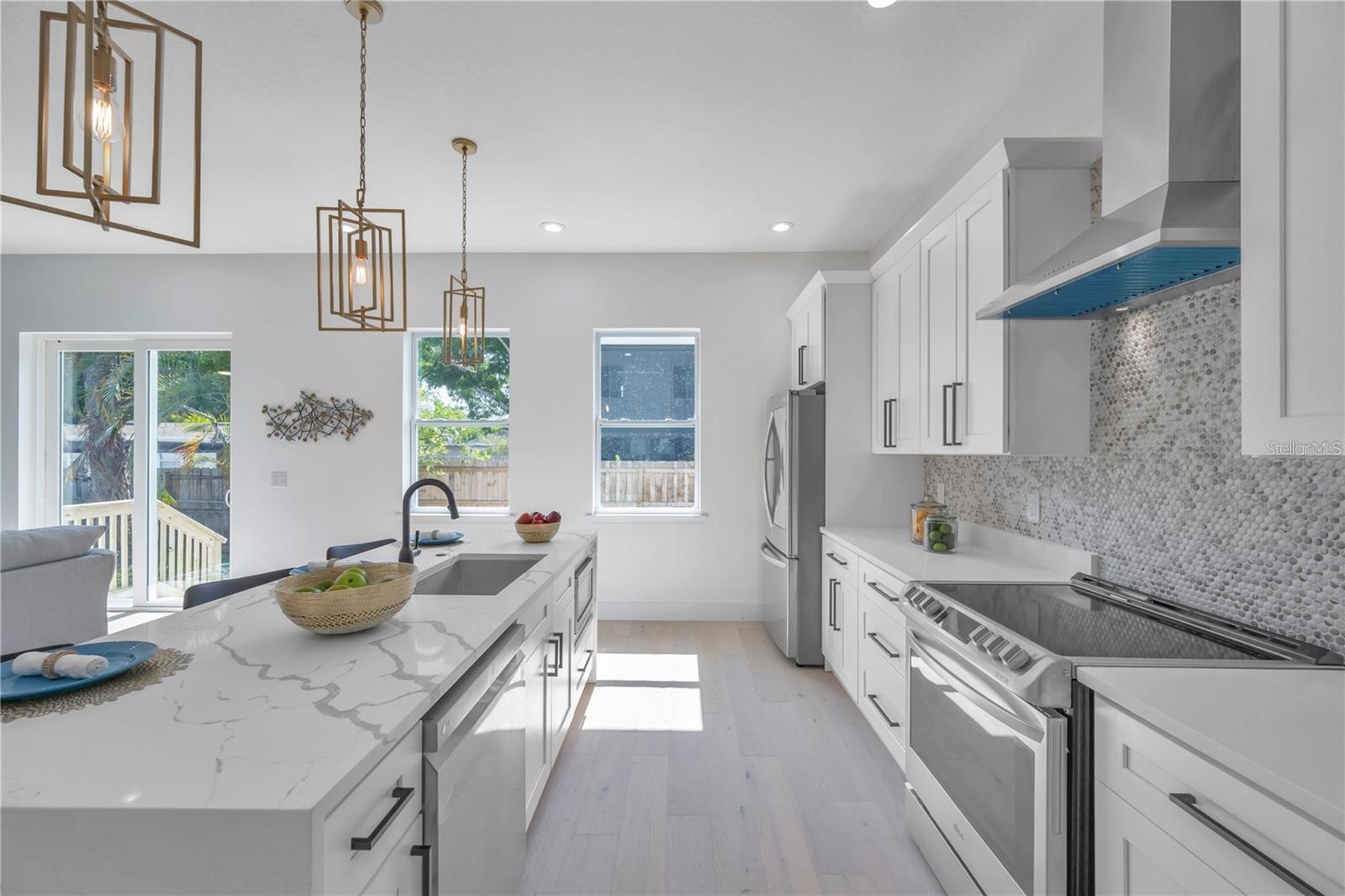 Custom built 4 bed/2.5 bath, 2 car garage home offering approximately 2,200 square feet of beautifully designed living space in the highly sought after Manhattan Manor area of S.Tampa. Built in 2021 with exceptional care, craftsmanship, and attention to detail, this one story residence combines timeless elegance with thoughtful upgrades that make everyday living feel special. From the moment you arrive, the oversized paver driveway and inviting front porch set a warm and welcoming tone. Step inside to a soaring 13 foot foyer that makes an unforgettable first impression. The home opens to 10 foot ceilings, custom trim work, 6 inch baseboards, solid core doors, and rich wide plank hardwood floors that run throughout, creating a seamless and elevated feel. Designed with connection in mind, the open concept floor plan offers generous space for gathering and entertaining. The heart of the home is the stunning kitchen, where shaker style cabinetry with crown molding, decorative shelving, custom lighting, and a wine fridge blend beauty with function. The 8 foot island with Calcutta quartz waterfall edge invites friends and family to pull up a seat, while the LG stainless steel appliance package makes hosting effortless. Flowing naturally from the kitchen, the family room is both cozy and refined, highlighted by a shiplap feature wall with a 50 inch electric fireplace and a 72 inch ceiling fan. The dining area glows under a designer chandelier, creating the perfect backdrop for holidays, celebrations, and everyday dinners. The thoughtfully designed split bedroom layout provides privacy and flexibility. Two spacious secondary bedrooms with wall to wall closets share a well appointed bath, while the fourth bedroom at the front of the home is ideal as a guest room or a bright, inspiring office. A conveniently placed half bath serves guests with ease. The primary suite is a true retreat, offering tray ceilings, a custom trim accent wall, recessed lighting, and two oversized walk in closets with custom real wood shelving. The spa inspired primary bath feels like a private sanctuary, featuring porcelain tile that extends up the walls, dual vanities, a freestanding garden tub, and a separate marble shower with frameless glass enclosure, dual shower heads, and a rain head for a luxurious daily escape. Even the laundry room has been thoughtfully finished with decorative tile, built in cabinetry, and a laundry tub to make everyday tasks more enjoyable. Since completion, the homeowners have invested meaningful enhancements that elevate both comfort and peace of mind. Enjoy an extended rear paver patio perfect for outdoor gatherings, PVC privacy fencing, a full irrigation system, roller blinds, washer and dryer, a comprehensive security system with front, rear, and doorbell cameras, and flood lights installed on all four corners of the home. Additional features include spray foam insulation for energy efficiency, Low E impact windows and doors, Sherwin Williams paint, modern door handles, and Delta and Moen plumbing fixtures. Exterior highlights include a 50 year roof warranty with peel and stick underlayment, sand finish stucco, gutters, lush landscaping with sod, and a rear paver landing pad. Ideally located near a brand new high tech magnet school serving K through 8, this exceptional South Tampa home offers not just beautiful design, but a place to truly live, gather, and create lasting memories in one of the area’s most desirable neighborhoods.