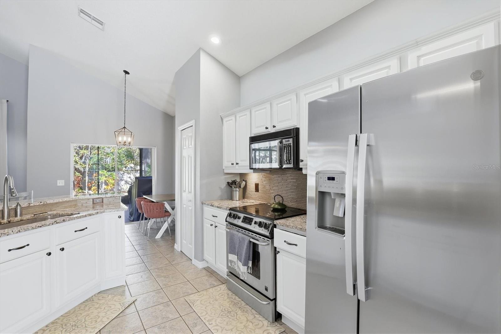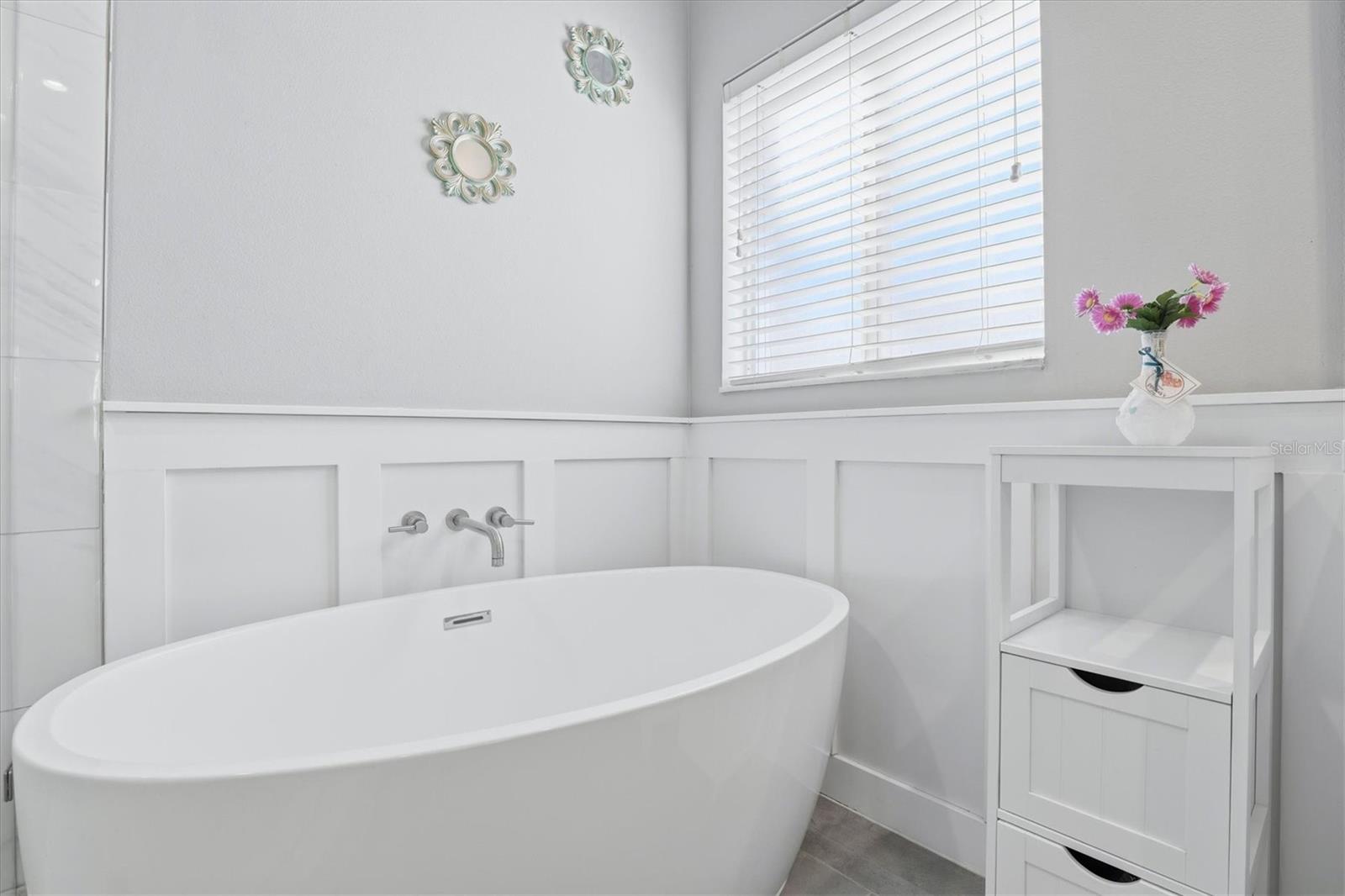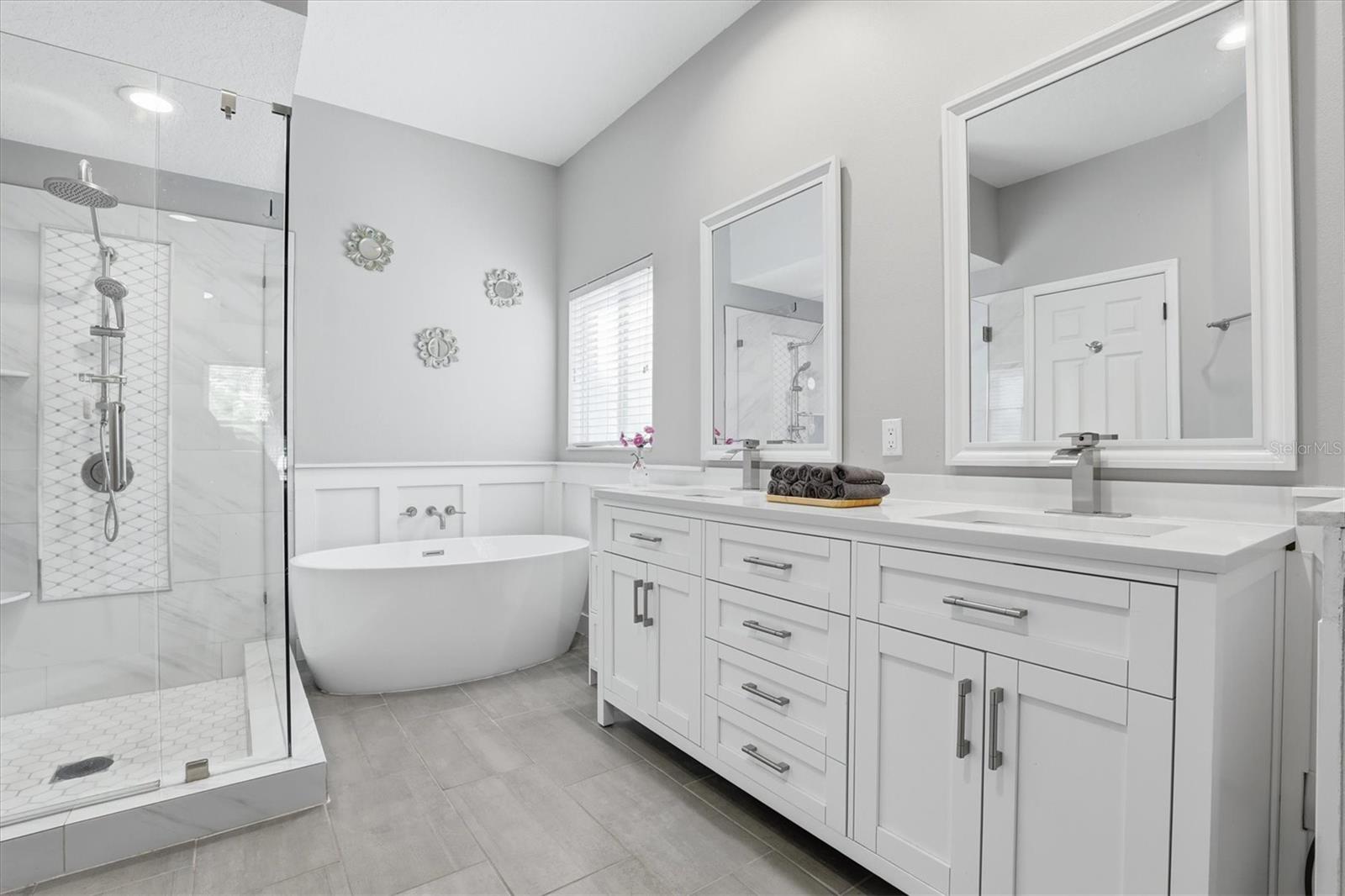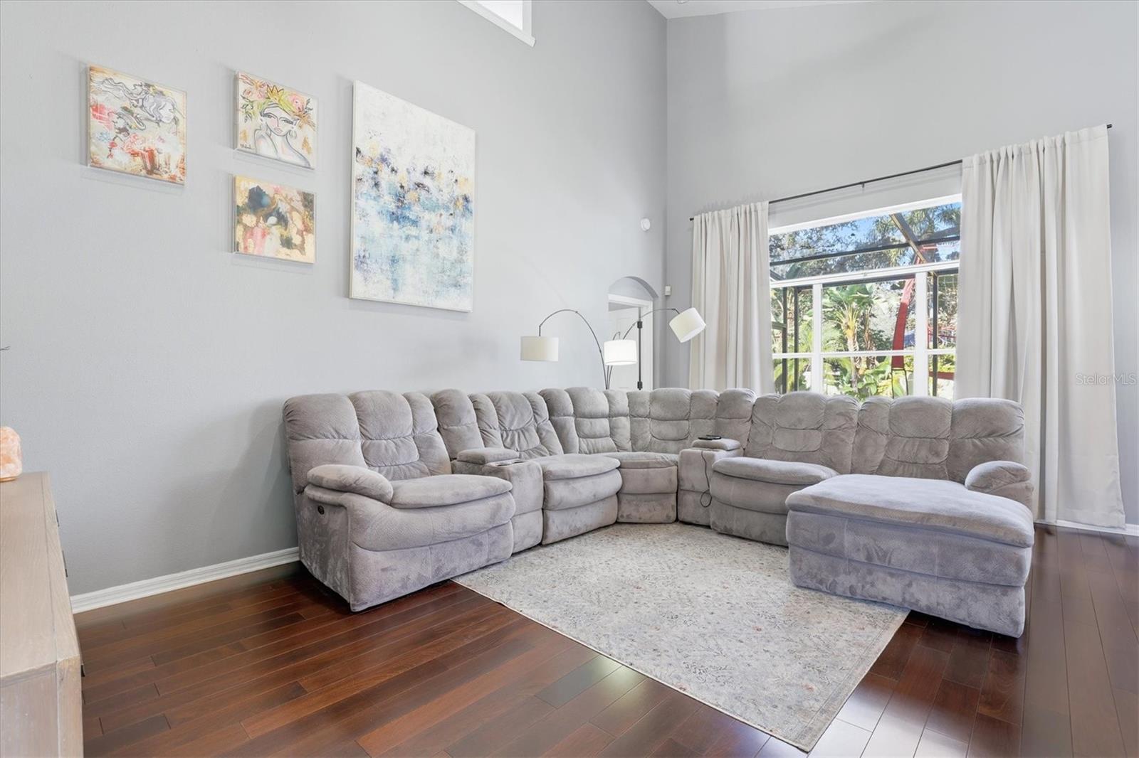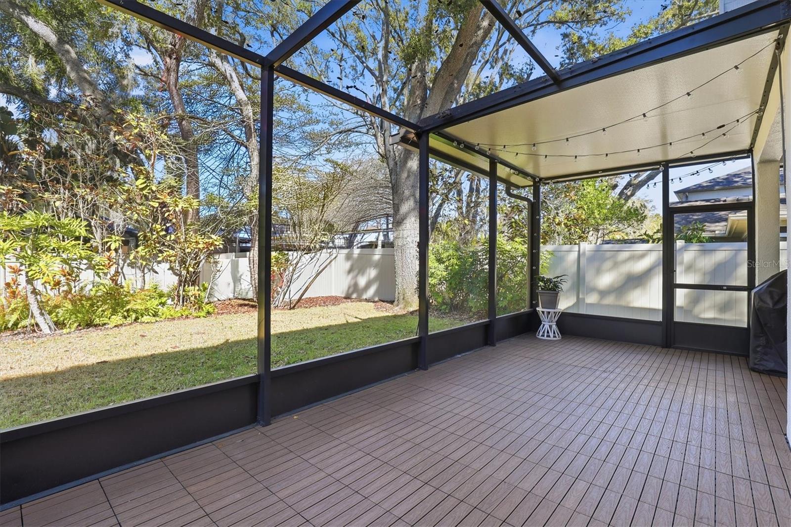 Beautifully curated two-story residence offering 3 bedrooms, 2.5 baths, and 1,922 square feet of elegant, light-filled space. Designed with both sophistication and comfort in mind, the home features an open-concept layout, vaulted ceilings, and an abundance of natural light that enhances the warmth of the Brazilian walnut flooring and tile throughout the main living areas. The chef-inspired kitchen seamlessly anchors the home, showcasing granite countertops, a farmhouse sink, stainless steel appliances, and a generous breakfast bar perfect for entertaining. The living area flows effortlessly from the kitchen, creating an inviting space for gatherings large and small. The primary suite, thoughtfully located on the main floor, serves as a private retreat. The spa-inspired ensuite bathroom features dual vanities, a freestanding soaking tub, and a glass-enclosed walk-in shower with marble flooring. A well-appointed laundry room with custom shelving and a stylish half bath complete the first level. Upstairs, two additional bedrooms, a full bath, and an overlooking loft provide flexible space ideal for a home office, lounge, or media area. Outdoors, enjoy a fenced backyard oasis with a covered, screened-in patio finished with composite tile flooring, surrounded by mature landscaping and shaded oak trees for year-round enjoyment. Nestled within the gated community of Whispering Oaks, this home offers sidewalks, serene surroundings, and a premier location in the heart of Tampa just minutes from Tampa International Airport, International Plaza, Raymond James Stadium, George Steinbrenner Field, Midtown, Downtown Tampa, hospitals, golf courses, shopping, and dining. Schedule your private showing today!