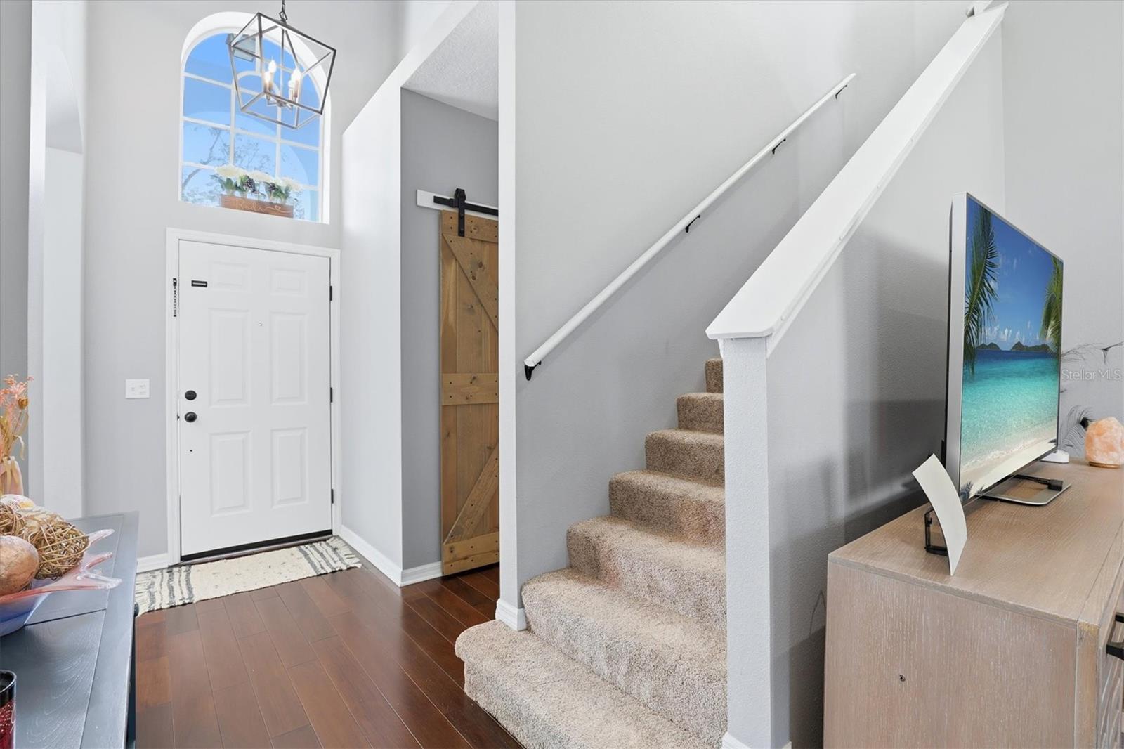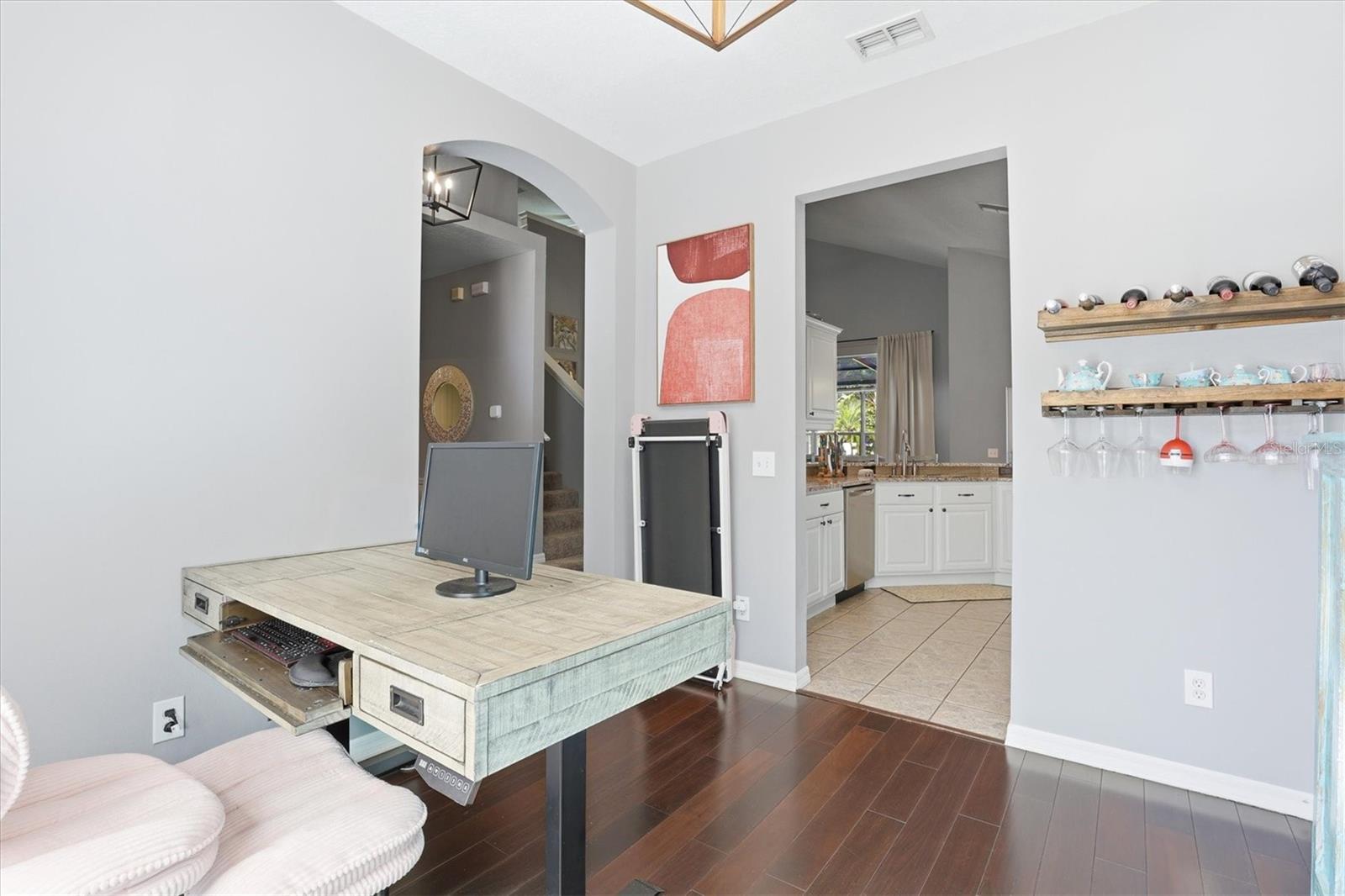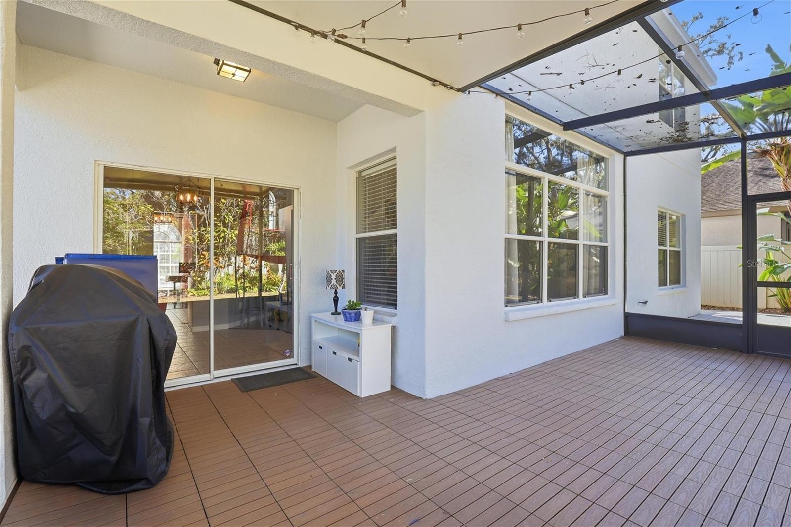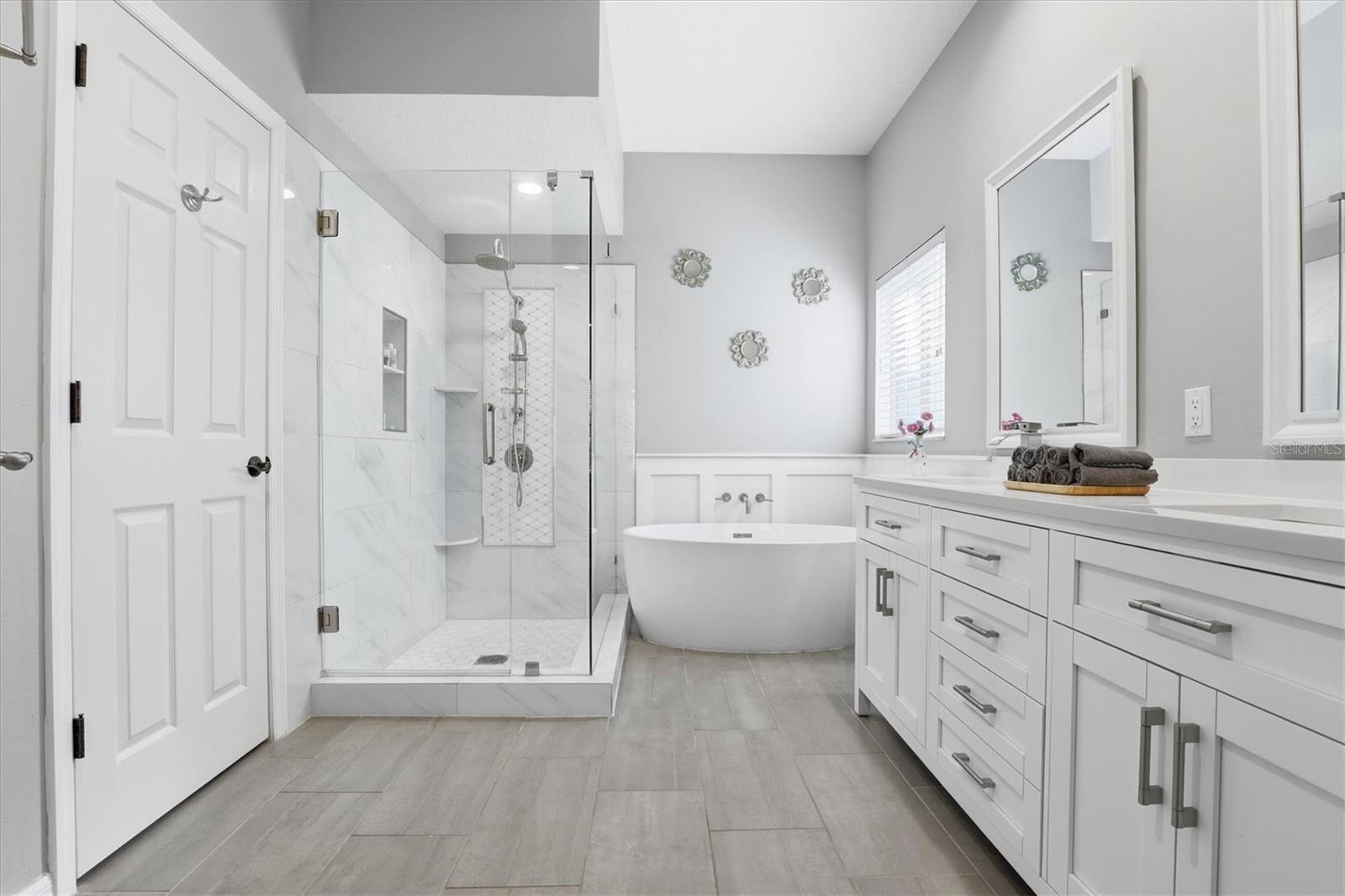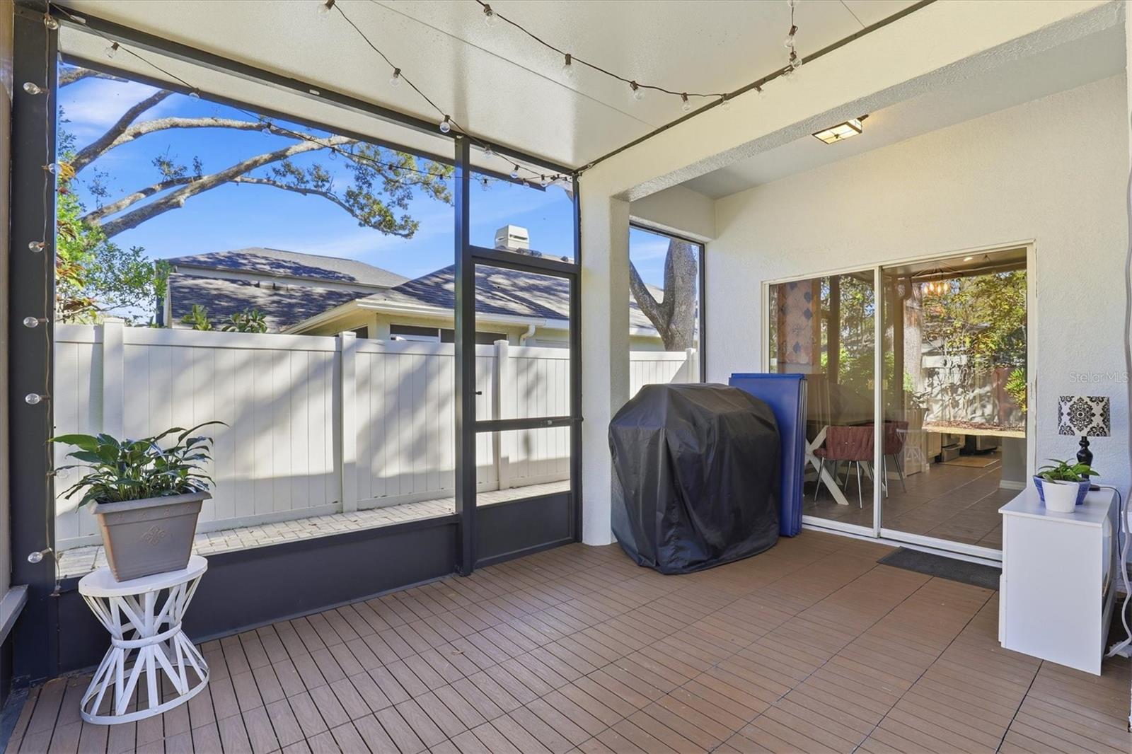 Beautifully curated two-story residence offering 3 bedrooms, 2.5 baths, and 1,922 square feet of elegant, light-filled space. Designed with both sophistication and comfort in mind, the home features an open-concept layout, vaulted ceilings, and an abundance of natural light that enhances the warmth of the Brazilian walnut flooring and tile throughout the main living areas. The chef-inspired kitchen seamlessly anchors the home, showcasing granite countertops, a farmhouse sink, stainless steel appliances, and a generous breakfast bar perfect for entertaining. The living area flows effortlessly from the kitchen, creating an inviting space for gatherings large and small. The primary suite, thoughtfully located on the main floor, serves as a private retreat. The spa-inspired ensuite bathroom features dual vanities, a freestanding soaking tub, and a glass-enclosed walk-in shower with marble flooring. A well-appointed laundry room with custom shelving and a stylish half bath complete the first level. Upstairs, two additional bedrooms, a full bath, and an overlooking loft provide flexible space ideal for a home office, lounge, or media area. Outdoors, enjoy a fenced backyard oasis with a covered, screened-in patio finished with composite tile flooring, surrounded by mature landscaping and shaded oak trees for year-round enjoyment. Nestled within the gated community of Whispering Oaks, this home offers sidewalks, serene surroundings, and a premier location in the heart of Tampa just minutes from Tampa International Airport, International Plaza, Raymond James Stadium, George Steinbrenner Field, Midtown, Downtown Tampa, hospitals, golf courses, shopping, and dining. Schedule your private showing today!