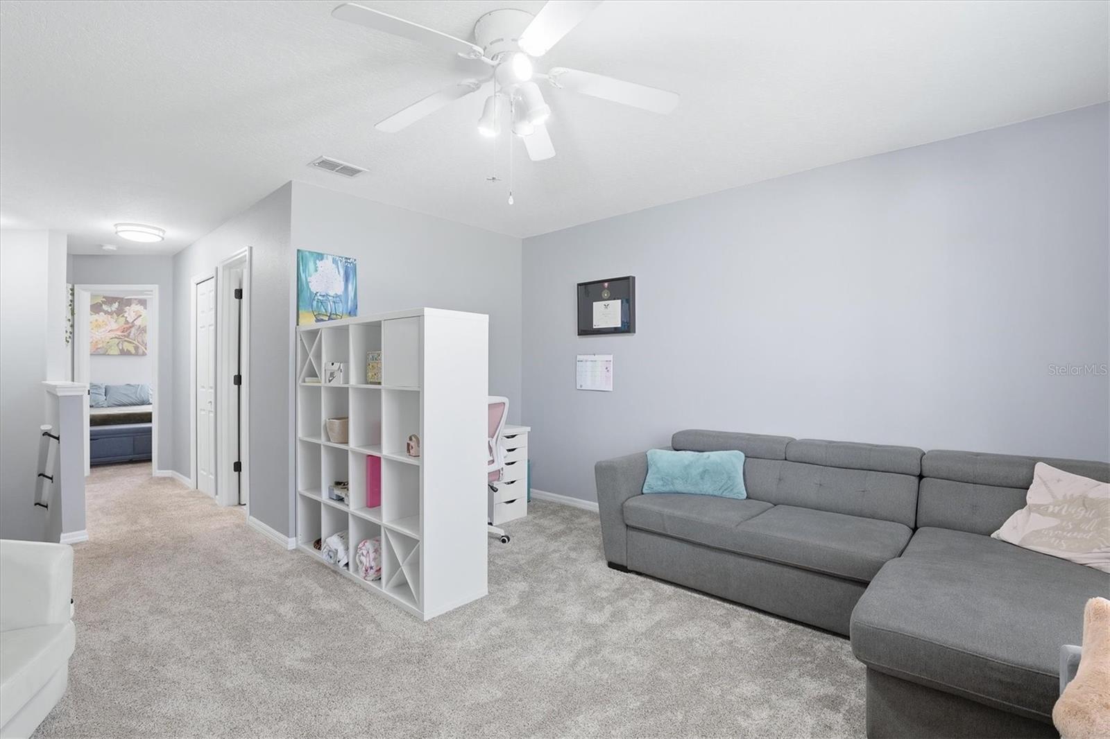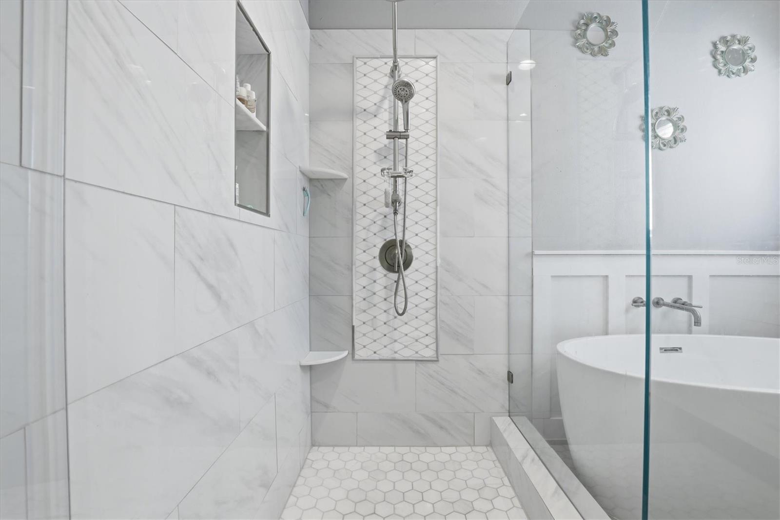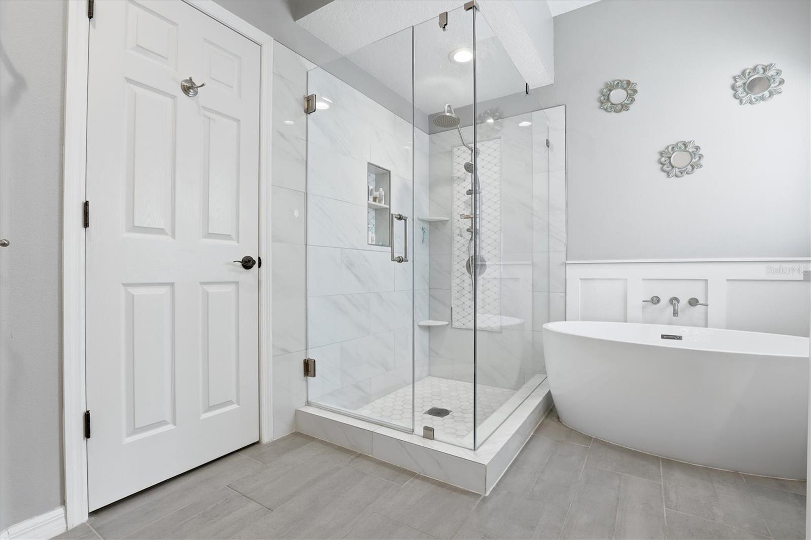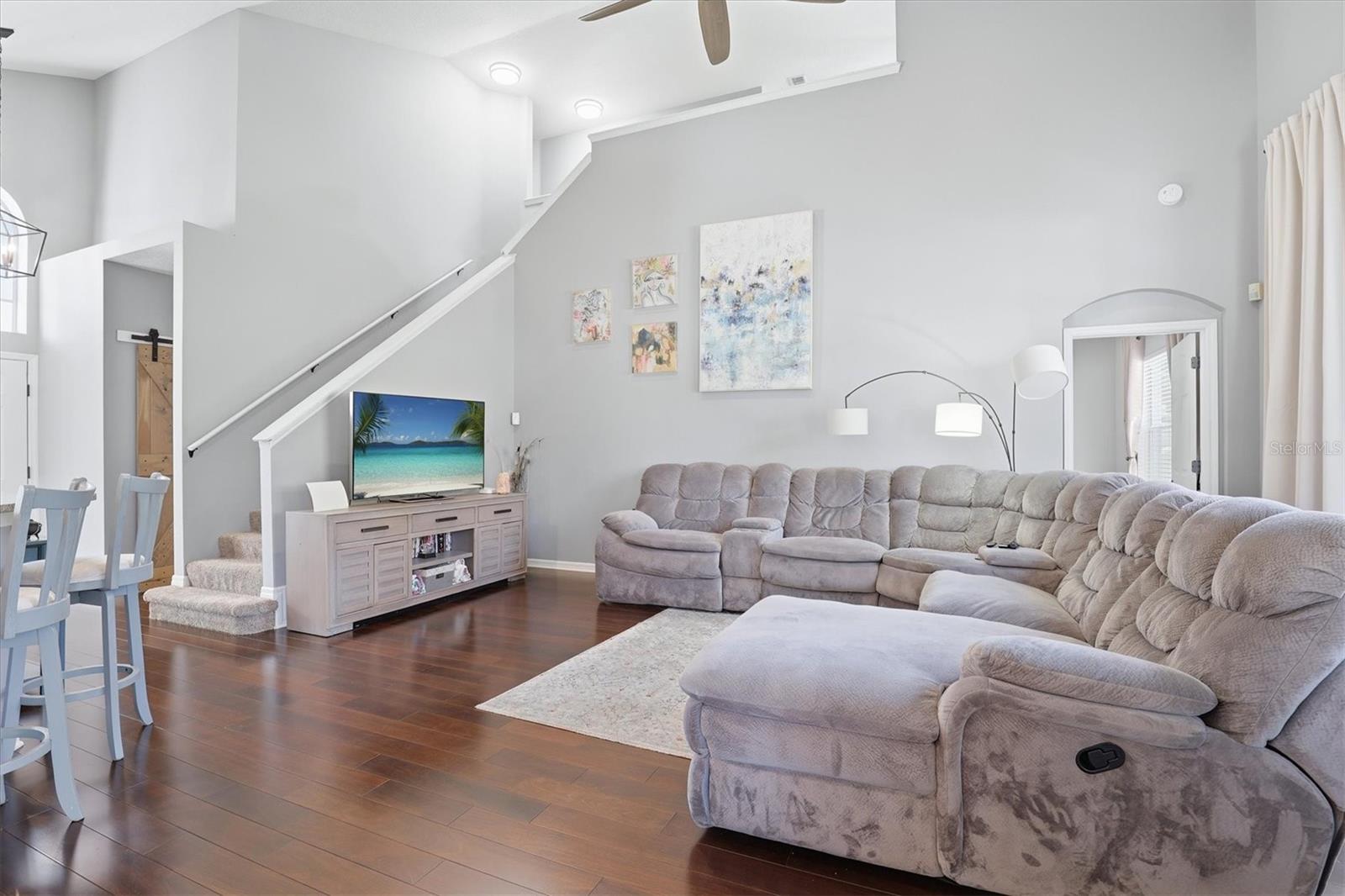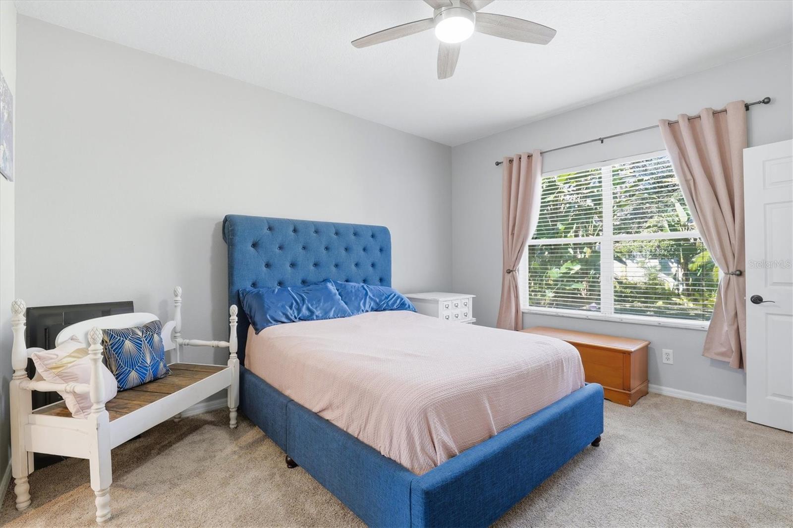 Beautifully curated two-story residence offering 3 bedrooms, 2.5 baths, and 1,922 square feet of elegant, light-filled space. Designed with both sophistication and comfort in mind, the home features an open-concept layout, vaulted ceilings, and an abundance of natural light that enhances the warmth of the Brazilian walnut flooring and tile throughout the main living areas. The chef-inspired kitchen seamlessly anchors the home, showcasing granite countertops, a farmhouse sink, stainless steel appliances, and a generous breakfast bar perfect for entertaining. The living area flows effortlessly from the kitchen, creating an inviting space for gatherings large and small. The primary suite, thoughtfully located on the main floor, serves as a private retreat. The spa-inspired ensuite bathroom features dual vanities, a freestanding soaking tub, and a glass-enclosed walk-in shower with marble flooring. A well-appointed laundry room with custom shelving and a stylish half bath complete the first level. Upstairs, two additional bedrooms, a full bath, and an overlooking loft provide flexible space ideal for a home office, lounge, or media area. Outdoors, enjoy a fenced backyard oasis with a covered, screened-in patio finished with composite tile flooring, surrounded by mature landscaping and shaded oak trees for year-round enjoyment. Nestled within the gated community of Whispering Oaks, this home offers sidewalks, serene surroundings, and a premier location in the heart of Tampa just minutes from Tampa International Airport, International Plaza, Raymond James Stadium, George Steinbrenner Field, Midtown, Downtown Tampa, hospitals, golf courses, shopping, and dining. Schedule your private showing today!