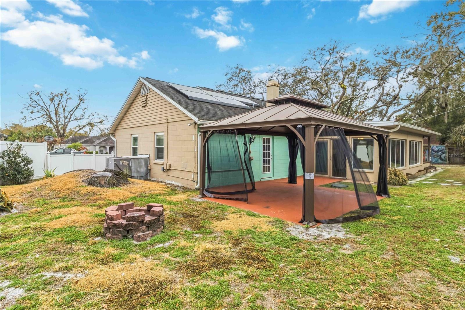 This well-maintained 3 bedroom, 2 bathroom Tampa home offers the perfect balance of comfort, character, and smart upgrades throughout. As you enter, you’re welcomed into a spacious living room filled with natural light and designed for everyday living as well as entertaining. Sliding pocket doors add both charm and flexibility, allowing you to open the space up seamlessly or create separation when desired. The kitchen is warm and inviting, offering great flow into the rest of the home and overlooking one of its most unique architectural features — a striking brick-covered pass-through opening that connects directly to the expansive Florida room. This custom detail creates an almost Italian-inspired feel and serves as a true conversation piece while enhancing functionality between spaces. All three bedrooms are generously sized, providing ample room for full furniture sets, additional seating, or even a home office setup. Both bathrooms are conveniently located and well-appointed, making the layout practical for families or guests alike. Designed with entertaining in mind, the massive Florida room offers endless possibilities. Whether used as a second living area, playroom, game room, or indoor-outdoor gathering space, it extends the home’s footprint significantly. Just beyond, you’ll find a spacious backyard complete with a new 12x16 gazebo — perfect for hosting weekend barbecues, relaxing evenings, or enjoying Florida’s beautiful weather year-round. Additional updates include a 3-year-old AC system, 6-year-old water heater, and 2-year-old double-pane windows for improved energy efficiency and comfort. The garage is equipped with a Tesla battery, adding a modern energy storage feature that sets this home apart. Located in an established Tampa area with convenient access to shopping, dining, and major roadways, this home offers space, personality, and valuable upgrades all in one.