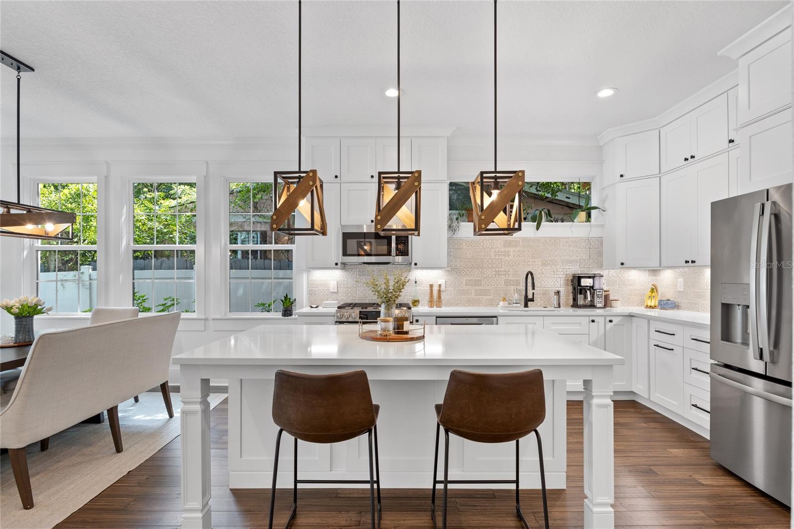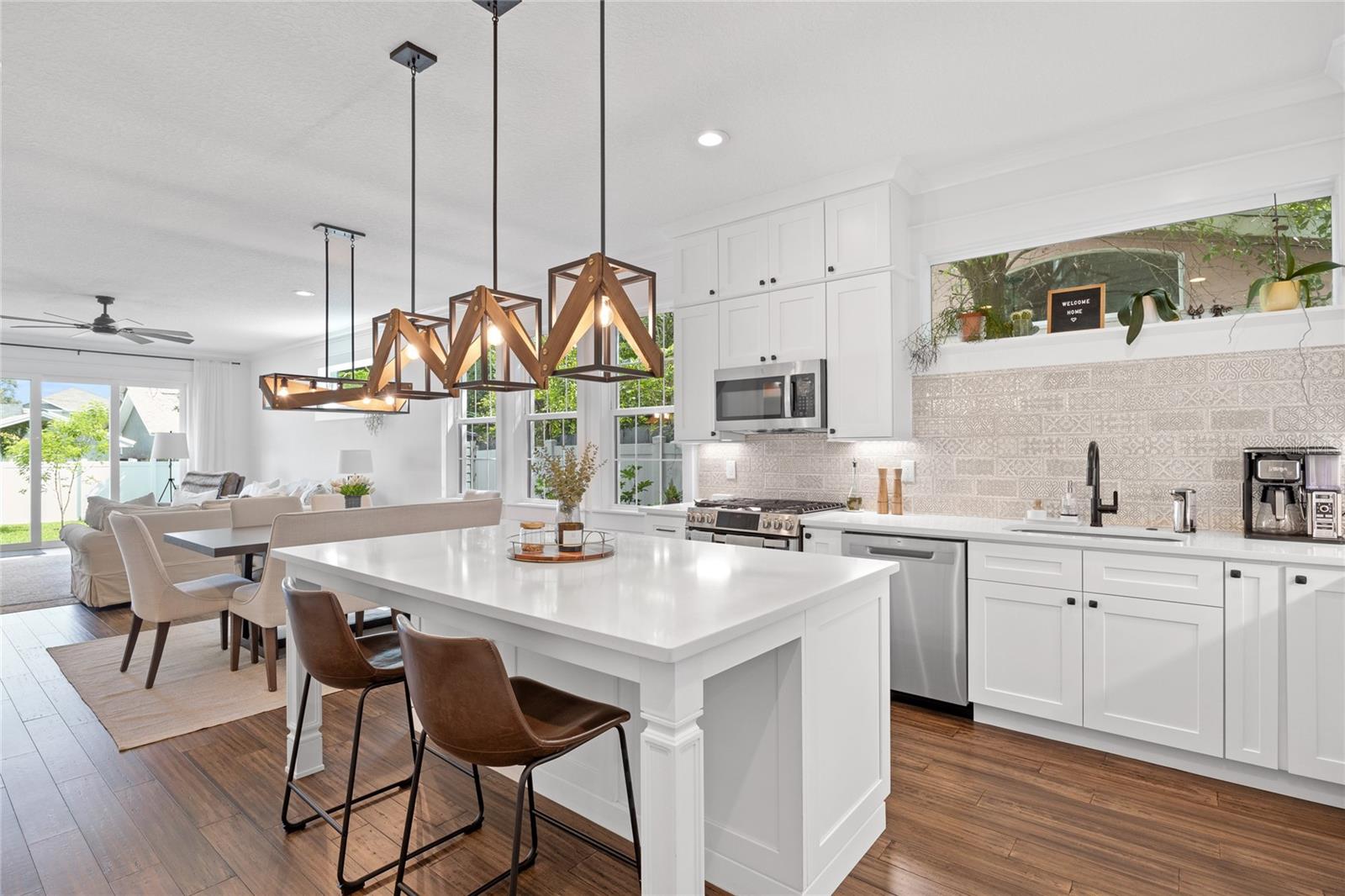 Enjoy all the charm of the Heights with the peace of mind new construction in this 2023 Craftsman home! Situated on a beautifully landscaped lot in the highly sought after neighborhood of Riverside Heights, this house is half a block from Plymouth Park, a short walk to Duran Park, and less than a mile to Armature Works! The curb appeal is lovely with mixed siding, stone accents, and tongue and groove porch ceilings. Through the gorgeous wood front door you'll find a 50 sq.ft. WINE CELLAR, open-concept living space, half bathroom, and FIRST FLOOR OWNER'S SUITE with private bathroom and walk-in closet. The kitchen was made for entertaining and features a separate bar with wine fridge. The tall ceilings, neutral color scheme, and ample windows give the space an airy vibe. Upstairs you'll find 3 additional bedrooms, a home office with built-in cabinetry, and a second full bathroom. This home is hurricane ready with impact resistant windows and a WHOLE HOUSE GENERATOR! The HVAC is a zoned system and the garage has a mini-split system and the sellers added a whole house dehumidifier and fresh air supply system. Outside you'll find a large patio with natural gas run for a grill or fire pit. The backyard is fully privacy fenced and has plenty of room for a pool! The owners have plans for a covered porch ready to go as well as a pool design/plan and the wiring is already in place for the pool equipment. The backyard is amazing as-is but could also easily be converted into a full blown tropical oasis! If you want the feel of a small, quintessential neighborhood with the convenience of trendy restaurants, breweries, and fun things to do this could be your HOME SWEET HOME in the city!