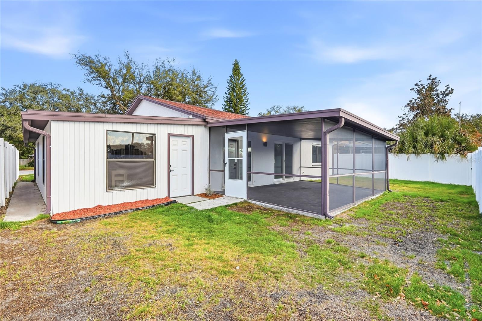 Welcome to this charming 3-bedroom, 2-bathroom, 2-car garage home in the desirable Lake Magdalene neighborhood of Tampa. From the moment you arrive, you’ll love the inviting curb appeal, with fresh sod and landscaping that make this home instantly feel warm and welcoming. Step inside to an open floor plan where the living room and kitchen flow seamlessly together, creating the perfect space for both everyday living and entertaining. The kitchen features new stainless steel appliances and plenty of cabinet space. The living room is highlighted by a sleek electric fireplace that adds both style and comfort. Just off the living room is a spacious dining area that can easily double as a family room, home office, playroom, or flex space to fit your needs. The spacious primary suite offers a private retreat with a trendy en-suite bathroom and a walk-in closet. Toward the front of the home, you’ll find two well-sized guest bedrooms and a modern guest bathroom, providing privacy and functionality for family or visitors. For added convenience, there’s an interior laundry room located right next to the door leading into the two-car garage, making daily routines easy and functional. Out back, enjoy a screened-in covered porch — perfect for relaxing and enjoying the Florida weather year-round. Beyond the porch, the fenced backyard also features fresh sod and plenty of space for pets, play, or outdoor entertaining. For added peace of mind, the roof was replaced in 2022 and the water heater in 2020. Plus, the home is NOT in a flood zone. Conveniently located just 15 minutes from downtown Tampa, 25 minutes from International Plaza and Tampa International Airport, and close to great restaurants and shopping, this home offers comfort, flexibility, and an unbeatable location.