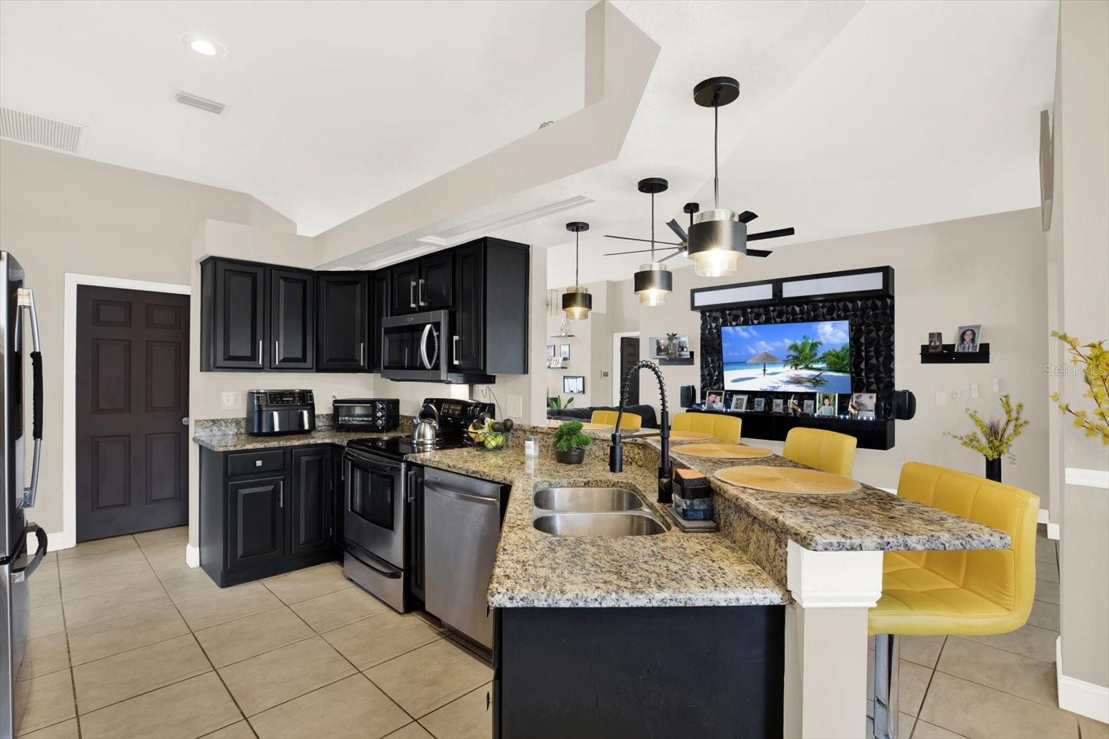 Welcome to this beautifully maintained three-bedroom, two-bathroom home located in one of the area’s most desirable communities. Thoughtfully designed with both comfort and style in mind, this spacious residence features tile and vinyl flooring throughout, offering a clean, modern look with durability and easy maintenance.The open layout flows effortlessly into a stunning kitchen complete with granite countertops, stainless steel appliaces,perfect for both everyday living and entertaining.Both bathrooms have been fully upgraded with contemporary finishes, creating spa-like spaces that feel fresh and refined.Step outside to a large patio ideal for hosting gatherings, enjoying quiet mornings, or creating your own outdoor oasis.Roof is a dimensional shingle system that was installed in 2016.Low HOA NO CDD.