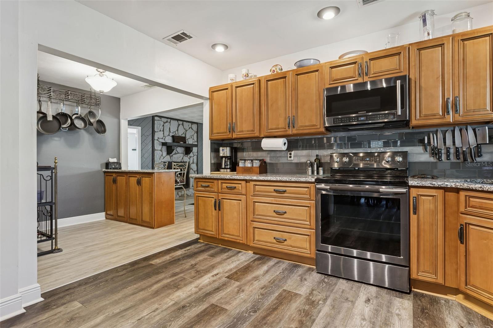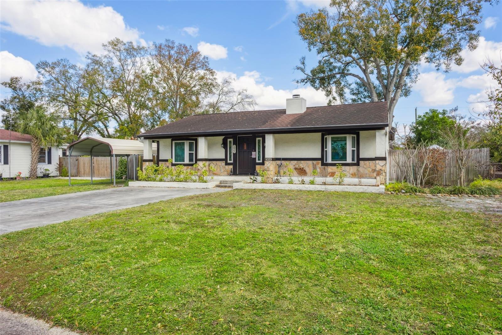 Welcome to 1023 N Bask Dr., a warm and welcoming Wellswood retreat where character, comfort, and thoughtful UPDATES come together to create a home that feels “just right” from the moment you step inside. The inviting living room sets the tone with its cozy stone fireplace, wood-accented walls, and beautiful natural light — the kind of space where families gather, unwind, and make memories. The UPDATED luxury vinyl plank flooring (2021 & 2025) flows throughout the home, offering durability, easy maintenance, and a modern look that first-time buyers love. The kitchen is a true highlight, featuring 2017 cabinetry, granite countertops, stainless steel appliances, and a stunning stained glass window that adds a touch of artistry and charm. With an UPDATED electric RANGE, 2022 refrigerator, and 2021 countertops, this kitchen blends style with everyday practicality. Just off the kitchen, the flexible dining makes meals and entertaining effortless. Step into the expansive screened-in patio — a major lifestyle upgrade for anyone who loves indoor-outdoor living. With wood ceilings, multiple seating areas, and views of the lush backyard, it’s perfect for morning coffee, weekend gatherings, or quiet evenings under the string lights ?. The backyard itself is a standout: mature trees, stone pathways, a fenced-in layout for pets or play, and plenty of room for gardening or outdoor fun. This home has been lovingly maintained with insurance-friendly features that matter: an updated 2017 HVAC, NEW 2025 electric water heater, IMPACT RESISTANT windows, and NO FLOOD insurance required. Additional perks include decked attic storage, an encapsulated crawlspace with a dehumidifier, a termite warranty, and well-kept exterior systems — all adding peace of mind for any buyer. The carport and extended driveway offer convenient COVERED parking, and the 2-car garage offers unlimited options for FLEX-SPACE. And the location is unbeatable — within five miles, you can enjoy Tampa’s best: the Riverwalk, Armature Works, Lowry Park Zoo, Al Lopez Park, Seminole Heights favorites like Rooster & the Till, Trip’s Diner, Independent Bar & Café, and a vibrant mix of coffee shops, breweries, and family-friendly restaurants. It’s the perfect blend of neighborhood charm and city convenience. Homes with this level of care, character, and comfort don’t come around often. Schedule your private showing and experience the lifestyle waiting for you at 1023 N Bask Dr.