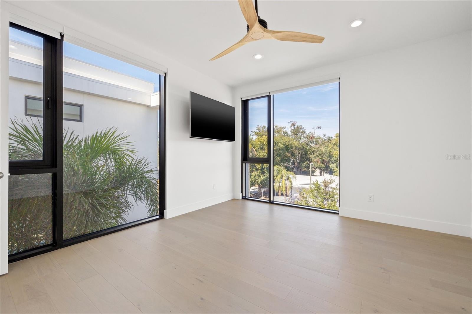 One or more photo(s) has been virtually staged. Welcome to Woodrow Townhomes, a remarkable modern development designed by renowned architect OWA in the heart of Tampa Heights. Crafted with excellence, this end-unit, three-story townhome features four spacious bedrooms, three and a half elegantly designed bathrooms, an oversized two-car garage, a fenced-in side yard, and a dramatic double-story balcony. With incredible architecture and a seamless layout, Woodrow Townhomes exemplifies luxurious living at its finest. Your exterior entrance features a secluded side entry, set apart from the other townhomes to provide a true single-family feel. Upon arrival, you are greeted by a stunning two-story atrium complete with a towering palm tree that creates a dramatic focal point. The home’s expansive floor-to-ceiling windows in every room allow natural light to pour in, offering panoramic views and creating an open, airy atmosphere throughout .Upon entry, you’ll find the first of four bedrooms, complete with a private ensuite full bath. This versatile space features wraparound sliding glass doors and floor-to-ceiling windows that fully open to the fenced-in private side yard, making it ideal as a guest suite, home office, or entertainment space with seamless indoor-outdoor living.The main living level showcases a spacious kitchen and dining area framed by massive floor-to-ceiling windows that flood the space with natural light. The design is so meticulously executed that you can gaze from one side of the home to the other, enhancing the sense of openness and connection. A striking glass-walled staircase with solid oak treads anchors the space, adding architectural drama. The living room features high ceilings, a dedicated TV wall, and a two-story open-air balcony finished with a stunning limewash accent wall that mirrors the natural stone used on the home’s exterior, blending indoor and outdoor design elements beautifully. The third floor offers three additional bedrooms, including a luxurious primary retreat designed as a private oasis. The primary suite features a spacious walk-in closet, and a spa-like bathroom complete with multiple shower heads and a soaking tub for ultimate relaxation. Beyond its exceptional layout and design, Woodrow Townhomes offers rare, high-quality construction details such as all-block construction, gypcrete concrete floors for superior soundproofing, fire resistance, and stability, gorgeous engineered hardwood flooring, exquisite stone and tile accents, a 48-inch dual-fuel range, top-of-the-line JennAir panel-ready appliances, and a tankless water heater for enhanced efficiency and convenience. Situated just moments from Downtown Tampa, I-275, Armature Works, the Tampa Riverwalk, and Tampa International Airport, Woodrow Townhomes perfectly balances luxury, architecture, and convenience. This home is the epitome of contemporary design and a standout opportunity for those seeking a premium urban living experience.