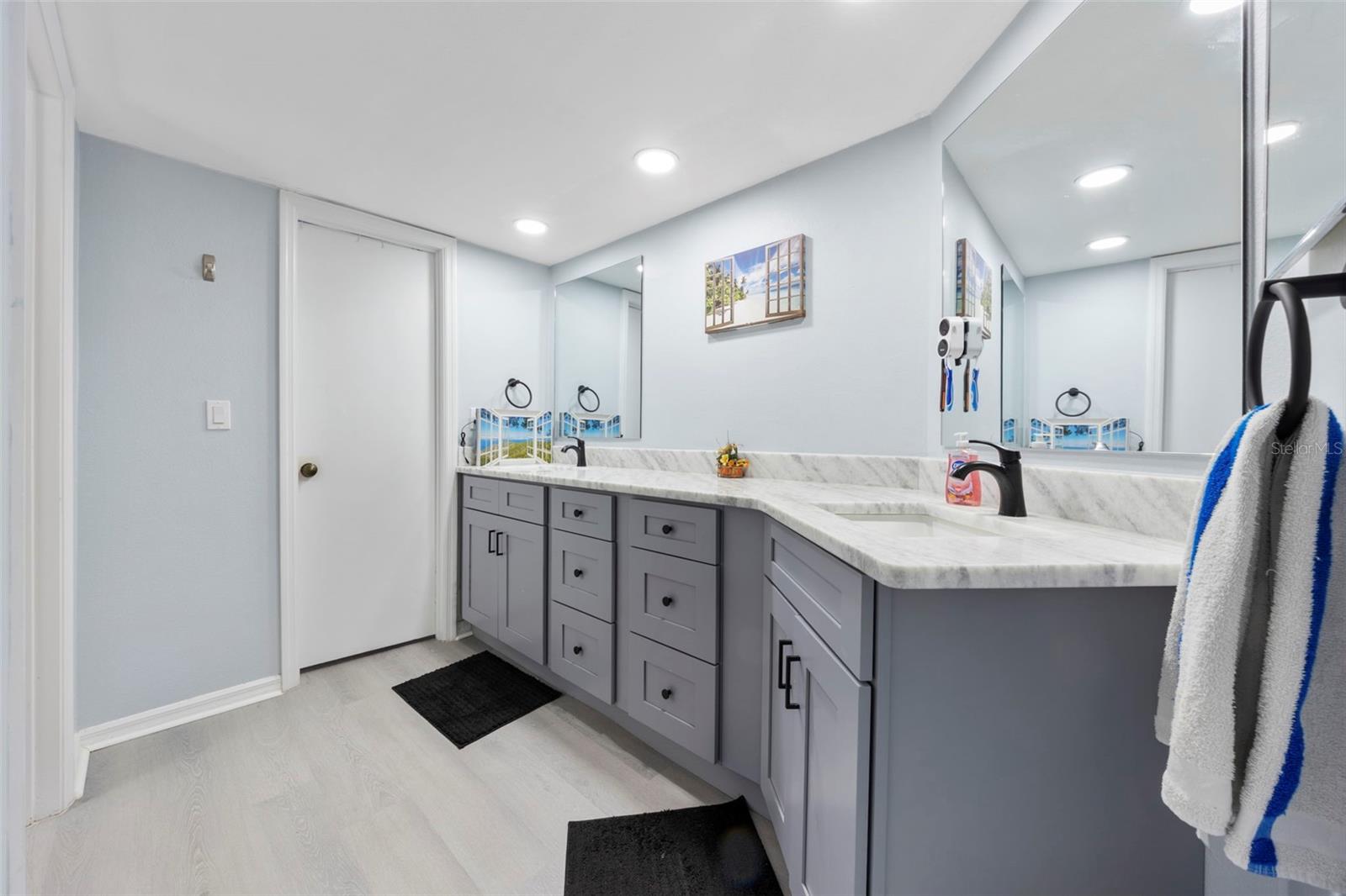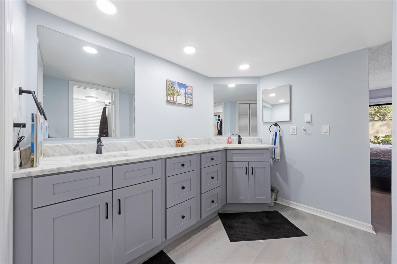 Welcome to the heart of Carrollwood, where style, comfort, and location come together in this beautifully updated three-bedroom, two-and-a-half-bath townhome. Situated in the desirable Lake Ellen Walk community, this residence offers refined living with thoughtful upgrades throughout. From the moment you enter, you’ll appreciate the open and inviting layout. The kitchen has been completely reimagined with new stainless steel appliances, elegant marble countertops, cabinetry, and a designer backsplash; creating a perfect space for both everyday living and entertaining. The first-floor primary suite provides privacy and convenience, featuring an oversized walk-in closet and a tastefully renovated en-suite bath designed with modern finishes. Upstairs, two generously sized bedrooms showcase vaulted ceilings that enhance the light and airy feel. One bedroom offers a private balcony; the ideal spot for morning coffee or unwinding at sunset. The remodeled upstairs bath includes a sleek walk-in shower, and additional attic access provides valuable extra storage. Practicality meets peace of mind with a detached garage, an additional assigned parking space, and a metal roof just 5 years old. Residents of Lake Ellen Walk enjoy access to a waterfront pool, jacuzzi, a fully equipped fitness center, barbecue area, and access to scenic walking path perfect for evening strolls. This move-in-ready townhome blends comfort and community living in one of Carrollwood’s most sought-after locations.
