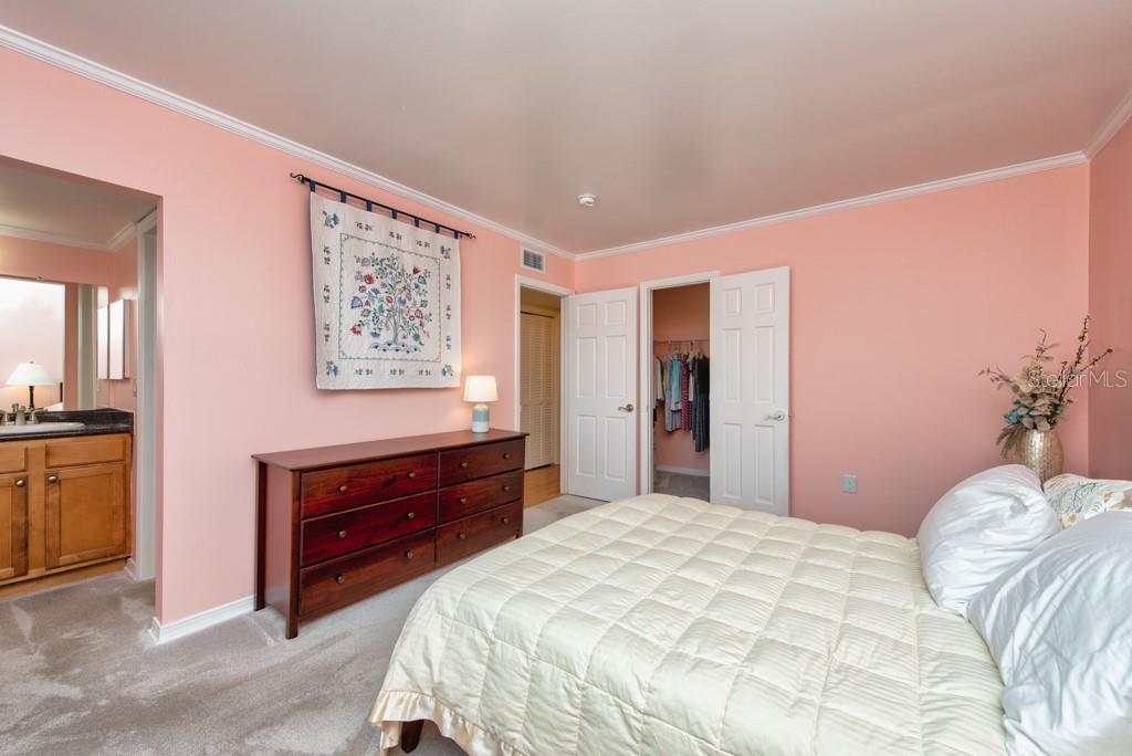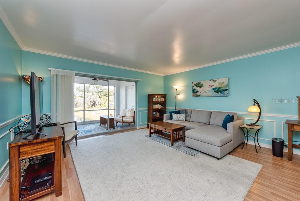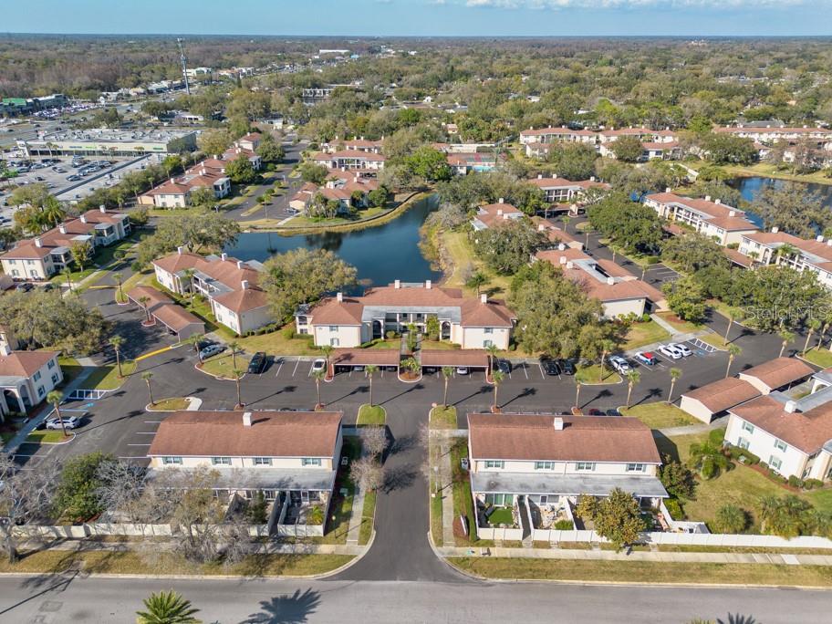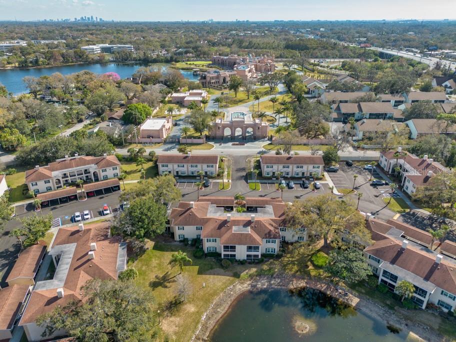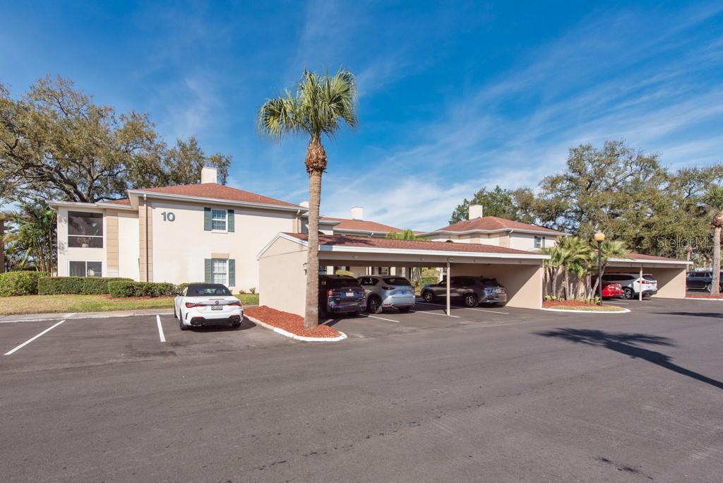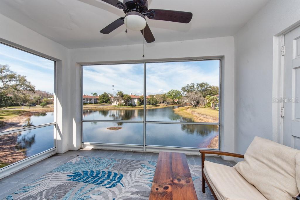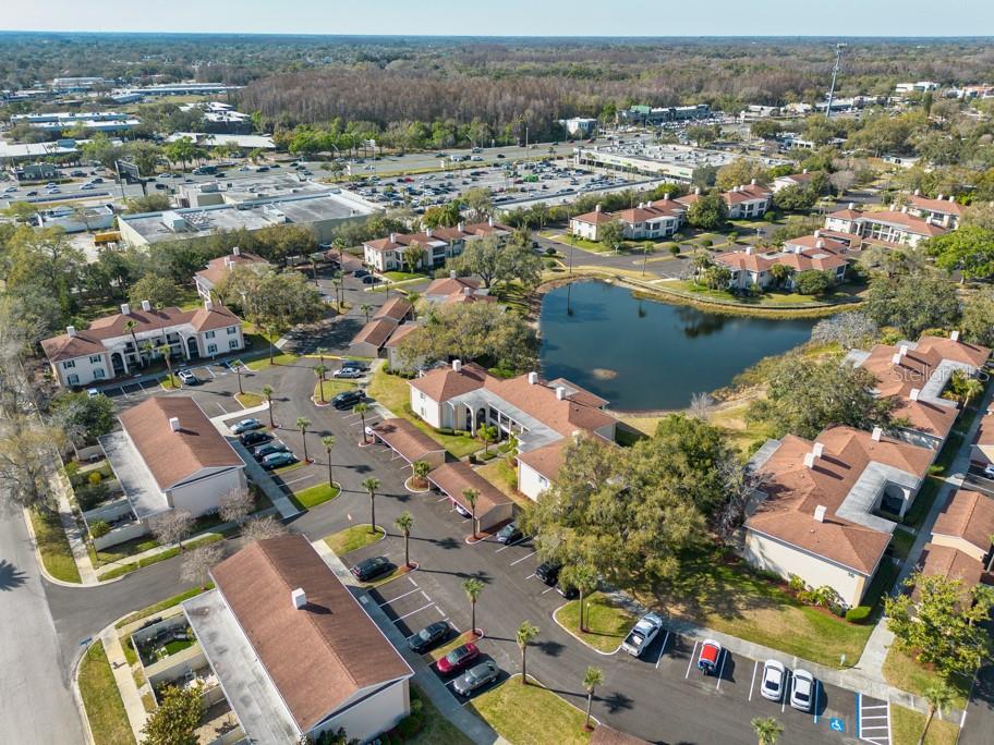 Pond views, peaceful mornings, and effortless living—this move-in ready condo in The Grand at Olde Carrollwood delivers it all. Located on the second floor and offering 1,156 square feet, this 2-bedroom, 2-bath residence features an open layout designed for both comfort and functionality, plus one assigned covered parking space for added convenience. Step inside to a welcoming entryway with tile flooring, two spacious closets for coats and storage, and a dedicated laundry closet complete with washer and dryer. The open floor plan unfolds into a bright and inviting living and dining area highlighted by wood laminate flooring and crown molding. Large glass sliders flood the space with natural light and frame serene pond views, extending your living space onto a covered and screened-in tiled lanai—perfect for morning coffee or unwinding at the end of the day. A private storage closet on the lanai adds even more functionality. The kitchen offers timeless finishes with tile flooring, wood cabinetry, granite countertops, and stainless-steel appliances—everything you need in a space that’s both stylish and practical. The primary suite is thoughtfully positioned to overlook the pond, creating a relaxing retreat. It features new carpet, a walk-in closet, and an en-suite bath with a vanity, a private water closet, and a tiled walk-in shower. The second bedroom also includes new carpet and a walk-in closet, ideal for guests or a home office. A full second bath with a vanity and shower/tub combination is conveniently located nearby, along with two oversized hallway linen closets for additional storage. Hurricane-impact windows in both bedrooms provide peace of mind and energy efficiency. Residents of The Grand at Olde Carrollwood enjoy beautifully maintained grounds with walking paths, two community pools, a clubhouse, a fitness center, and tennis courts. The HOA fee covers valet trash service, exterior maintenance and grounds, building insurance, pool maintenance, and access to recreational amenities—allowing you to truly enjoy low-maintenance living. Ideally situated near shopping, restaurants, major highways, hospitals, and Tampa International Airport, this condo combines comfort, convenience, and scenic surroundings in one exceptional package.