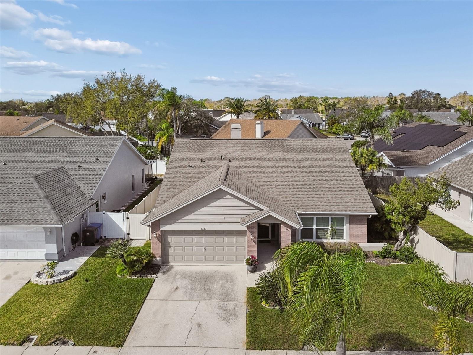 Curb appeal sets the tone as you arrive at this lovely pool home with 3 bedrooms, 2 baths and a 2-car garage. Step inside to a welcoming foyer that opens into a spacious living room highlighted by soaring vaulted ceilings and an airy, open feel. The heart of the home is the generous kitchen, featuring newer stainless-steel appliances, stone countertops, abundant cabinetry, a pantry, and a sunny eat-in area. The kitchen overlooks the cozy family room, where a wood burning fireplace adds warmth and charm. Wood flooring flows throughout the living areas and bedrooms, complemented by tile in the kitchen, family room, and baths. The primary suite is a true retreat, offering a walk-in closet, private pool entrance and a well-appointed en-suite bath with double vanities and a linen closet. Bedrooms two and three feature oversized closets, new ceiling fans, and share an updated guest bath with newer tile, toilet and tub. The west-facing birdcage screened lanai, and solar-heated pool and hot tub create the perfect setting for long relaxing afternoons of sun and entertaining until the sun sets in the west! Multiple rooms open directly to the pool, delivering effortless indoor-outdoor living. Recent upgrades include a resurfaced pool and new tile (2017), salt chlorination system (2024), new pool motor (2019), lanai birdcage overhang and gutters (2023), a vinyl-fenced backyard, and a side-yard dog run complete with a doggie door. Additional updates provide peace of mind, including newer windows (2019), roof (2023), exterior paint (2023), popcorn ceilings removed and repainted (2023), a 50-gallon water heater (2024), and AC (2015). Thoughtfully updated and move-in ready, this home is located in the highly sought-after Countryway community, offering amenities such as tennis, basketball, baseball, soccer, volleyball, and golf. Ideally positioned near shopping, dining, business districts, the YMCA, the Upper Tampa Bay Trail, and Tampa International Airport. This home checks every box!