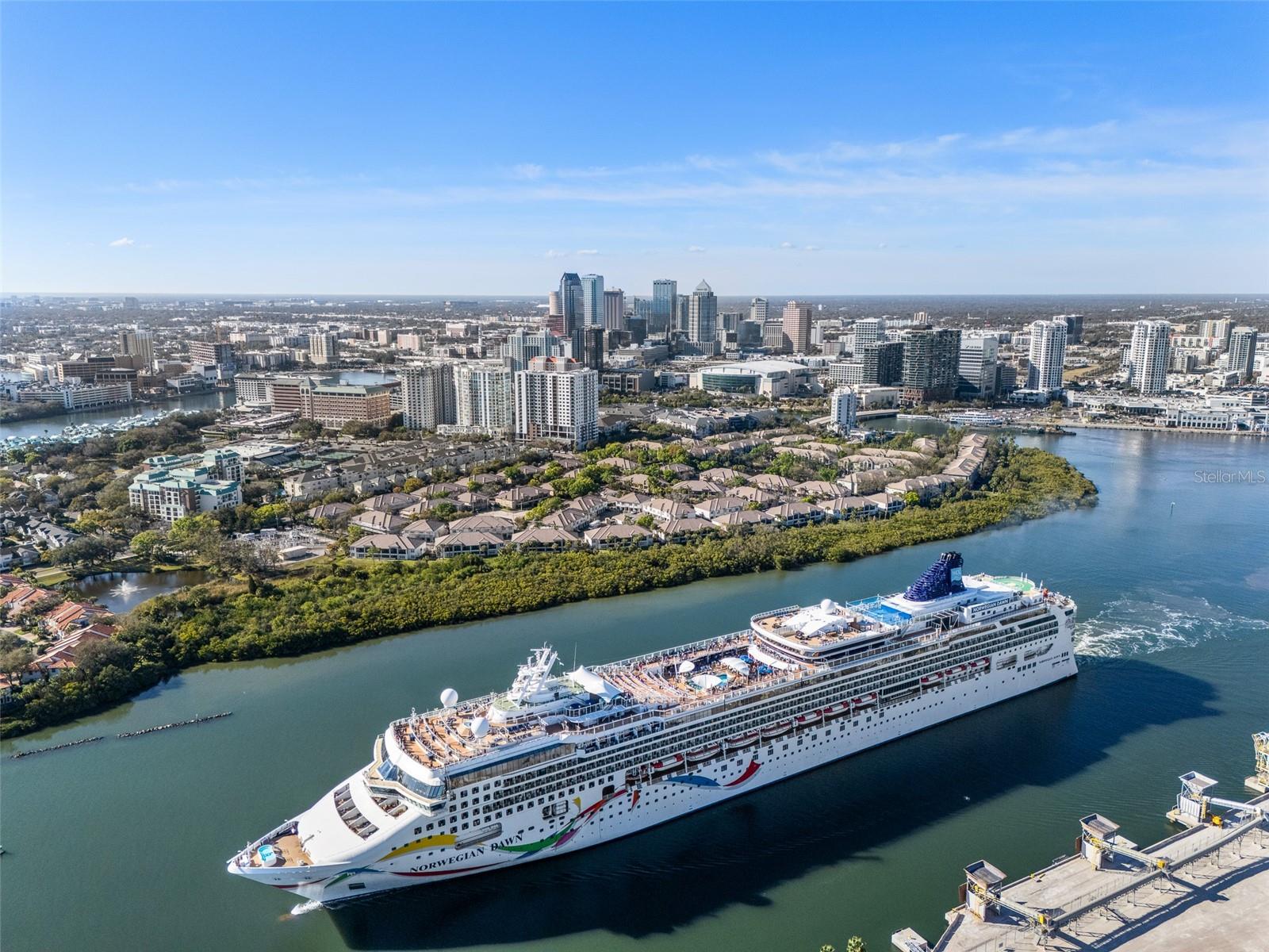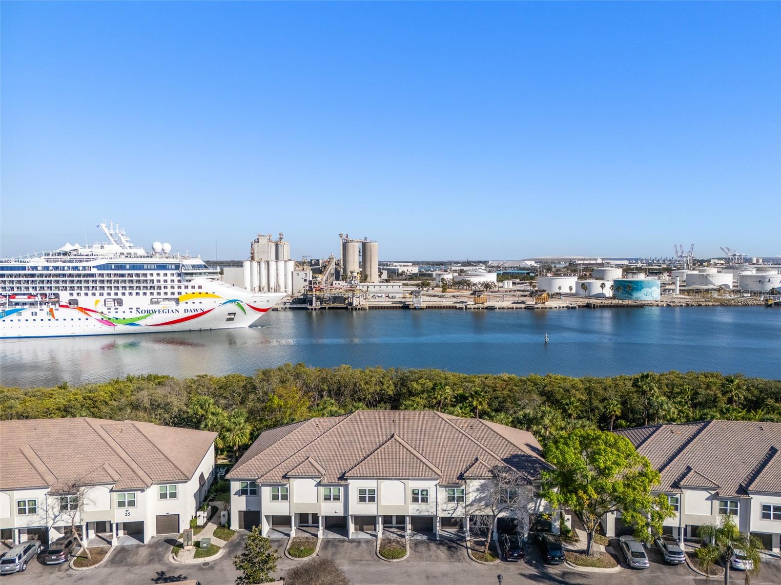 Experience the pinnacle of waterfront living in the most desirable location within the gated Island Walk community. This sophisticated two-story executive condo offers a rare architectural layout featuring twelve-foot vaulted ceilings, a premium detail available in only a select few units throughout the complex. The seller is providing an exceptional financial incentive by paying off all existing assessments at the time of closing. The interior has been meticulously updated with a premium level five finished drywall on all walls and ceilings, complemented by solid core five-panel doors, updated fixtures, switches, outlets and a high-efficiency Trane air conditioning system. On the main living level, the open floor plan is illuminated by upgraded Phillips LED track lighting, natural light beaming through the sliding glass doors, and features a gourmet kitchen equipped with stainless steel LG and Bosch appliances. Bedroom windows are hurricane impact windows and newer hot water heater. The spacious family room offers stunning views of the Sparkman Channel, providing a front-row seat to passing cruise ships. Residents can enjoy the Florida breeze by opening the wall-to-wall sliders that lead to a private, fully screened-in balcony. The residence includes a primary suite with a private en-suite bathroom, walk-in closet, and ample natural light. The large second bedroom offers a large closet, easy access to a full hall bath, and the unit features a private lower-level enclosed garage with interior access. Residents enjoy an active lifestyle with an array of amenities covered by HOA fees, which include building flood insurance, water, twenty-four-hour security, and twice-weekly concierge trash pickup. On-site facilities include a community pool, tennis courts, playground, and a fitness center. All exterior renovations for this building have been completed, ensuring a move-in-ready experience. This prime location puts you within a mile-walking distance to Tampa’s premier destinations, including Sparkman Wharf, Water Street, the Tampa Riverwalk, and Benchmark International Arena, as well as Greenwise Publix and several Michelin Star restaurants. This is your opportunity to purchase a slice of heaven with plenty of upside.