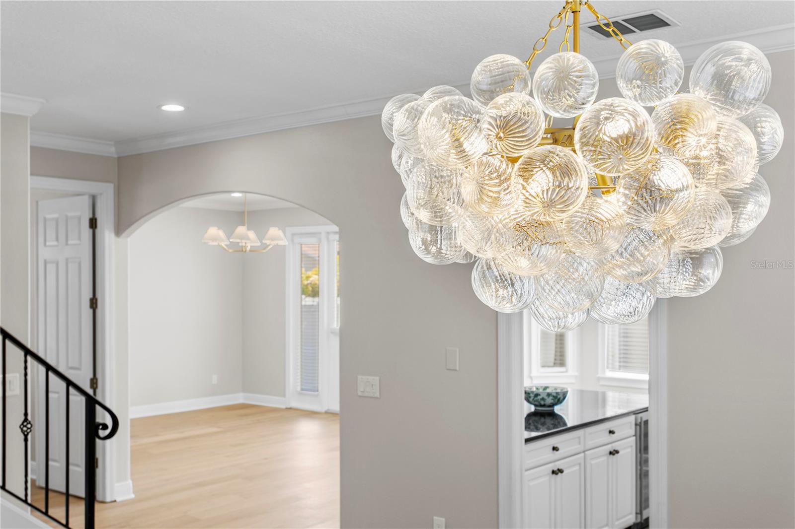 Located in desirable Virginia Park and situated in Flood Zone X, this beautifully refreshed 5-bedroom, 4-bath home offers a functional layout and stylish updates throughout. Recent improvements include brand-new engineered hardwood flooring on both levels, fresh neutral interior paint, designer lighting, and updated hardware, creating a move-in-ready interior. The floor plan features formal living and dining rooms with a double-sided fireplace, an open kitchen with white cabinetry and granite countertops, a spacious family room with French doors to a covered lanai, a breakfast area, and a first-floor guest suite with full bath. Upstairs, the oversized primary suite includes two walk-in closets and a well-appointed bath, along with three additional bedrooms, a bonus room, and laundry room. The privacy-fenced yard offers room for a pool while maintaining green space. Tile roof, 2-car garage, and no flood insurance required add lasting value.