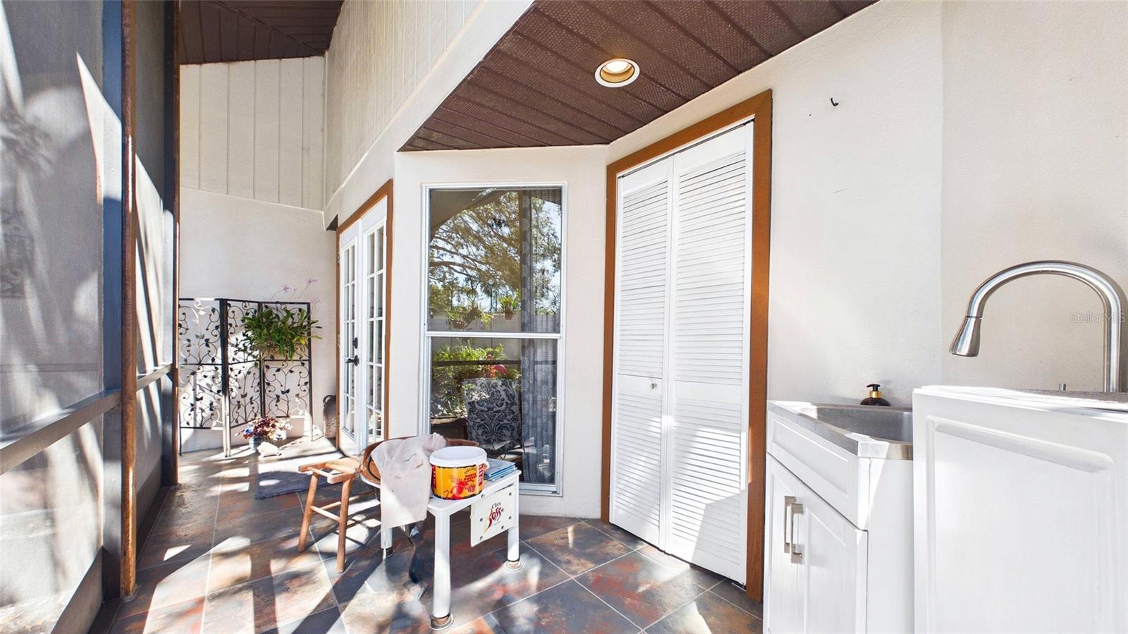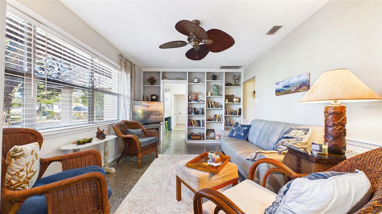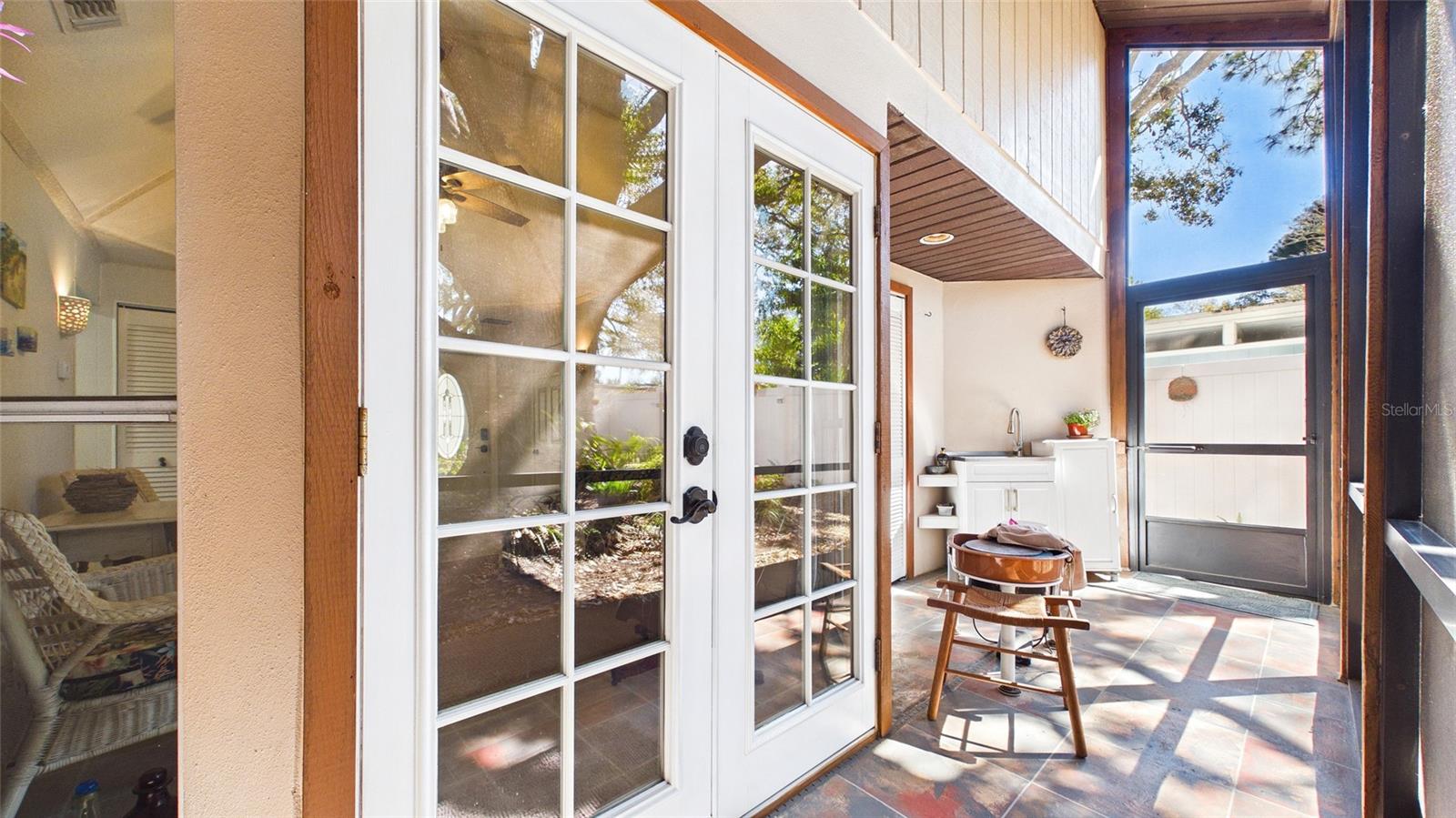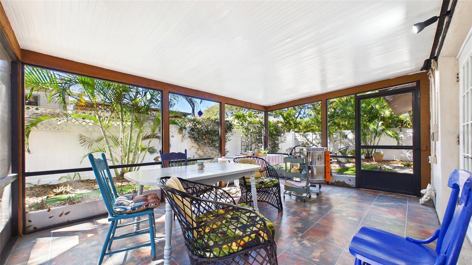 Tucked beneath centuries-old grand oaks, this nature-lover’s retreat blends comfortable Gulf Coast style with documented system updates and thoughtful improvements throughout. Located on a quiet no-through street between Old Tampa Bay and Bayshore Boulevard, the setting offers privacy, charm, and walkability in one of South Tampa’s most desirable pockets. The home features 1,240 square feet of heated living space with vaulted ceilings, original terrazzo and tile floors, custom built-in bookshelves, and abundant natural light. Three sets of double French doors create beautiful flow and open to a large wrap-around screened lanai — a true extension of the home and perfect for outdoor dining, relaxing, or entertaining. The kitchen was remodeled with granite countertops, breakfast bar, double stainless-steel sink, updated faucet and disposal, and refreshed cabinetry. The practical floor plan includes three bedrooms, a bonus office or den, and one-and-a-half remodeled baths. The main bath was fully renovated with updated flooring, tile, vanity, sink, and fixtures, while the powder room features recent updates and custom storage. The screened-in laundry room includes cabinetry, utility sink, and washer and dryer discreetly housed within cabinetry, offering functionality without sacrificing space. The door frame was widened for accessibility and additional storage. Major improvements include whole-house rewiring and new electrical panel (2008), attic re-plumbing with updated supply lines to the street, heat pump and air handler system (2008, serviced 2025), water heater (2013), and hip roof shingle replacement (2012). A comprehensive pre-listing inspection completed January 2026 evaluated roof, HVAC, plumbing, electrical, and major systems, all reported in good working order. Additional features include a 220 outlet on the lanai, large storage area above the double carport, painted exterior, vinyl privacy fencing with two lockable gates, mature landscaping with jasmine and hibiscus, and an eco-friendly yard design. High and dry location with no flooding during recent hurricane seasons. Approximately 1,900 total square feet including covered and screened areas. A well-maintained South Tampa home with strong mechanical integrity, timeless character, and move-in-ready appeal.