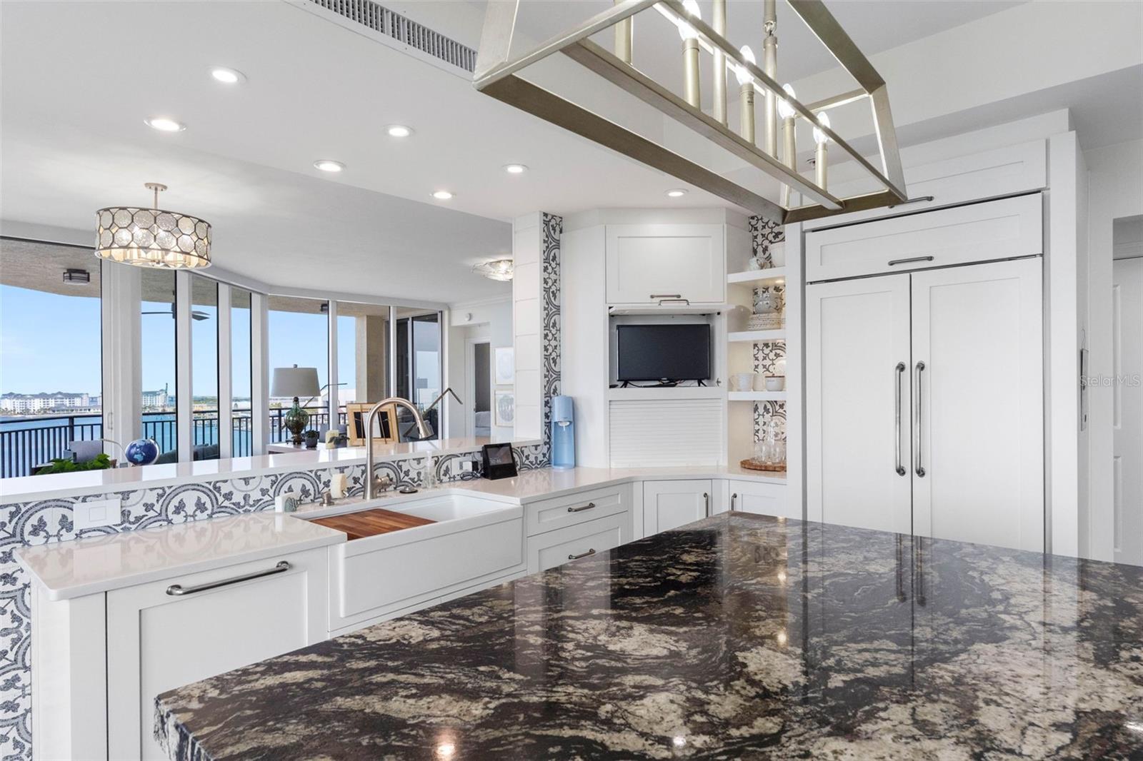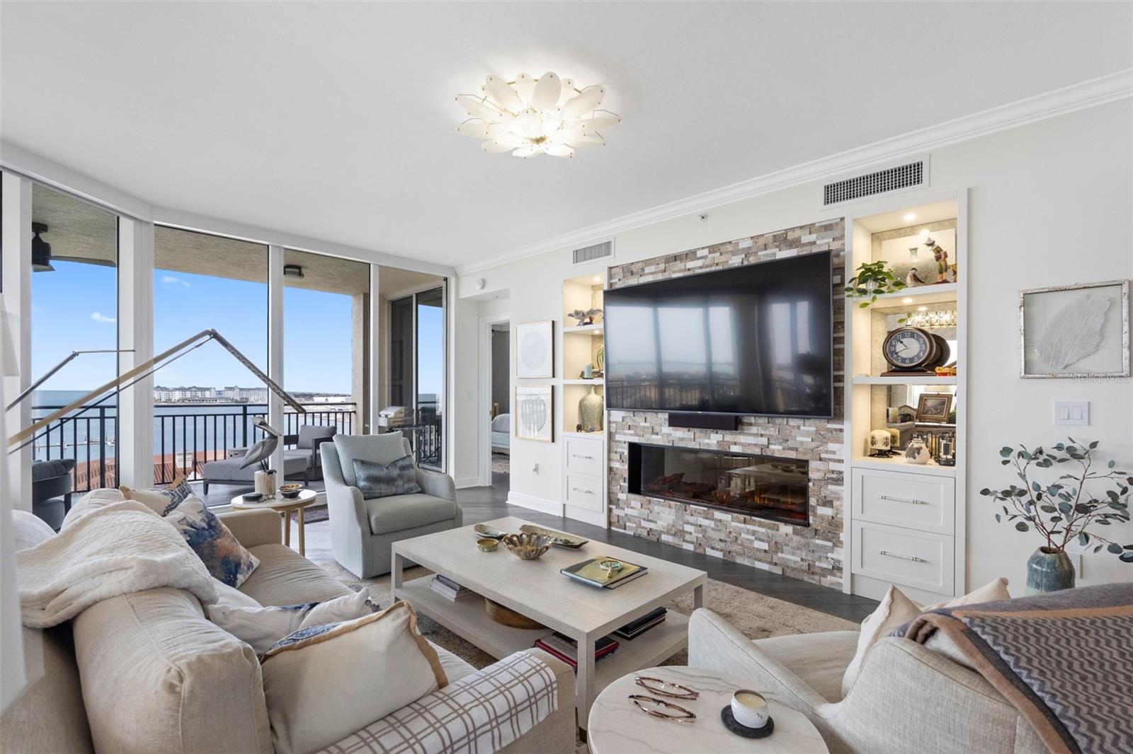 Castillo Tower at Westshore Yacht Club. Exquisite renovation of the coveted “01” end unit showcasing expansive West and East facing balconies with breathtaking water, sunset and open unobstructed views from every room! Secure keyed elevator opens directly into your gracious entrance foyer and 2600 Sq Ft residence with refined appointments and sophisticated design. Enhanced details include modern “smart home” technology, custom crafted wet bar with Subzero wine cooler, European wide plank oak flooring throughout, handsome built in shelving, oversized linear fireplace, motorized sun shades, stunning lighting fixtures, ceiling fans, crown moldings and beautifully coordinated finishes and hardware. The spectacular chef’s kitchen is a work of art outfitted with an oversized center island, beverage refrigerator, quartz & granite countertops, farm style sink, Subzero refrigerator, Bosch dishwasher, GE monogram induction cooktop, advantium series French door oven, microwave, warming drawer, induction cooktop plus loads of soft close drawers/cabinetry and pantry closet. Luxurious primary bedroom boasts two large custom outfitted walk-in closets, lavish en-suite bathroom with heated floor, shimmering luminescent tile work, dual sinks, stand alone soaking bathtub, large glass enclosed shower and toto spa toilet. Both of the generously sized secondary bedrooms feature magnificent updated en-suite bathrooms, custom organized closets and share the East facing terrace offering views of downtown Tampa’s skyline, the cruise ships and aircraft departing MacDill AFB. There’s also a separate dedicated laundry room with utility sink, additional storage and adjacent guest’s powder room.Both of the a/c units were replaced in 2024. Two assigned parking spaces in the underground garage and climate controlled storage are included. Castillo Tower amenities include a sparkling heated swimming pool and jacuzzi spa, tastefully decorated social rooms with catering kitchen, outdoor grilling pavilion, 2 overnight guest suites, fitness center, movie theater, steam shower and saunas, on site management, bicycle and kayak storage.Westshore Yacht Club is South Tampas premier 24 hour guard gated waterfront community rich in amenities featuring the exclusive members only Bay Club and Marina, 149 boat slips, two resort style heated swimming pools, outside Tiki Bar, casual poolside and indoor dining, Compass Day Spa, 806 Sunset bar and dining, state of the art fitness center, community and dog parks plus exciting resident social functions. Conveniently located with easy access to downtown Tampa and St Petersburg, Westshore business and shopping district, Tampa International and MacDill Air Force Base and Bay Area beaches.
