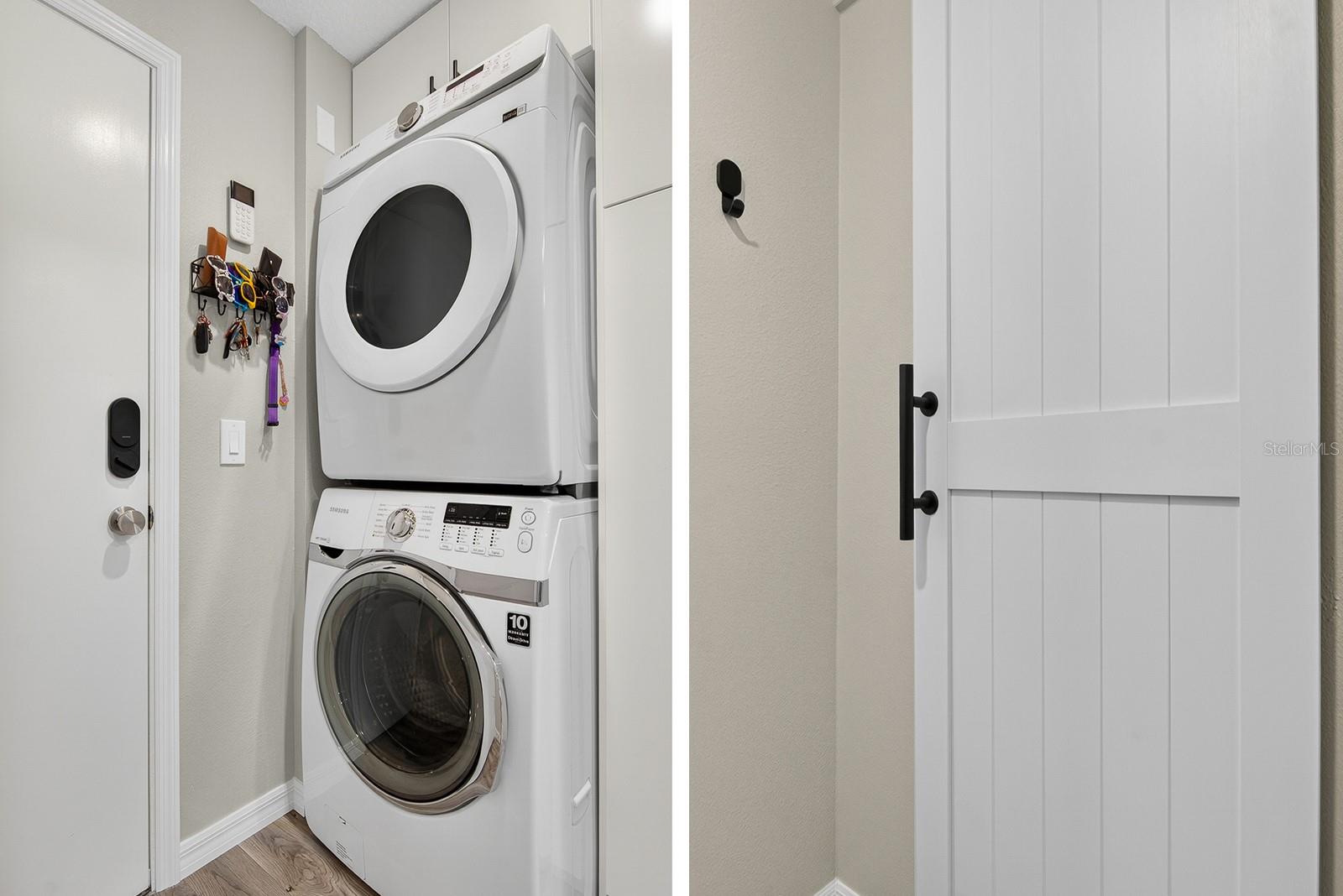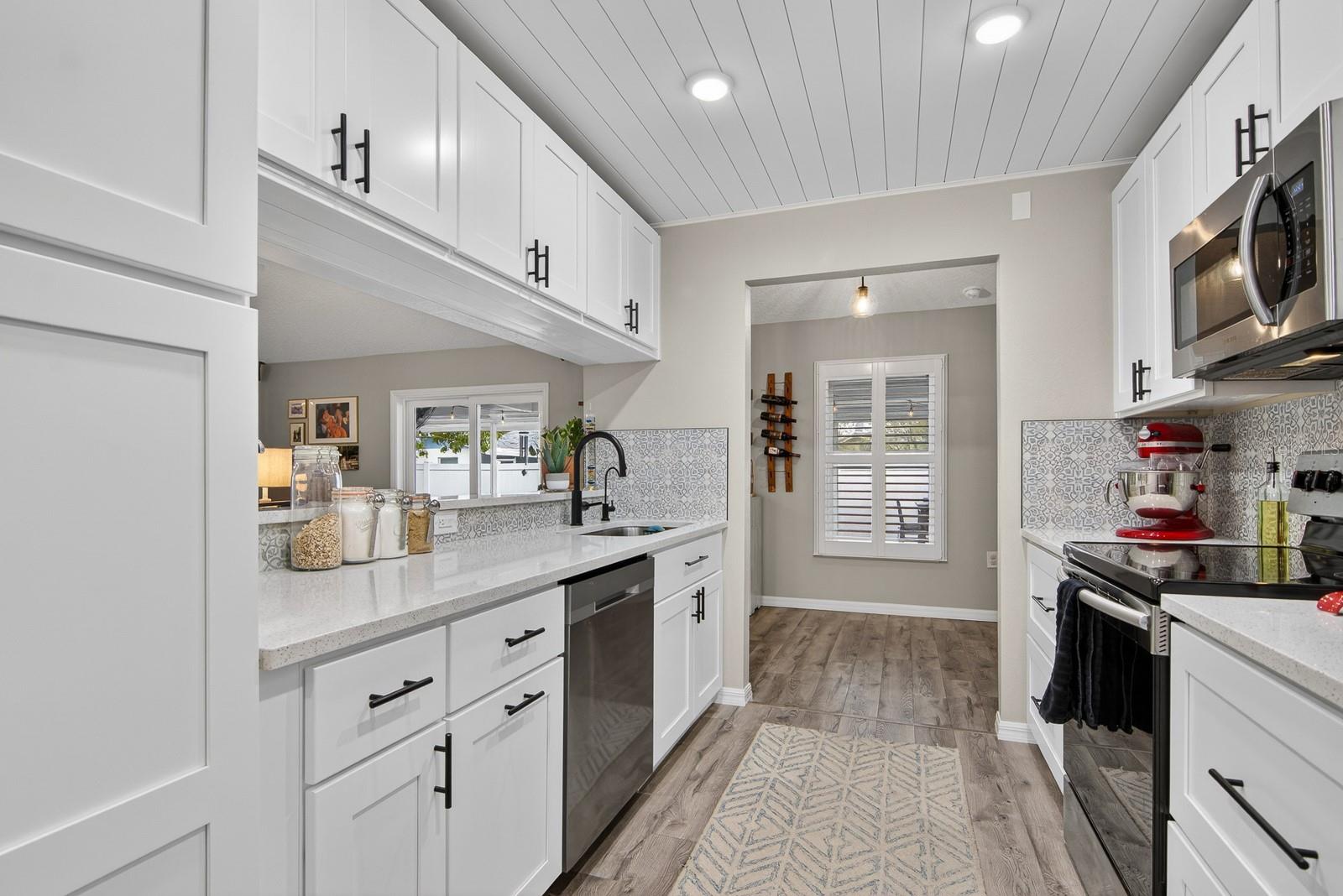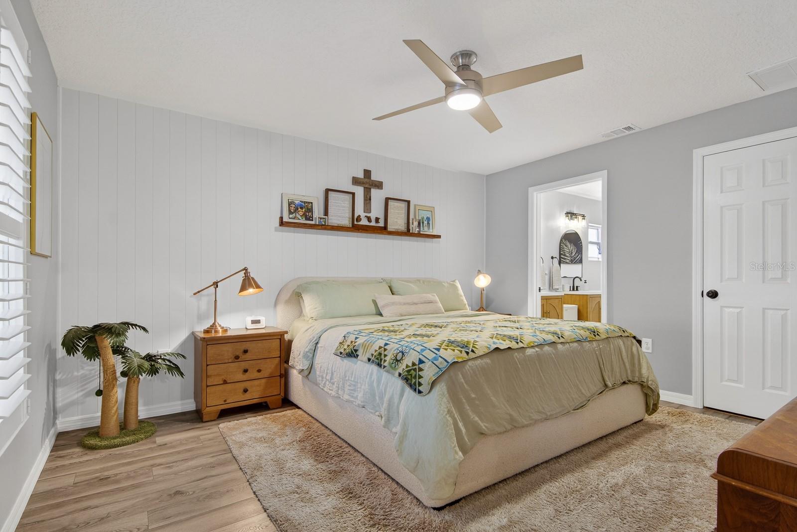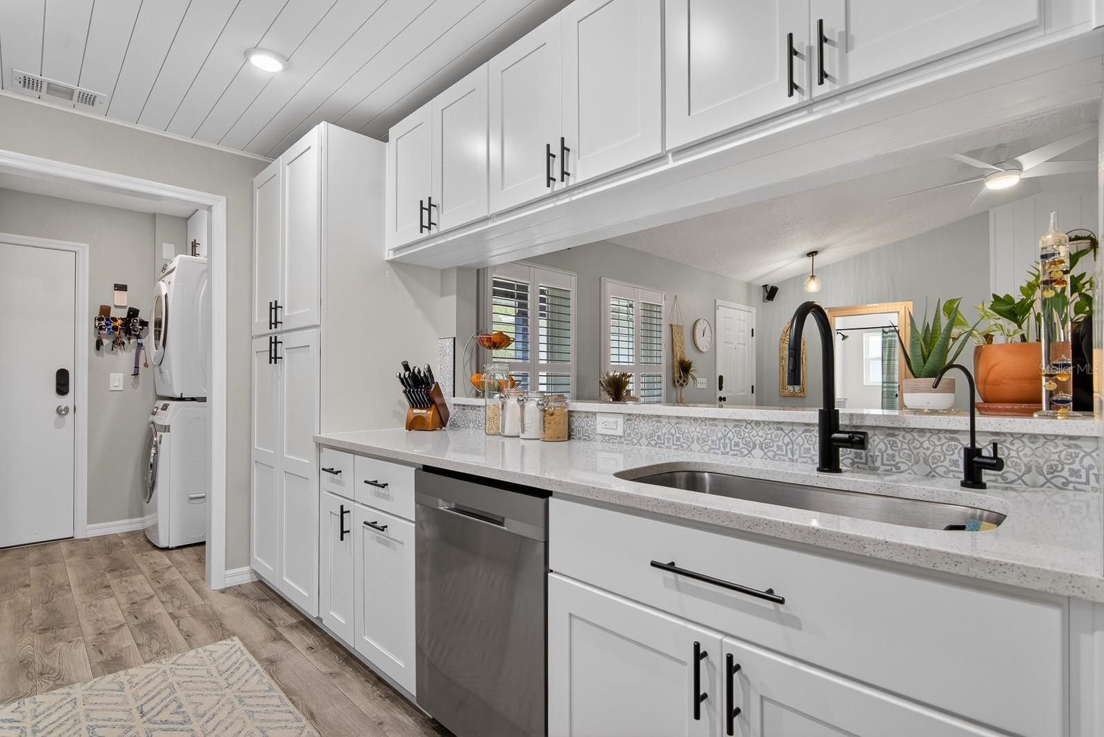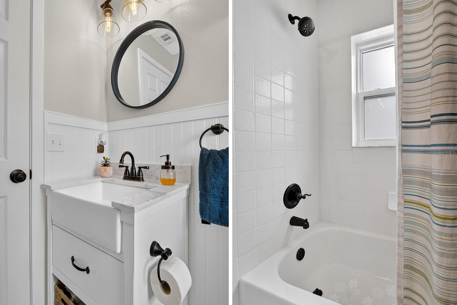 Step into this beautifully updated 3-bedroom, 2-bath home offering modern style, thoughtful upgrades, and a fantastic Tampa location. With 1,354 sq ft, a split-bedroom layout, and a bright, transitional interior, this home delivers comfort, function, and a move-in-ready experience from the moment you arrive. The curb appeal is instantly inviting with a brick paver driveway, freshly painted front door, and modern exterior accents including black trim, shutters, and lighting. The newer gray roof (2023) and white-painted brick give the home a clean, contemporary look that stands out on the street. Inside, the main living areas feature laminate flooring, an open feel, and great natural light. The family room includes a stylish shiplap accent wall, adding warmth and character to the space. Throughout the home, you’ll find new lighting and new ceiling fans, enhancing both comfort and design. The updated kitchen showcases sparkle white quartz counters, white shaker cabinets with black hardware, stainless steel appliances, a new 2025 refrigerator, a blue and gray floral backsplash, cabinet pantry, and a breakfast bar overlooking the dining/family room. The primary suite includes an upgraded walk-in closet with built-in organizers and a stunning, fully renovated bathroom featuring new vanities, tile floors, statement tile in the shower, frameless glass, and updated lighting—this space truly feels like a boutique retreat. The guest bathroom has also been refreshed with new tile floors, a farmhouse-style vanity, beadboard accents, and updated hardware, while still offering a tub/shower combo. The indoor laundry room is conveniently located off the kitchen and includes a stackable washer/dryer, storage cabinets, and an additional closet. Major system upgrades provide peace of mind, including a new roof (2023), new HVAC (2023), new Pella double-hung window (2023), new hurricane-rated garage door (2024), Culligan water softener + RO system (2023), new vinyl fence (2024), plantation shutters (2024), and a transferable termite bond. Outdoor living is a highlight with a large screened and covered patio featuring tile flooring, plenty of room for dining and lounging, and a jacuzzi/spa that stays with the home. There’s still green space behind the patio, plus side yards—including one with room for a small boat or trailer. A shed provides extra storage, and the new fence keeps the yard private. Located in the city of Tampa with no HOA, this home offers quick access to Gandy Bridge, Picnic Island Park, Bobby Hicks Pool, MacDill AFB, South Tampa dining and shopping, Westshore Marina District, downtown, and the airport. Robinson High School, a highly rated magnet school, is right around the corner. Enjoy a quiet residential street while staying close to everything.