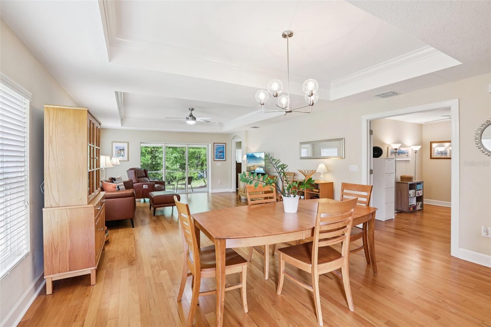 Located in the gated Tuscany Enclave in Tampa Palms, this updated, well-maintained home offers privacy and easy Florida living on a premium conservation lot with wooded views and no rear neighbors. The light-filled interior features tray ceilings with crown molding, a neutral color palette, and wood flooring throughout the main living areas and bedrooms—completely carpet-free—with tile in the bathrooms and laundry room. The flexible layout includes two spacious bedrooms plus a large private office that can serve as a third bedroom, guest suite, or flex space. The living and dining areas open to a lanai, extending the space outdoors for relaxing or entertaining. Extensive upgrades include a new roof (2025) and HVAC system (2025) with built-in germicidal UV, whole-home air purification, and a smart Ecobee thermostat. Additional improvements include fresh interior and exterior paint (2024), epoxy-coated garage and lanai floors (2025), a new garage door opener, newly installed irrigation system, and newer gutters. The kitchen offers light cabinetry, a breakfast bar, and a new refrigerator (2025) and microwave (2026). HOA fees cover lawn care and mulching for low-maintenance living. Tampa Palms features walking and biking trails, parks, and playgrounds, with optional membership to Tampa Palms Golf & Country Club for golf, tennis, a pool, and fitness center. Conveniently located near Lettuce Lake Park and Flatwoods Wilderness Park, and close to shopping, dining, medical facilities, the University of South Florida, and the VA Hospital, with easy interstate access. Downtown Tampa is about 30 minutes away.