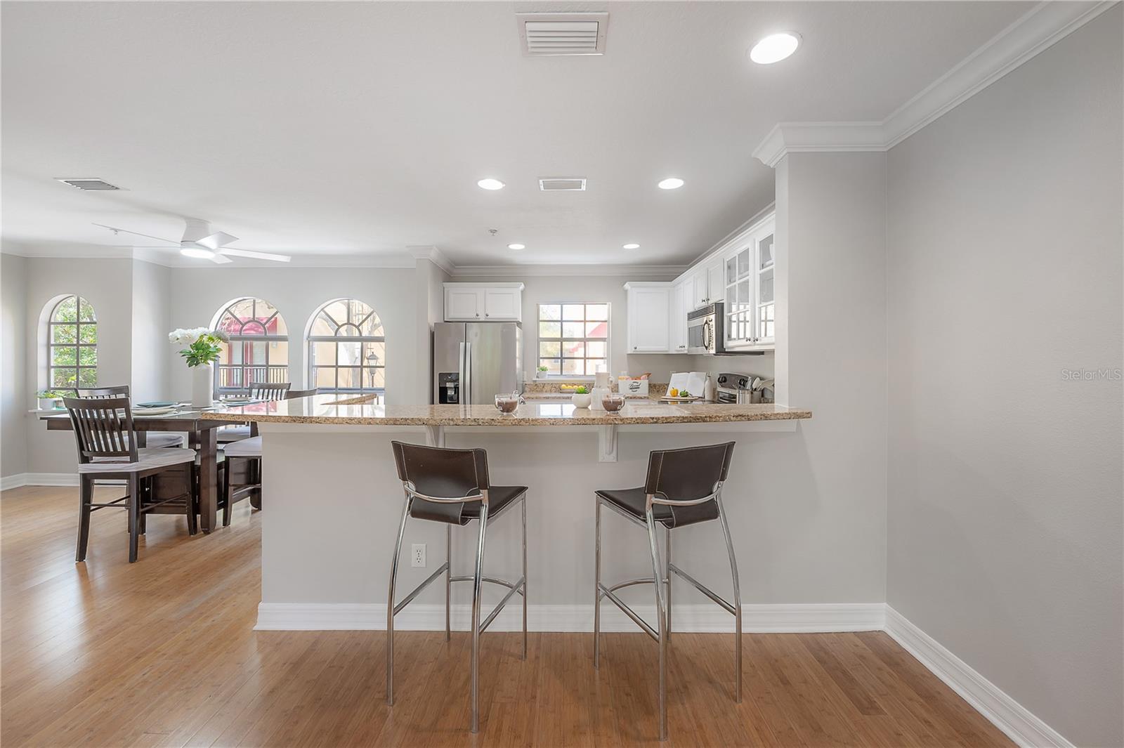 One or more photo(s) has been virtually staged. Rare modern townhome in a resort-style pool community in South Tampa with an oversized 2-car garage and one of the very lowest HOA fees in the area! This 2-ensuite-bedroom, 2.5-bathroom home with balcony and back porch offers an ideal lifestyle just minutes from the waterfront beauty of Bayshore Boulevard and Ballast Point Park. Just a walk away to restaurants, coffee shops, groceries stores and close to shopping malls. Centrally situated to commute to downtown St Pete on the new Expressway, the property is also just a short drive to MacDill Air Force Base and offers convenient access to Bayshore Boulevard and the Lee Roy Selmon Expressway to downtown Tampa. Located in the community of Las Palmas at Ballast Point, this freshly painted home welcomes you with a bright open floor plan combining living room, dining area, breakfast bar, and kitchen with granite counter-tops, stainless steel appliances, bamboo wood floors, crown-molding and abundant natural light throughout. Enjoy your own piece of Florida on your private balcony while sipping a beverage or relaxing by the community pool. The upstairs level is dedicated to two bedrooms, each with its own ensuite bathroom and walk-in closet. Additional highlights include new 2026 interior paint, new 2025 top of the line Trane A/C, new 2025 water heater, new 2026 remote-controlled ceiling fan in the common areas, new 2026 LED down-lights throughout, 2024 fridge, newer InSinkErator garbage disposal, numerous large windows with wood trim that enhance the bright and airy feel of the home, and a rare two-car garage that opens onto a covered front area. Not located in a flood zone, this property gives you the extra peace of mind of having all living areas located on the 2nd and 3rd floors. The low $399/month HOA fee includes the individual units trash & sewer, and also covers the exterior building pest control, repairs and maintenance, and the reserves. Bedroom photos and the back porch have been virtually staged. Come visit and be delighted!